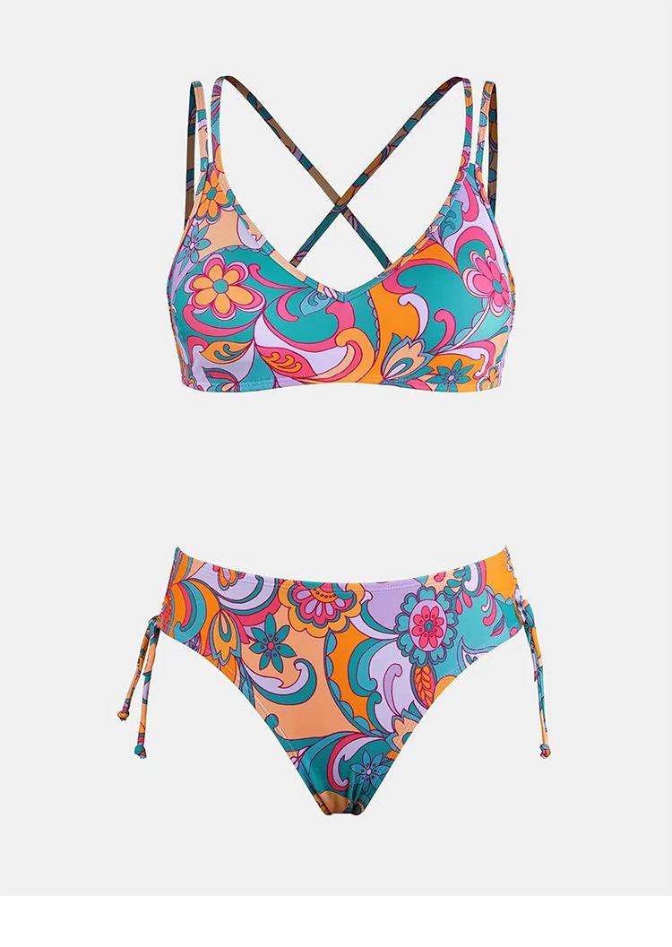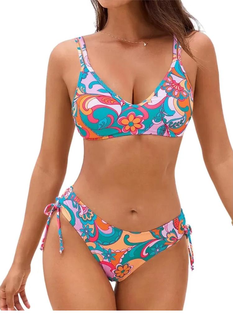 Traje de Baño Europeo y Americano 2025 Nuevo Bikini Dividido Estampado Sexy Traje de Baño Transfronterizo Trajes de Baño para Mujer