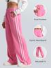 Pantalones deportivos a rayas de barras paralelas americanas transfronterizas para mujer, primavera y verano, nuevos, cintura alta, pierna ancha, holgados, rectos, casuales, deportivos