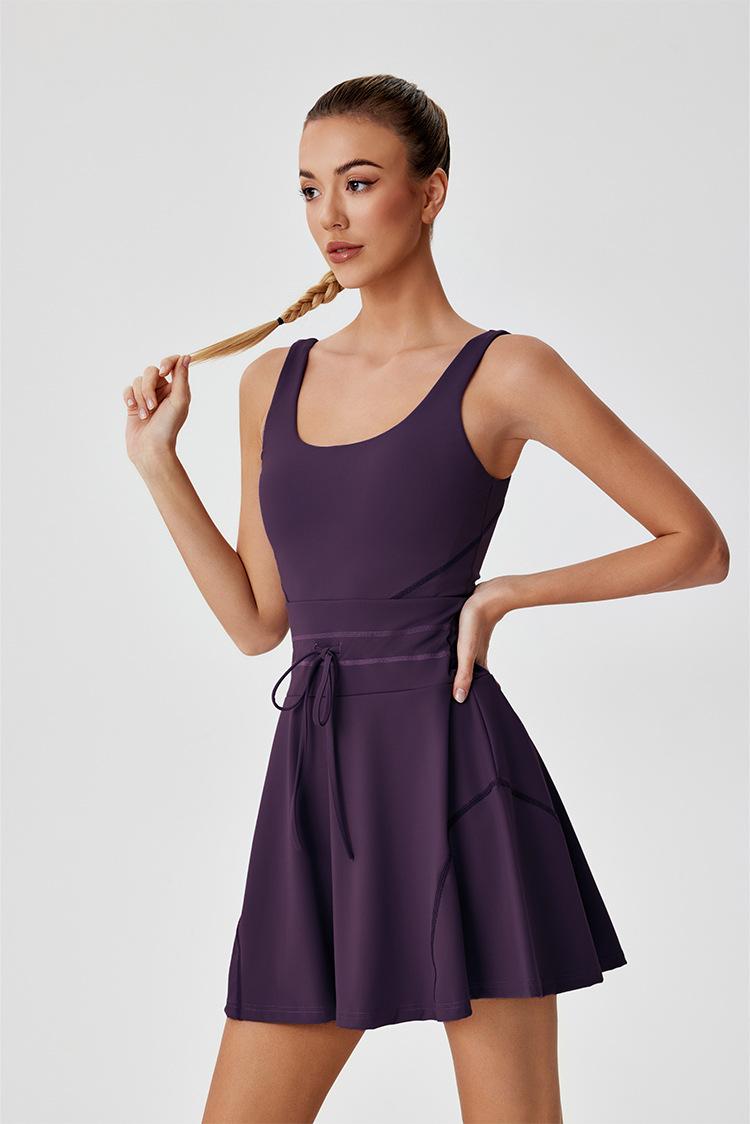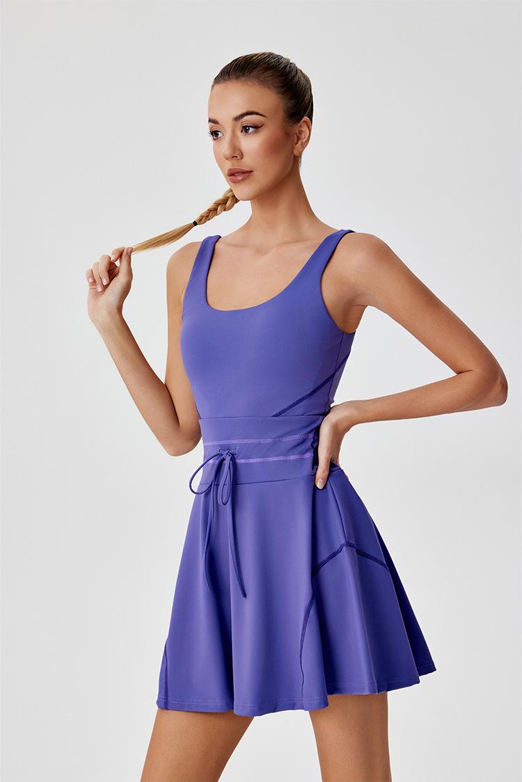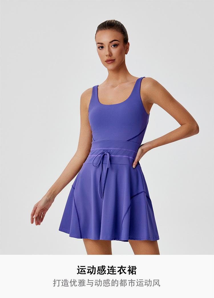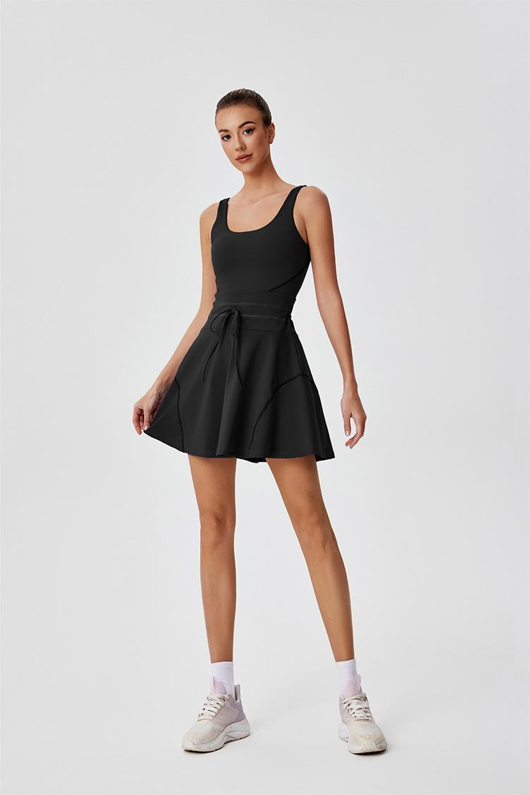 Falda de Tenis Deportiva para Exterior Transfronteriza con Cordón Ajustable Antirozaduras Vestido Ligero Espalda en U Secado Rápido Ropa de Fitness para Mujer