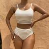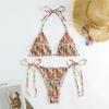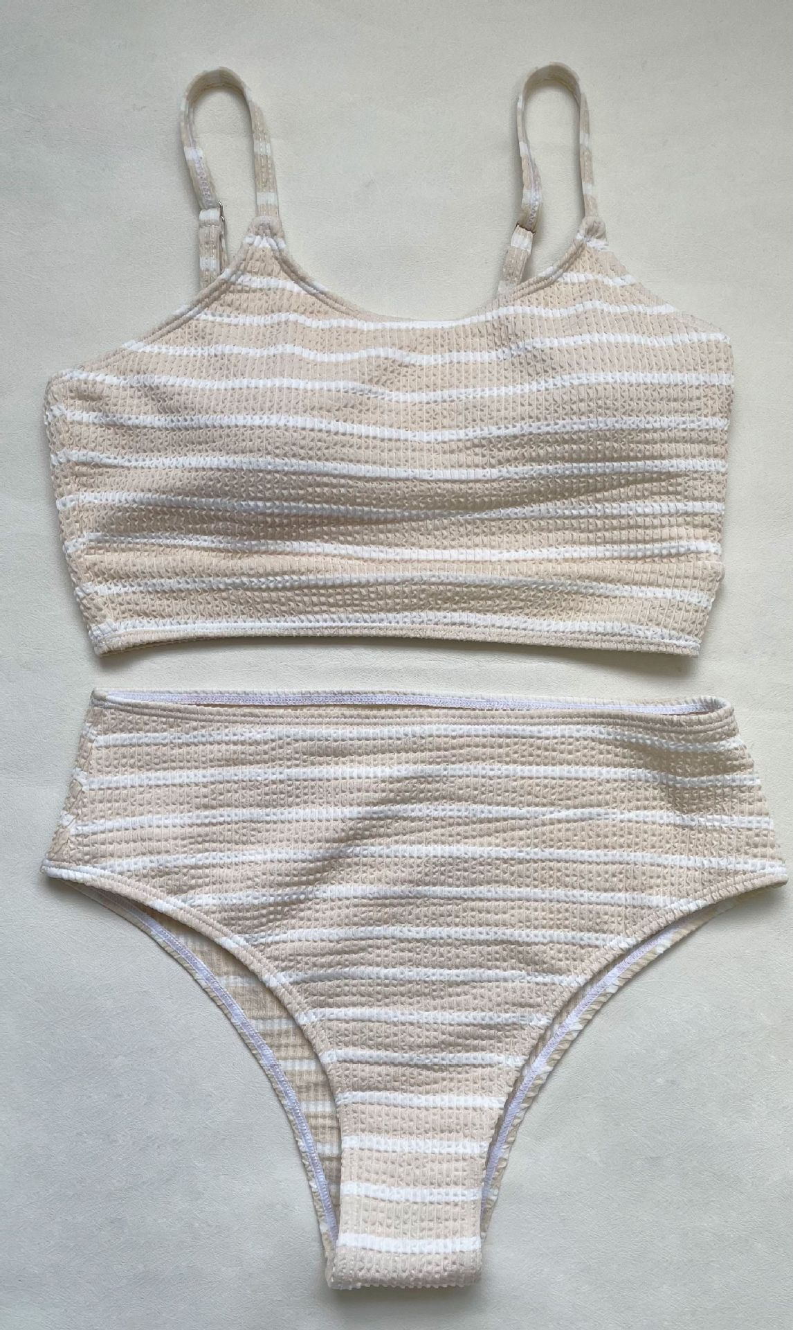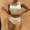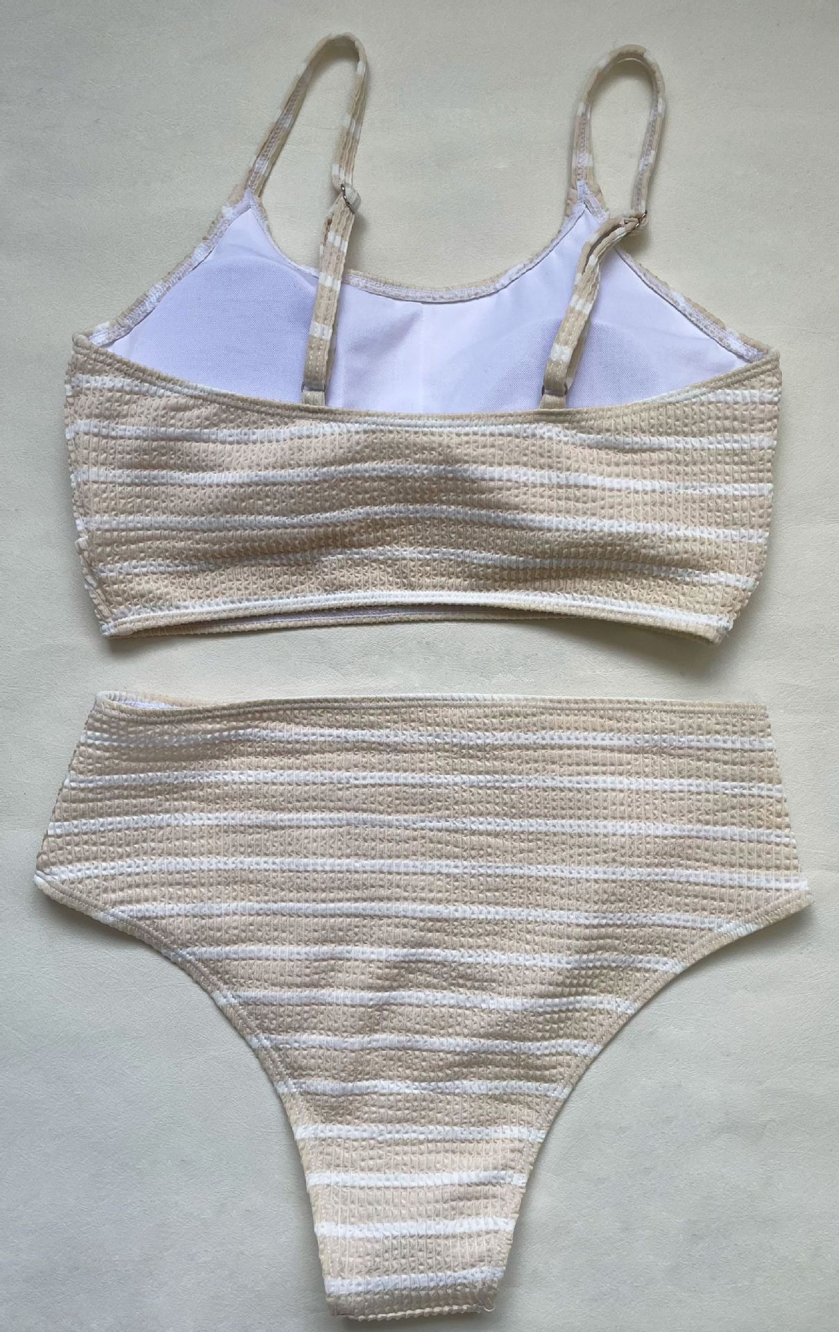 Traje de baño de dos piezas nuevo europeo y americano 2023 para mujer, traje de baño a rayas ajustado sin espalda estilo ins, traje de baño bikini duradero