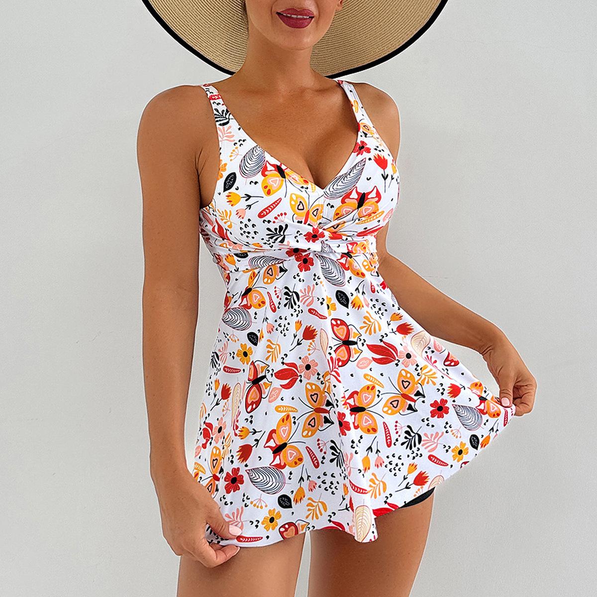 2025 Amazon Nuevo Traje de Baño Sexy de Falda Multicolor Estampado Ajustado de Alta Elasticidad para Mujer