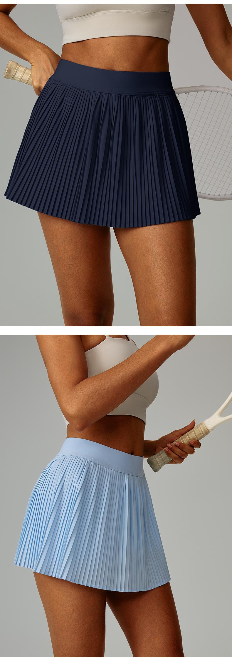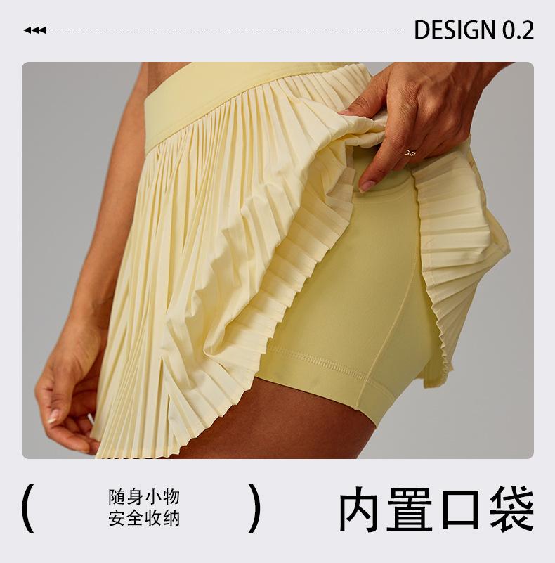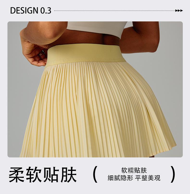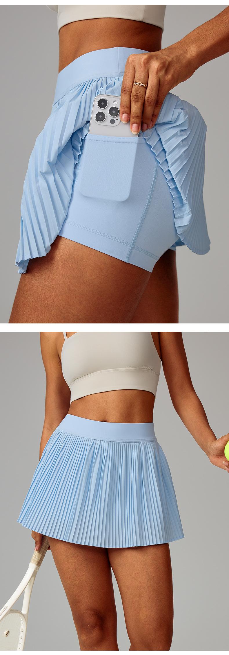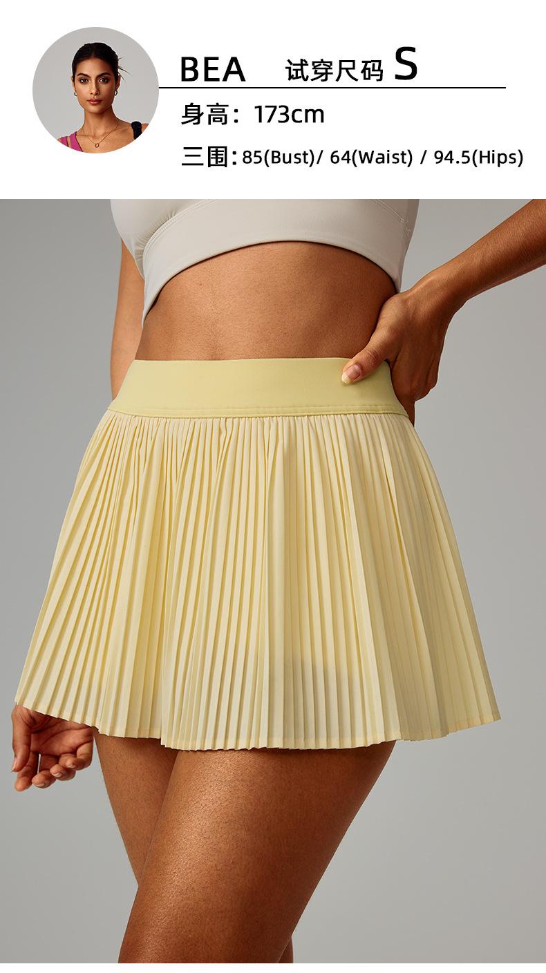 Falda de Yoga de Verano Elástica de Cintura Alta Adelgazante Forrada con Bolsillos Laterales Antiexposición Falda de Tenis Falda Casual Exterior Plisada