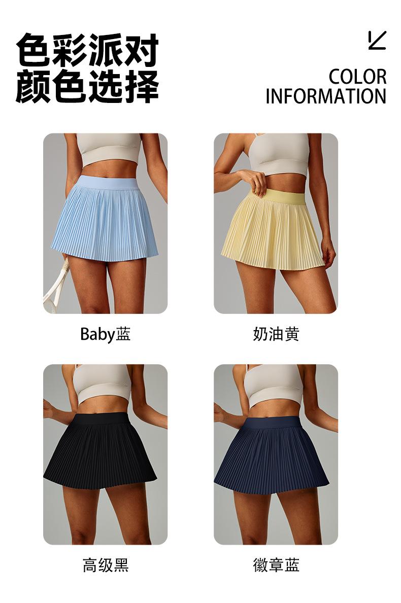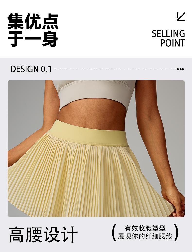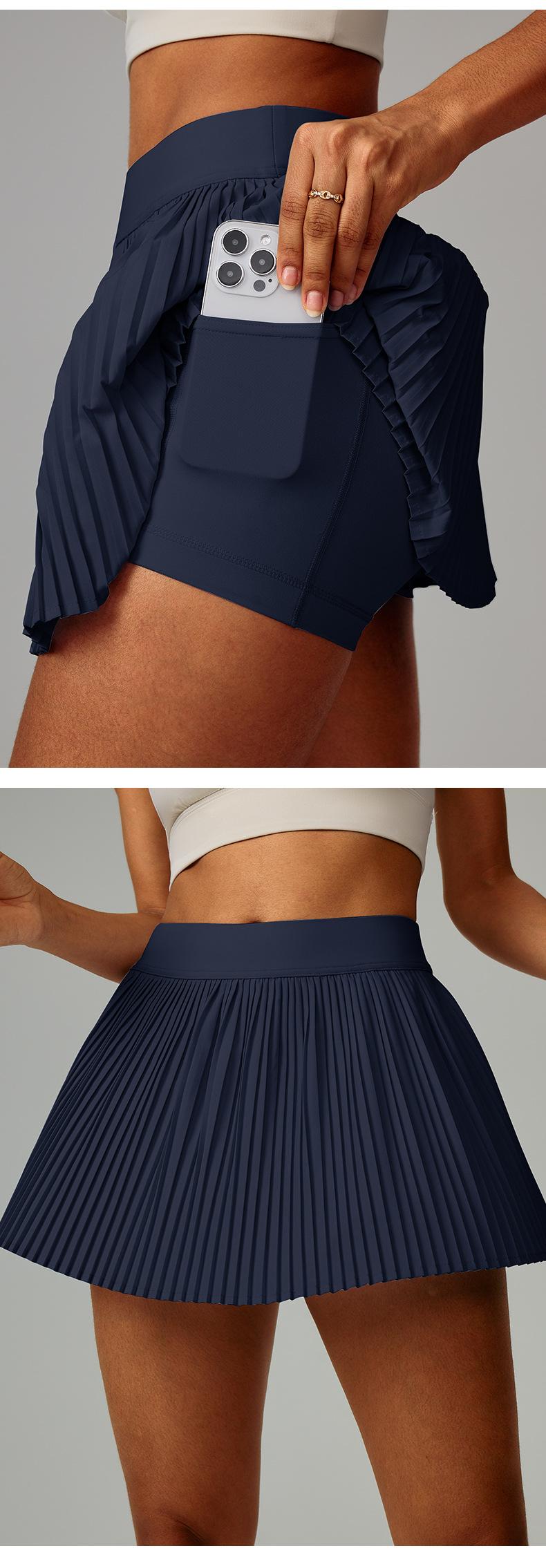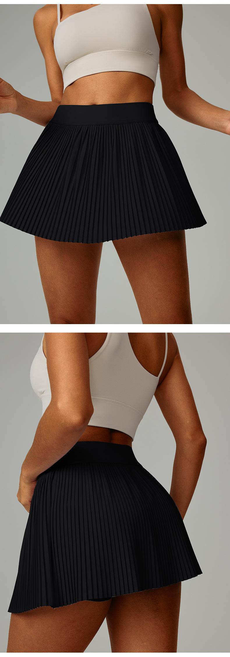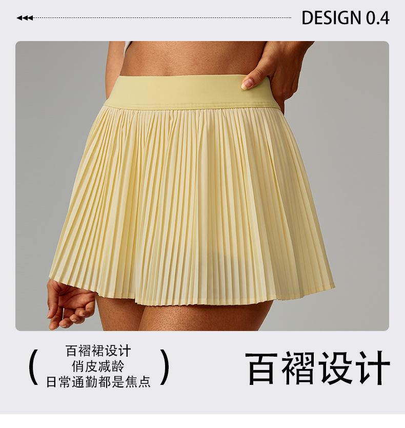 Falda de Yoga de Verano Elástica de Cintura Alta Adelgazante Forrada con Bolsillos Laterales Antiexposición Falda de Tenis Falda Casual Exterior Plisada