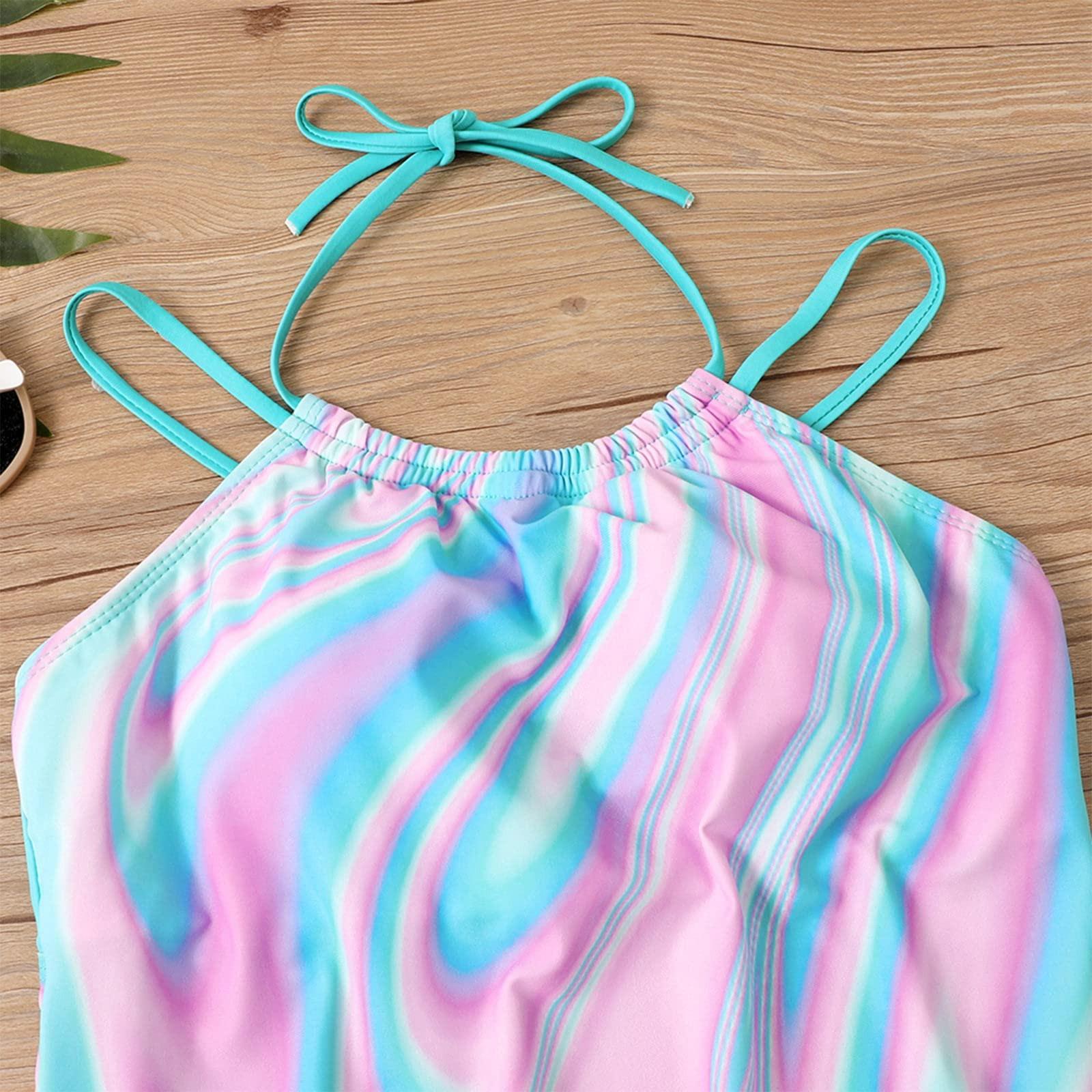 [Tankini multicolor de talla grande europeo y americano para mujer] mujer gorda nuevo traje de baño de falda adelgazante que cubre la barriga con shorts independientes