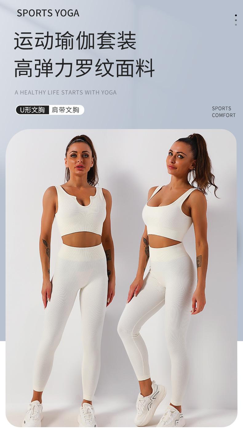 Conjunto popular de ropa de yoga de secado rápido europea y americana, sujetador deportivo a prueba de golpes, chaleco de yoga, pantalones de yoga, pantalones de fitness