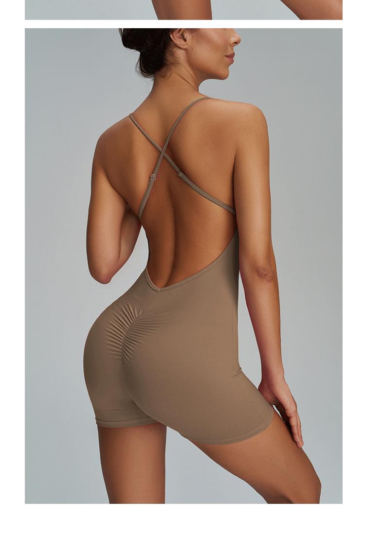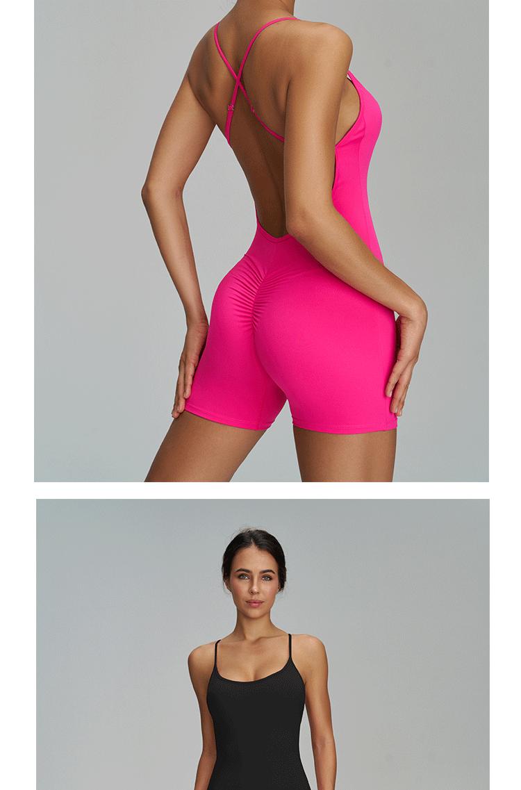 Tirantes Europeos y Americanos Transfronterizos Envoltura Cadera Traje de Fitness Integrado Cadera de Durazno Verano Ajustado Ejercicio Secado Rápido Traje de Yoga