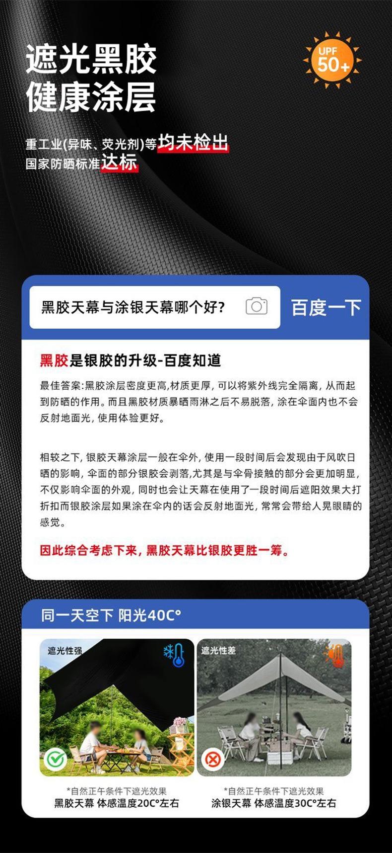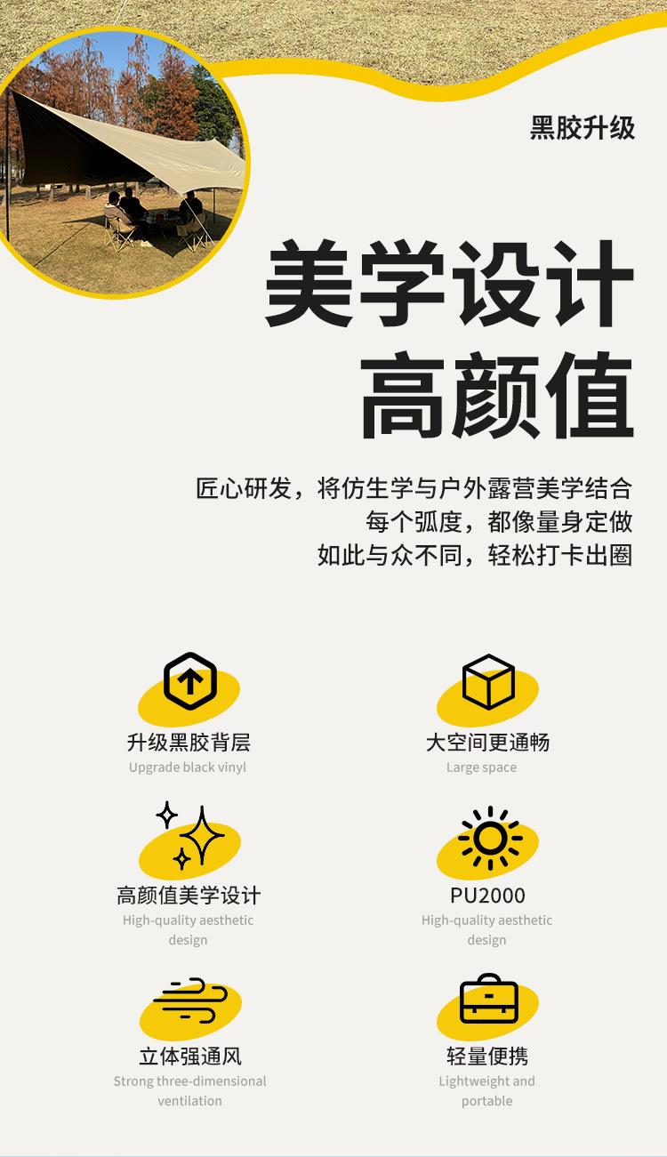 Toldo de camping al aire libre de goma negra sombrilla de mariposa toldo refrescante protector solar personalizado vela de sombra impermeable carpa transfronteriza