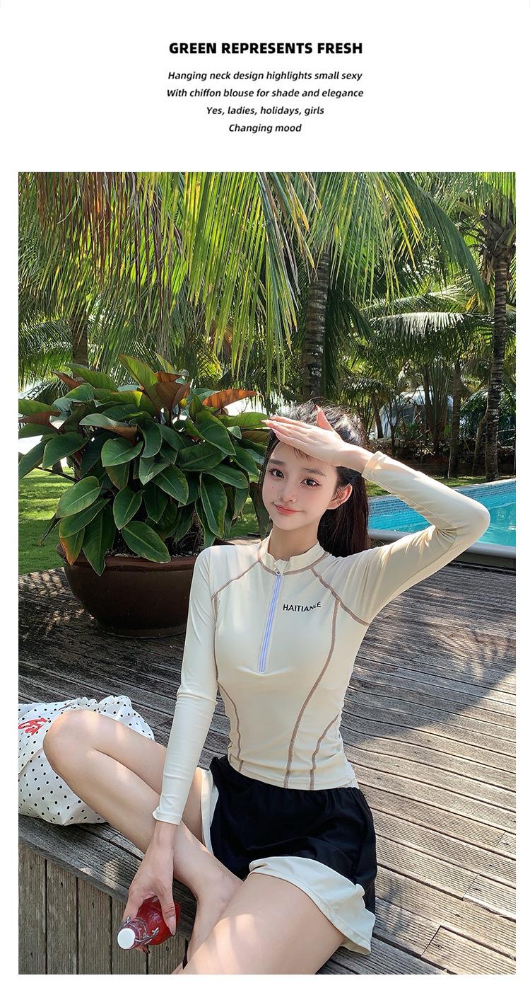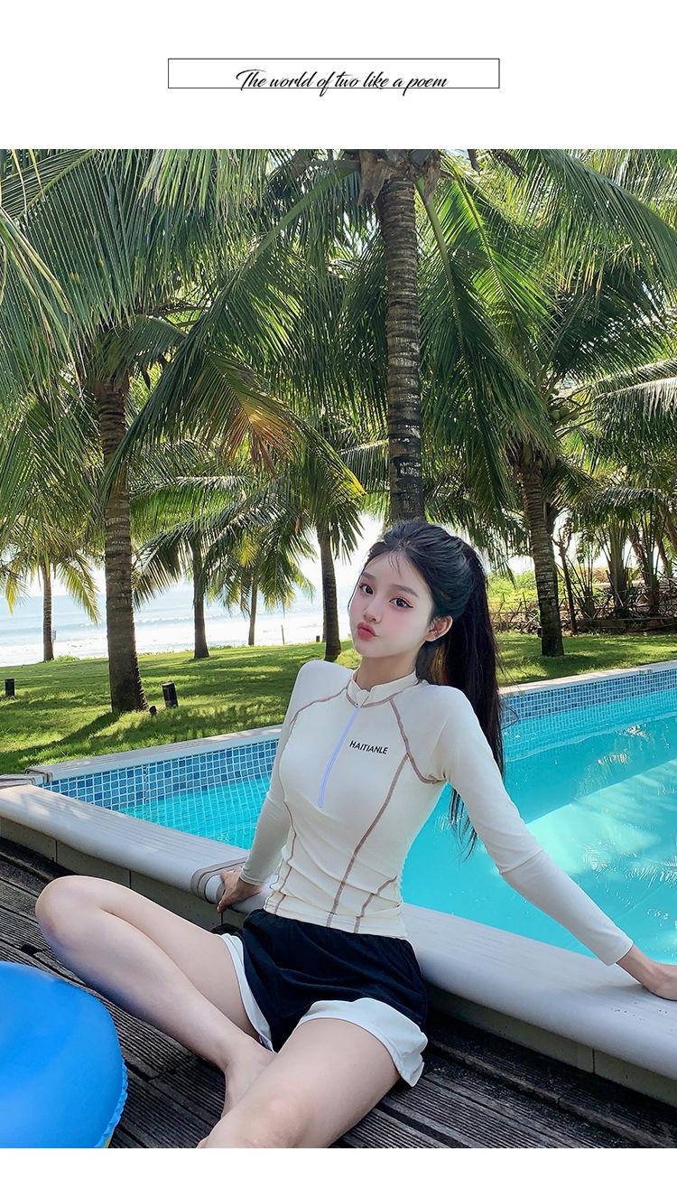 Traje de Buceo de Dos Piezas para Mujer 2025 de Manga Larga y Pantalón Largo, Deseo Puro, Estudiante, Oculta Vientre, Adelgazante, Conservador
