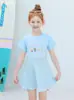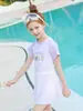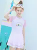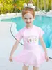 Traje de baño de una pieza para niña 2025 verano nuevo traje de baño infantil con estampado de dibujos animados de moda poliéster traje de baño con falda pequeña
