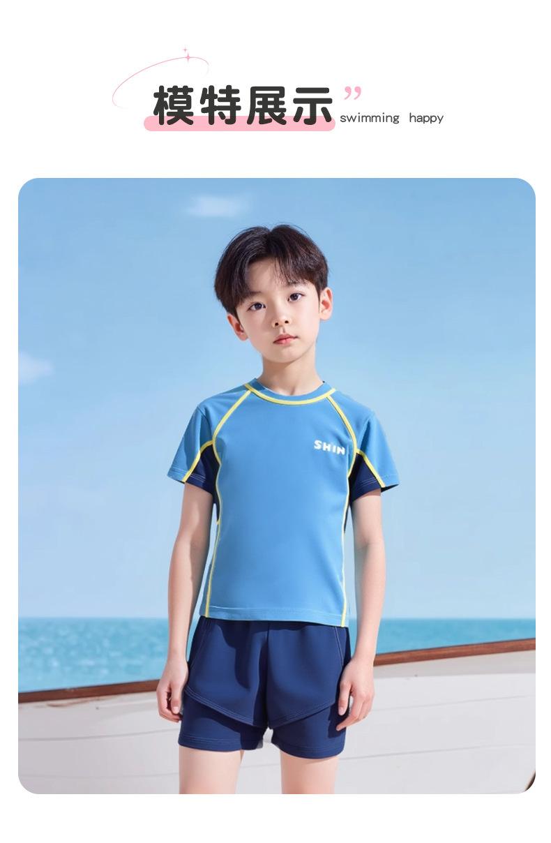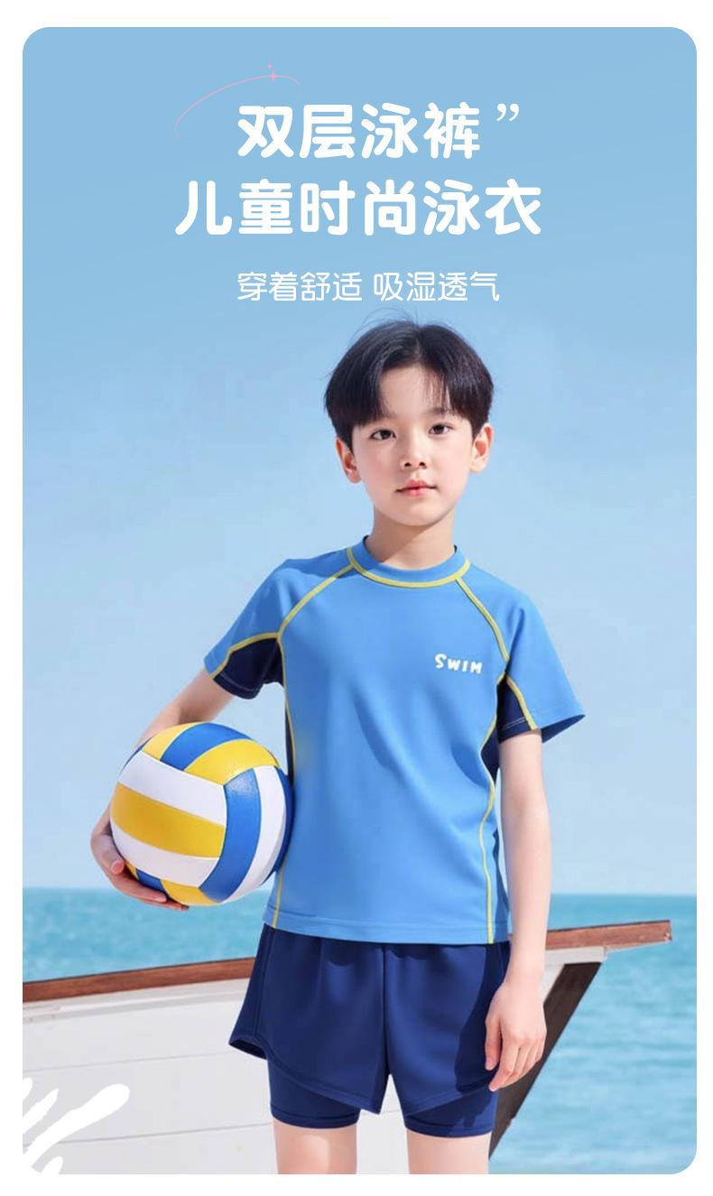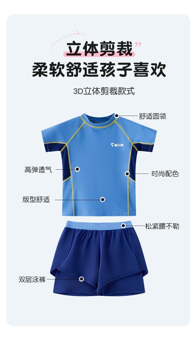 Traje de Baño Cómodo y Delicado con la Piel para Niño de Verano Estilo Nuevo Traje de Baño para Estudiante Entrenamiento de Natación Traje de Baño de Doble Capa Pantalones Cortos de Manga Corta