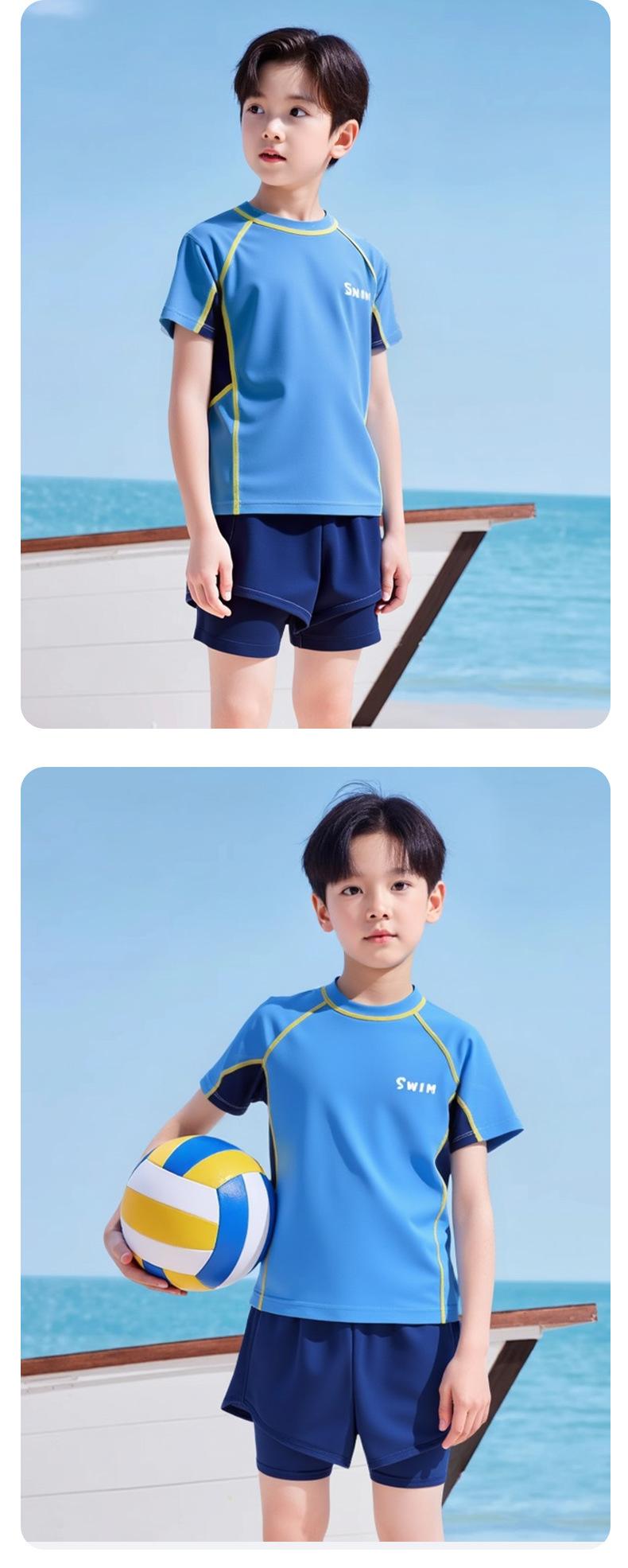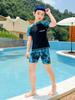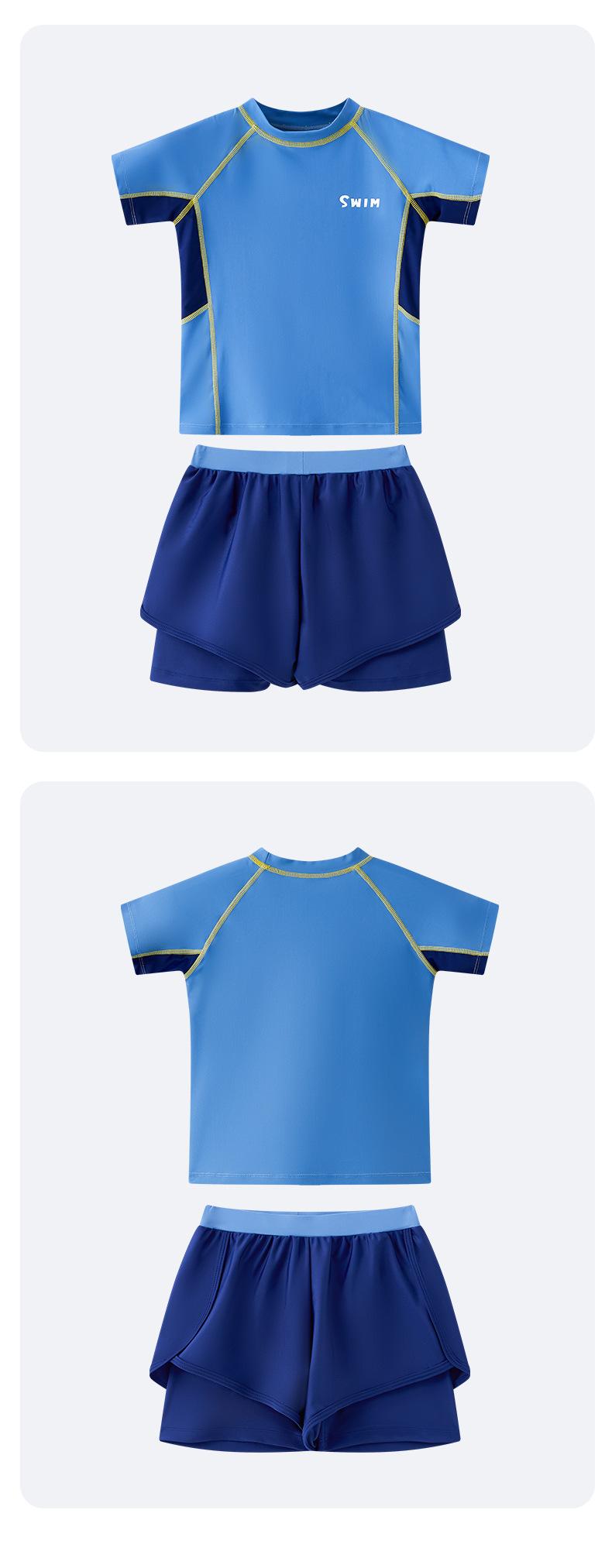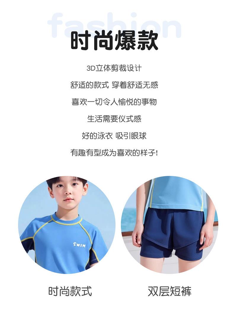 Traje de Baño Cómodo y Delicado con la Piel para Niño de Verano Estilo Nuevo Traje de Baño para Estudiante Entrenamiento de Natación Traje de Baño de Doble Capa Pantalones Cortos de Manga Corta