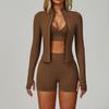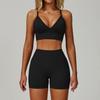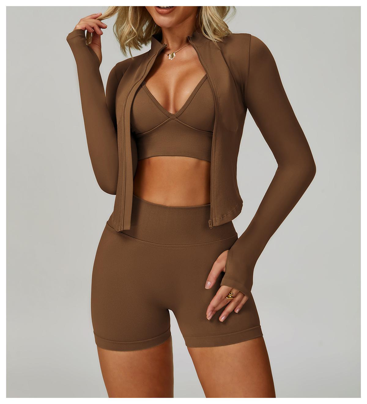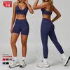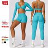 Traje de Yoga Ajustado Sin Costuras Transfronterizo Look Adelgazante de Cintura Secado Rápido Traje de Fitness Deportes para Correr al Aire Libre Traje de Tres Piezas 7790