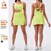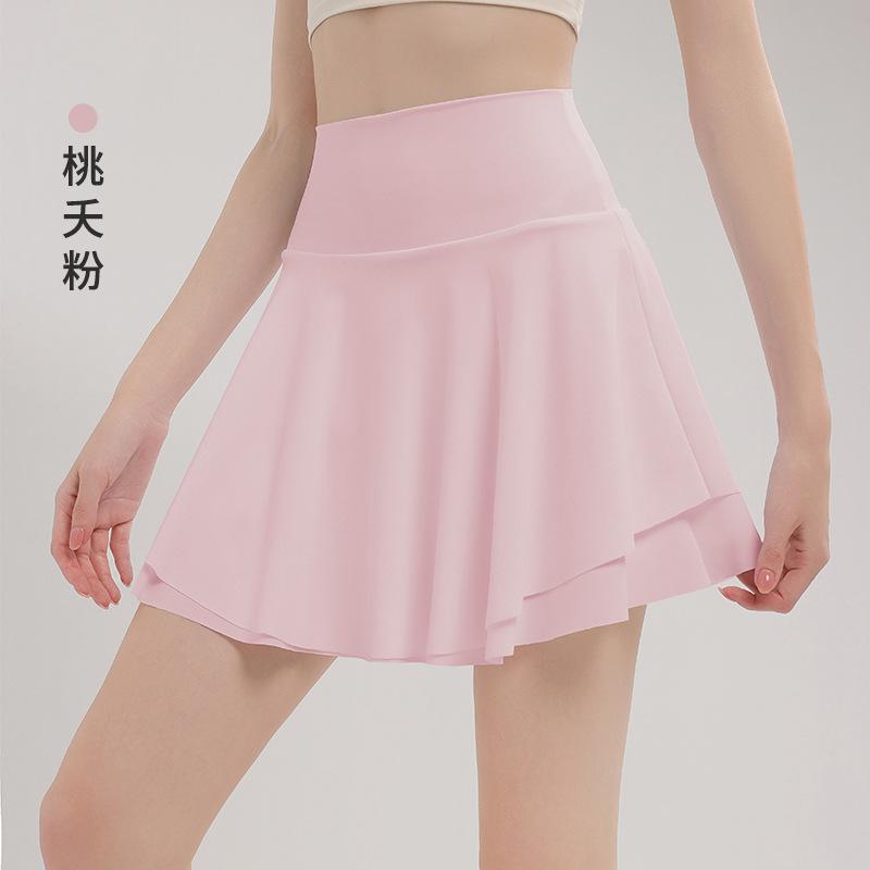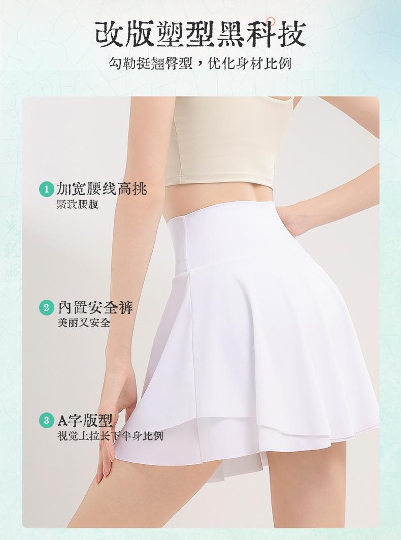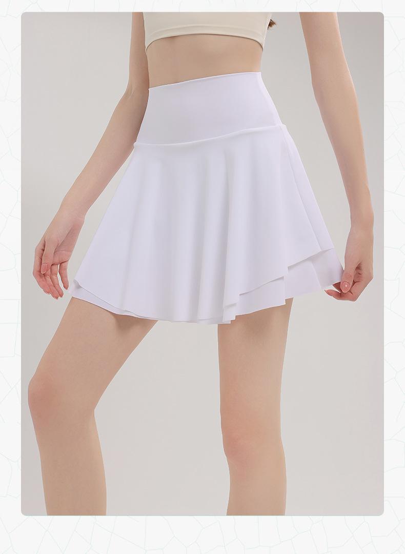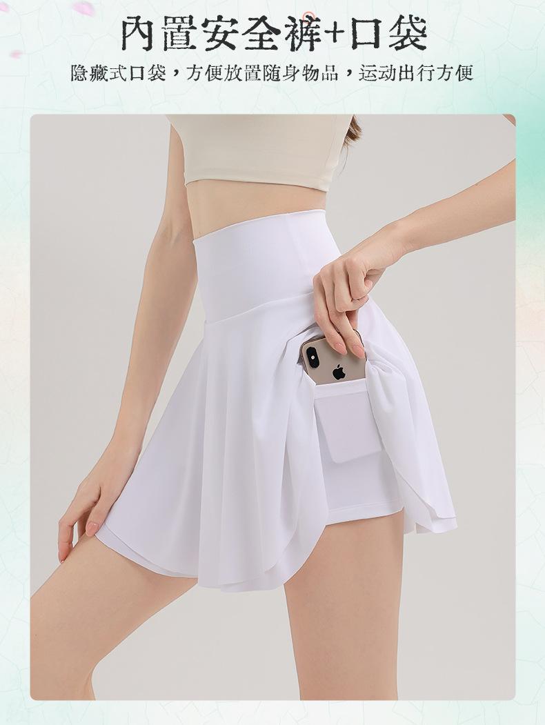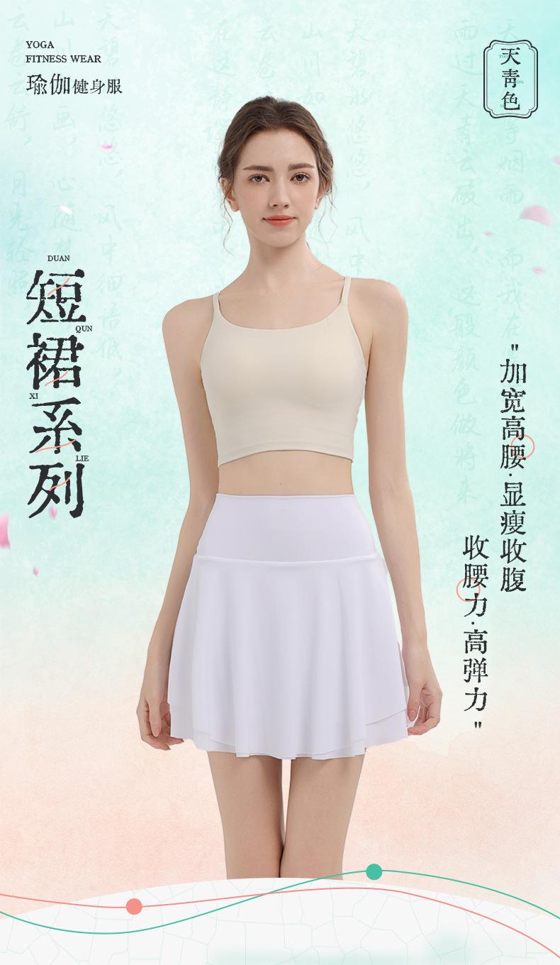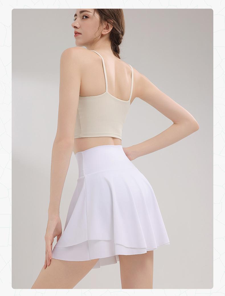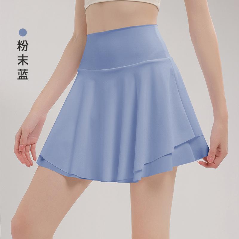 Falda de Tenis Azul Cielo de Cintura Alta Doble Capa para Mujer con Bolsillo para Cinturón Leggings Antiluz Falda Deportiva de Secado Rápido Yoga