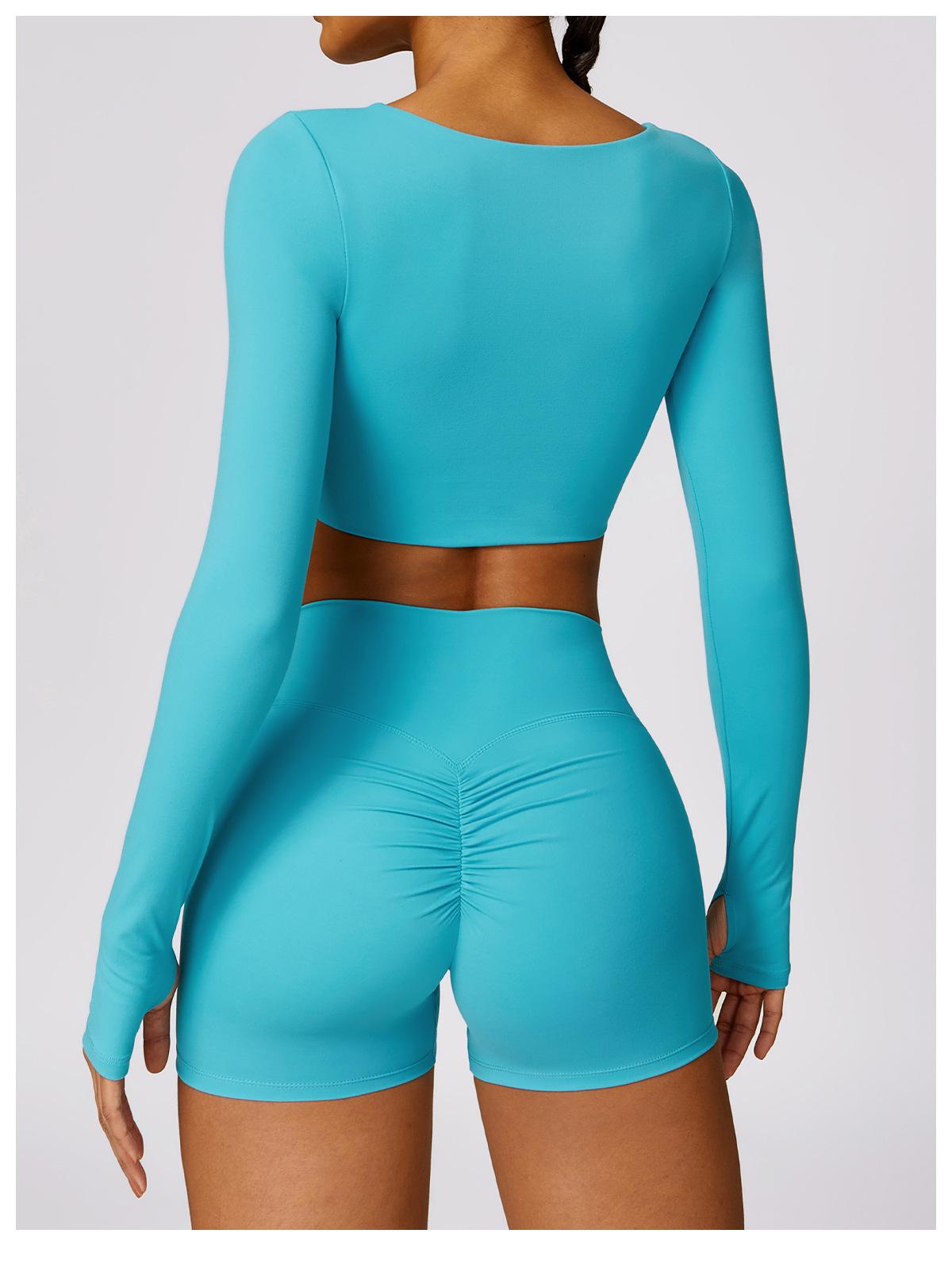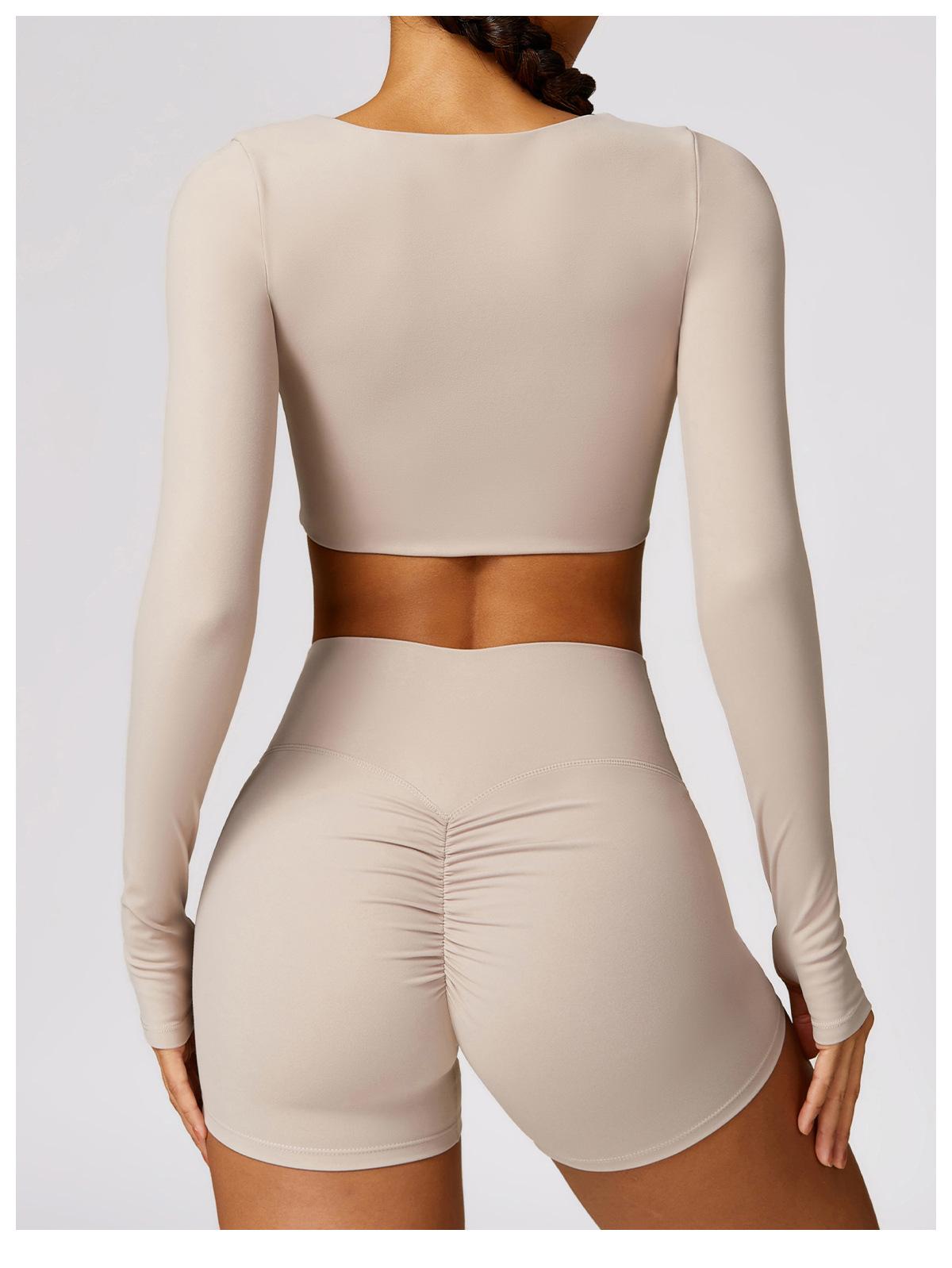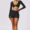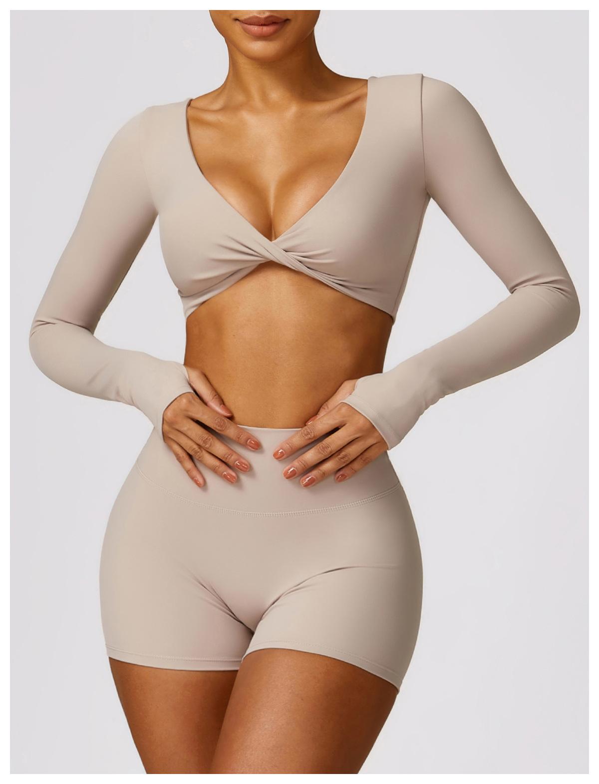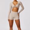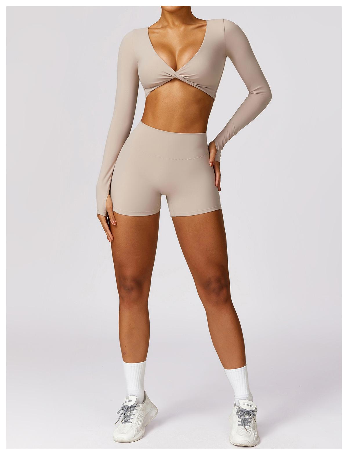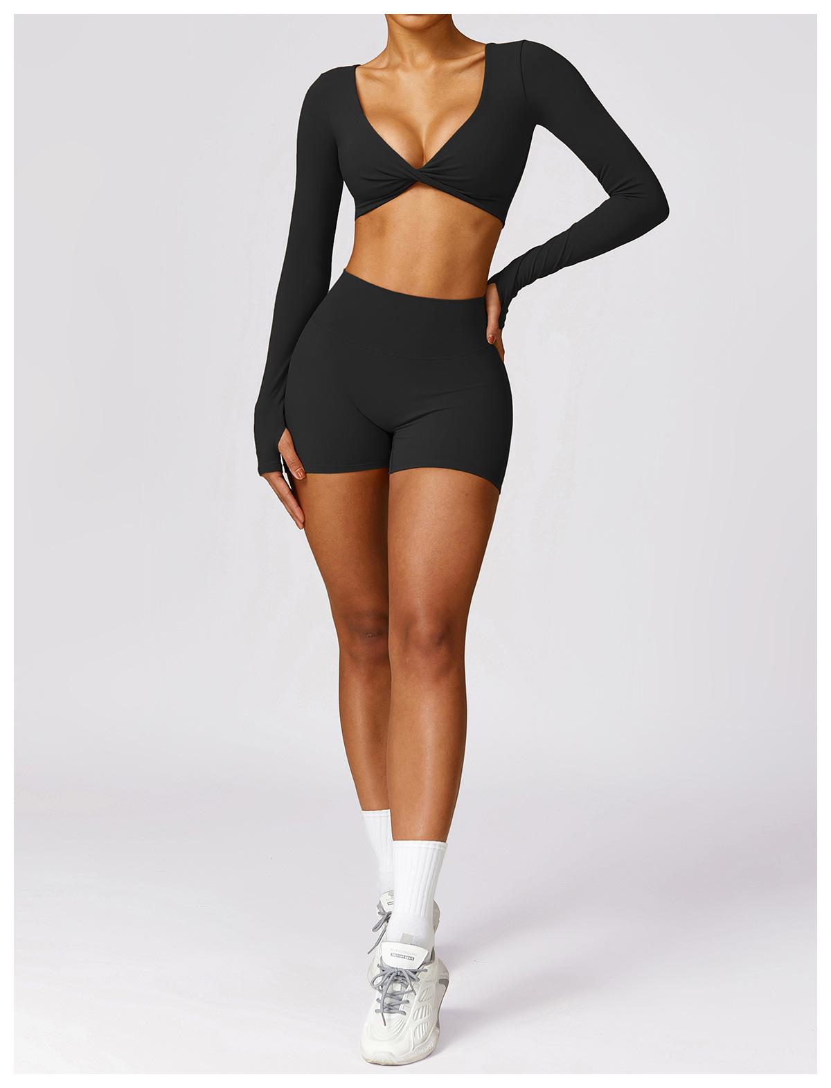 Traje Ropa de Yoga Cruzada Europea y Americana Top de Manga Larga con Cuello en V para Mujer Ropa de Fitness Ajustada Ropa de Entrenamiento para Pilates
