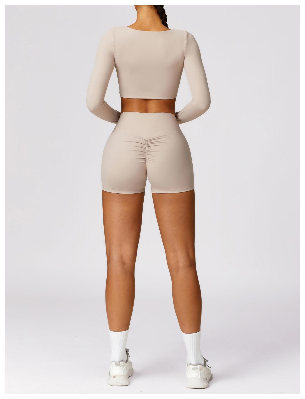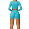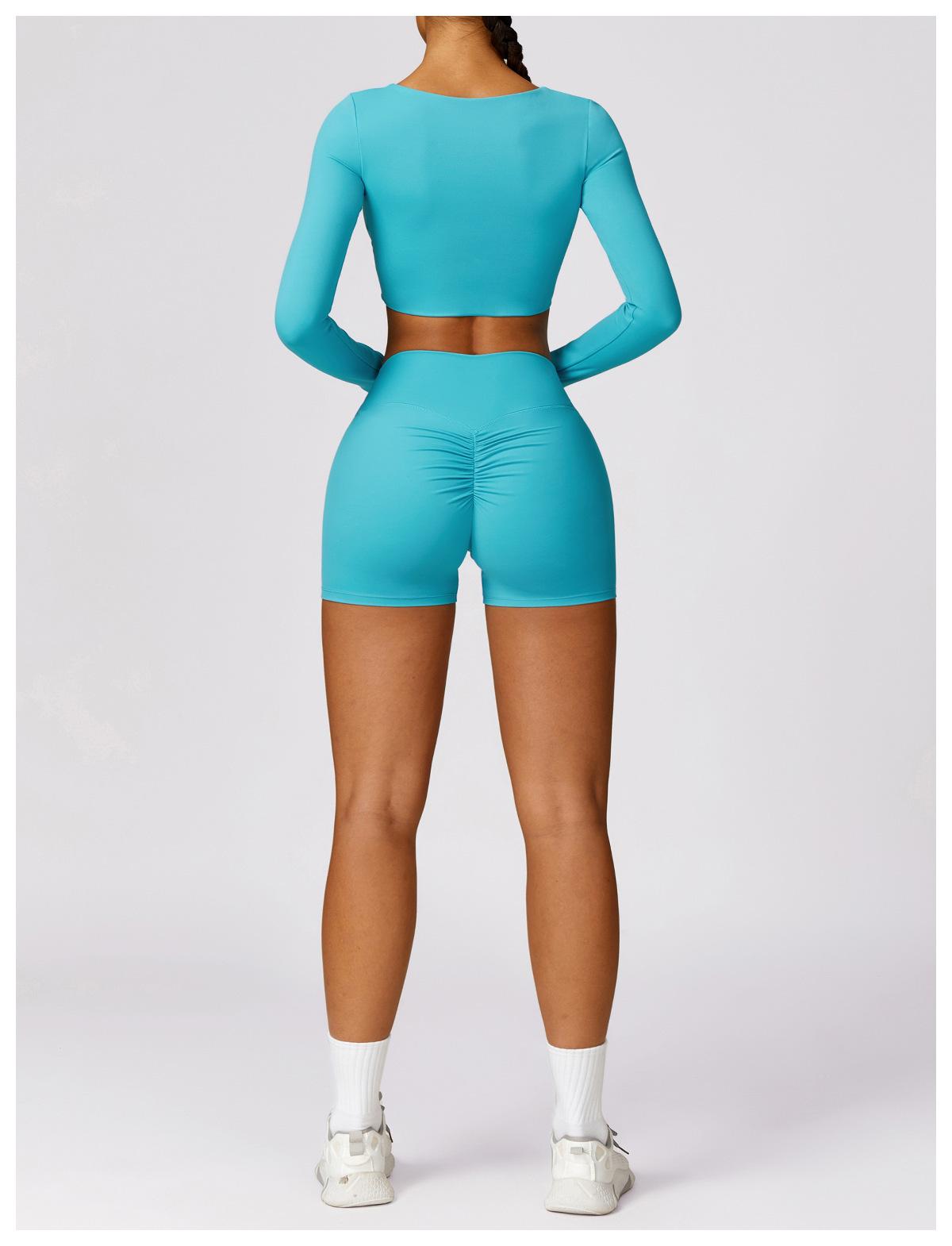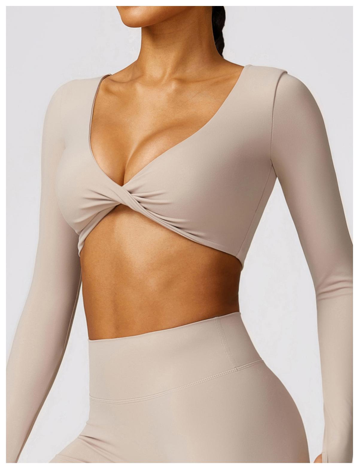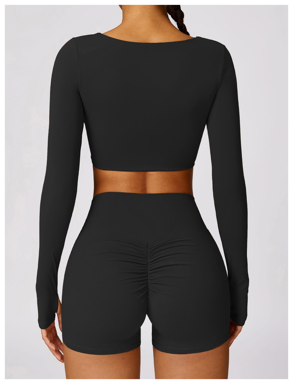 Traje Ropa de Yoga Cruzada Europea y Americana Top de Manga Larga con Cuello en V para Mujer Ropa de Fitness Ajustada Ropa de Entrenamiento para Pilates