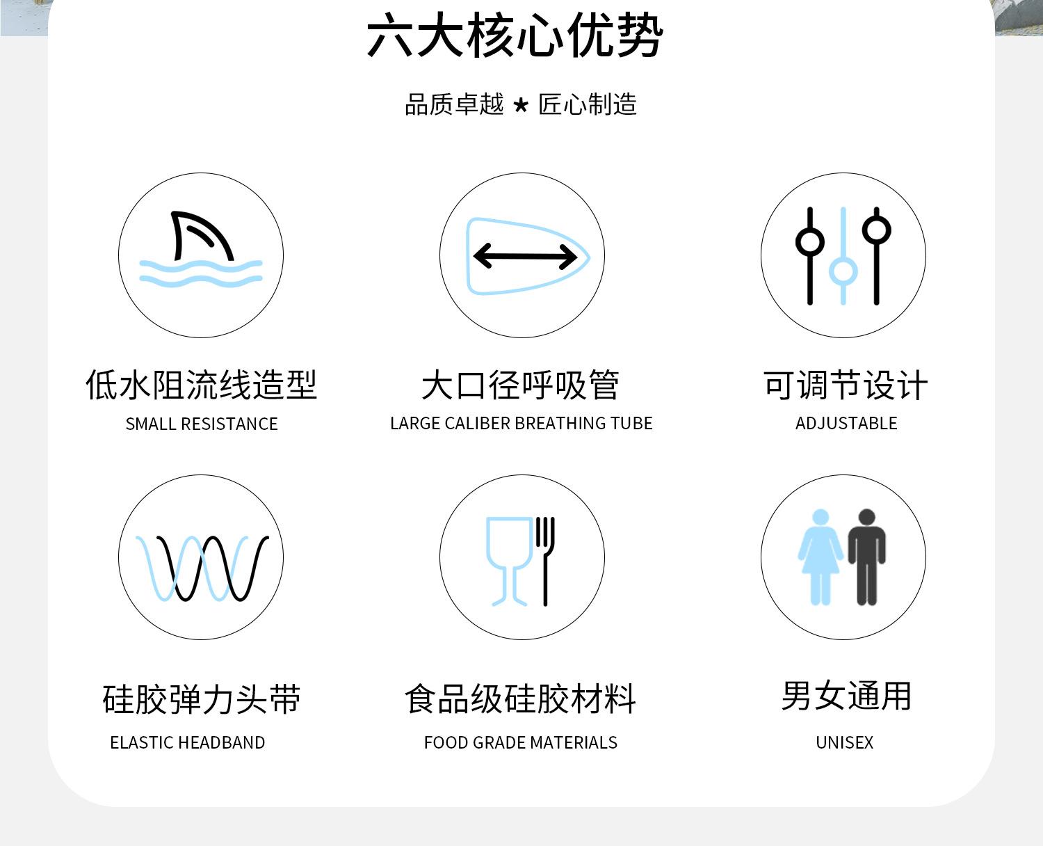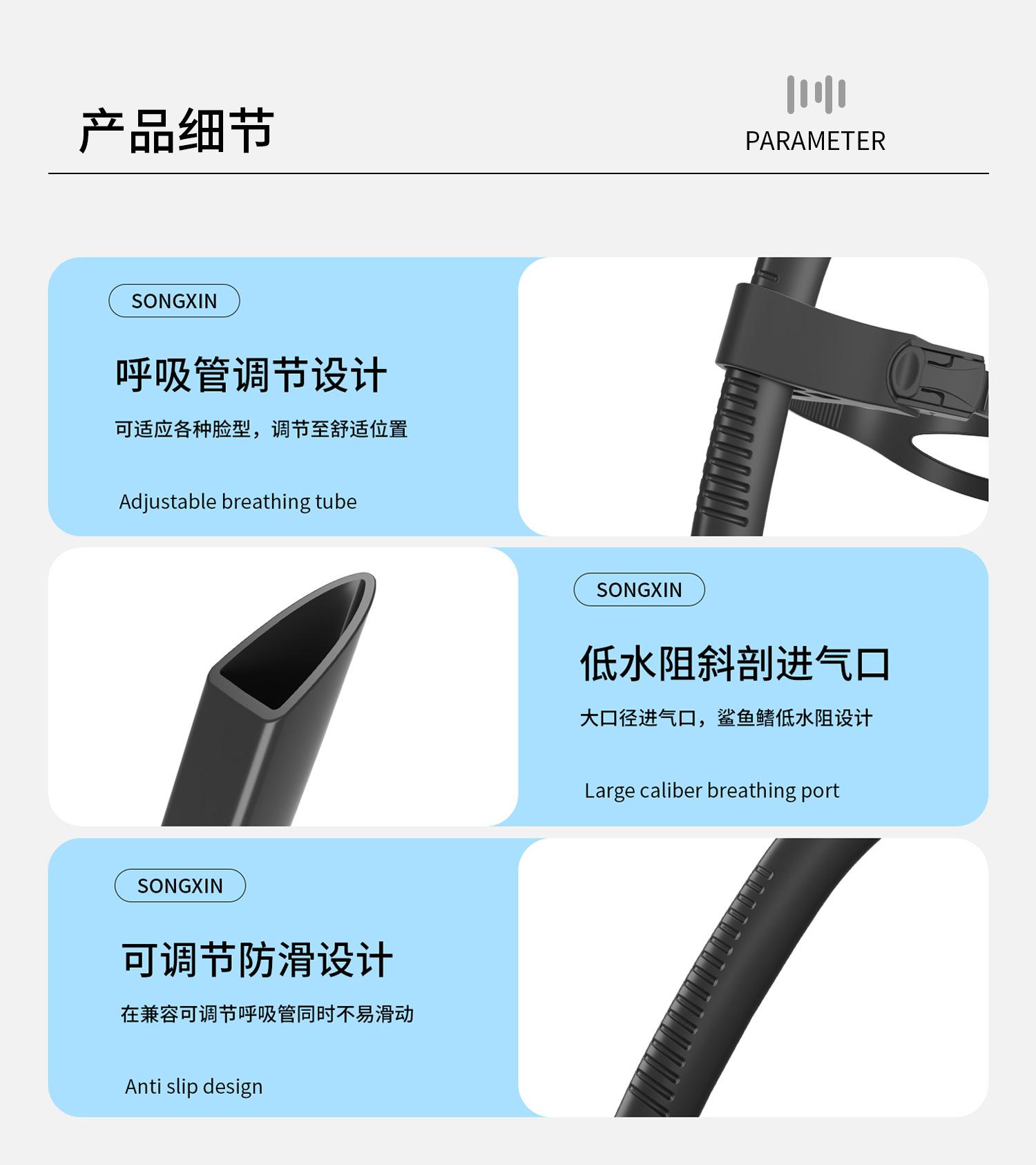 Snorkel Frontal de Entrenamiento de Natación Personalizado de Venta Caliente Transfronterizo, Adecuado para una Amplia Gama de Snorkels de Natación y Buceo