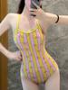 Traje de Baño Triángulo de Una Pieza de Alta Gama para Mujer, Traje de Baño Simple y Sexy para Aguas Termales 2025 Nuevo Traje de Baño de Carreras Cubre Vientre para Pecho Pequeño