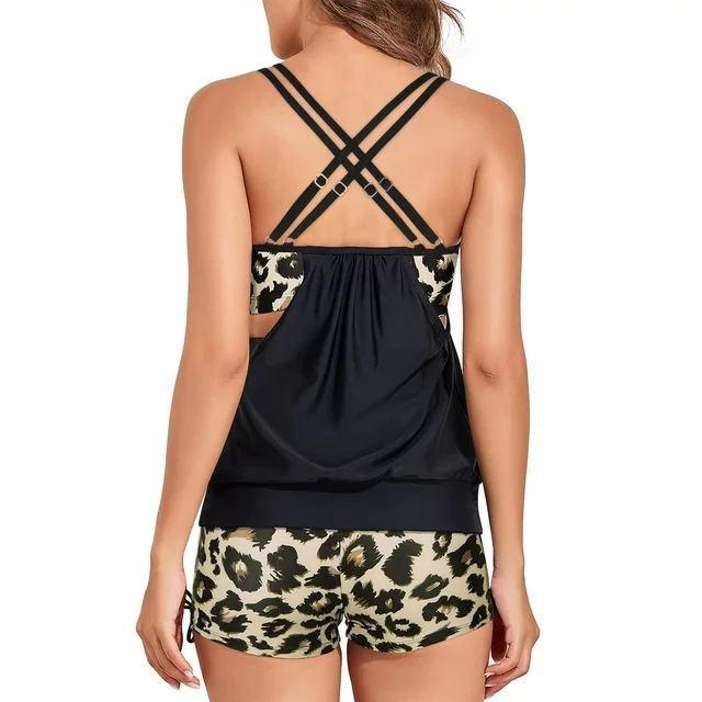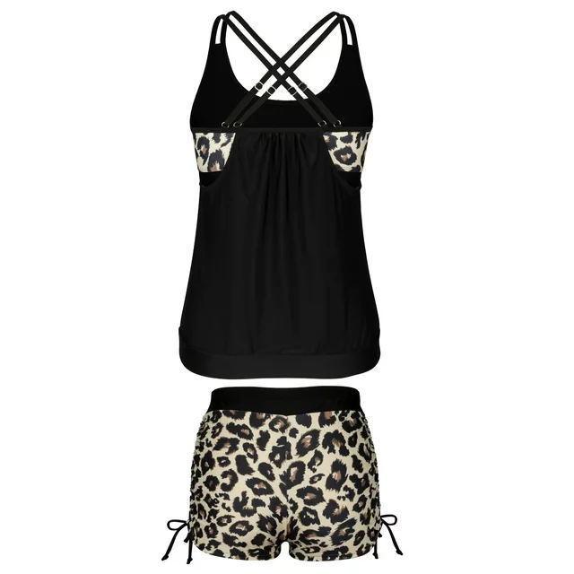 Traje de baño tankini de talla grande 2025 Traje de baño falso de dos piezas Traje de baño bóxer Amazon Europeo y Americano Estampado de Leopardo Transfronterizo