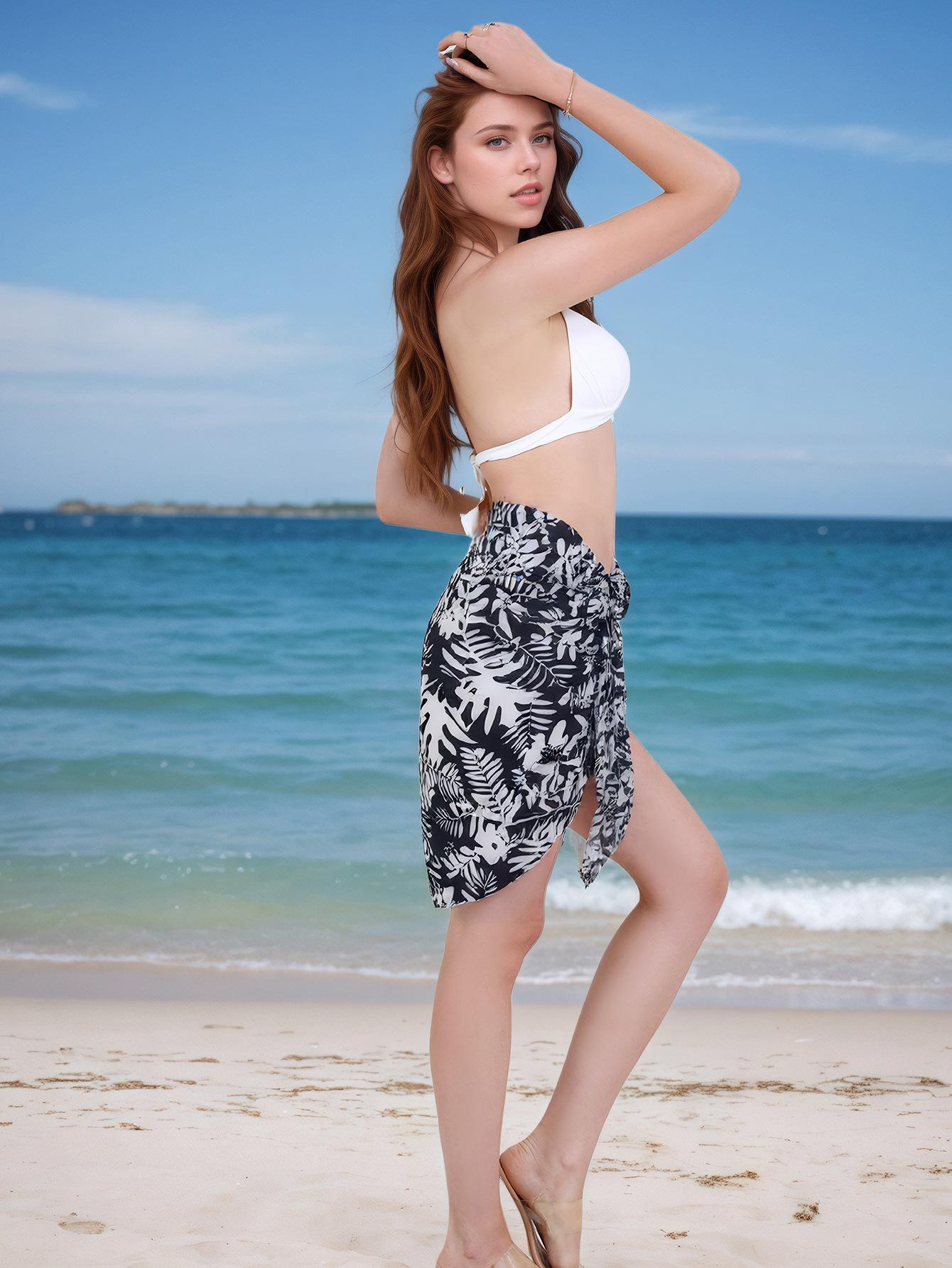 2025 Nuevo Vestido de Playa de Chifón Estampado Transfronterizo Bikini de Una Pieza Pareo Blusa de Playa Tropical