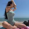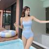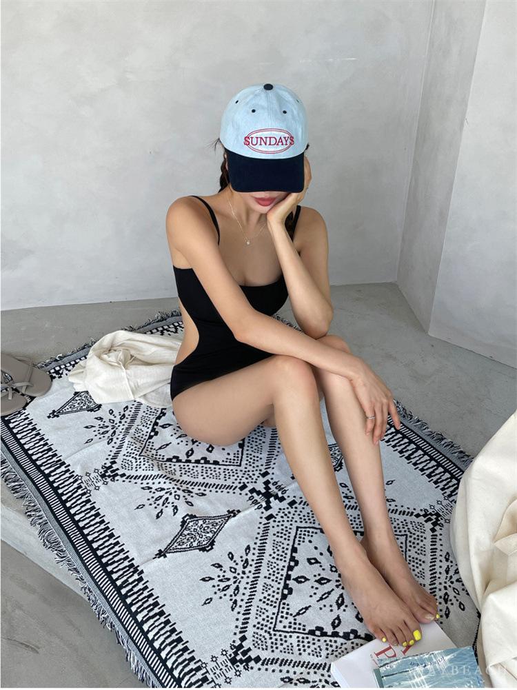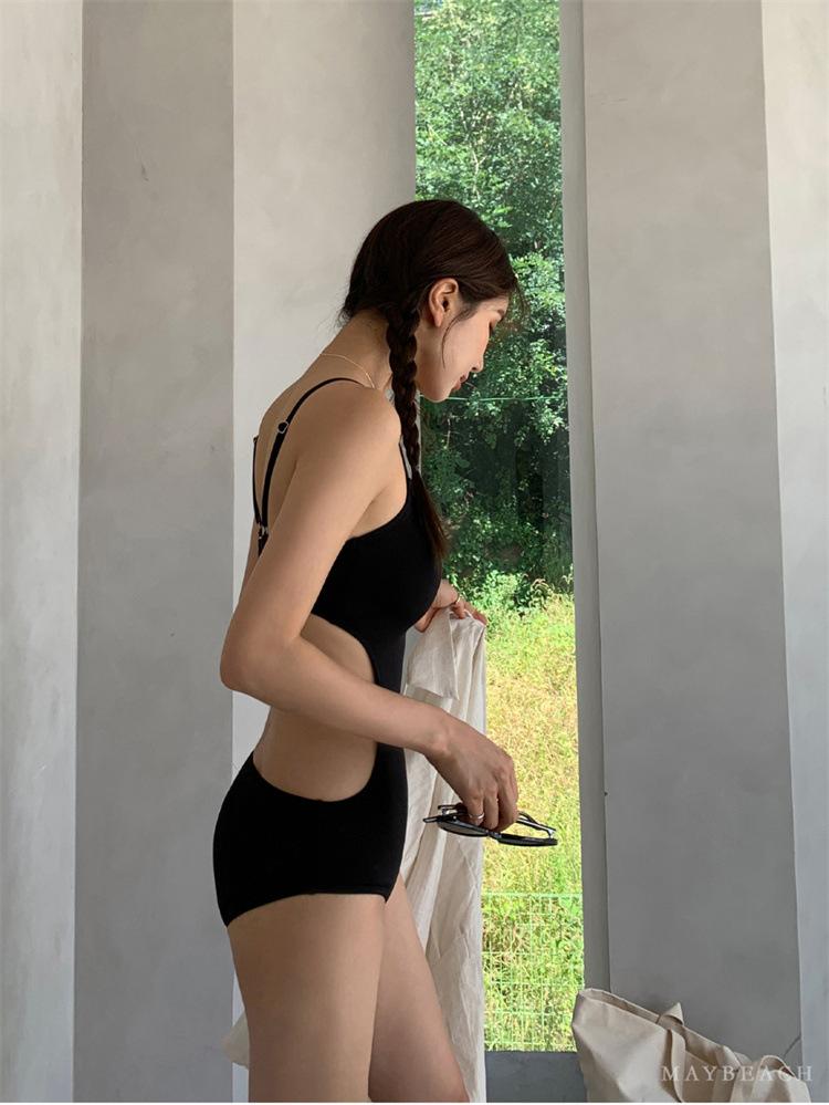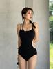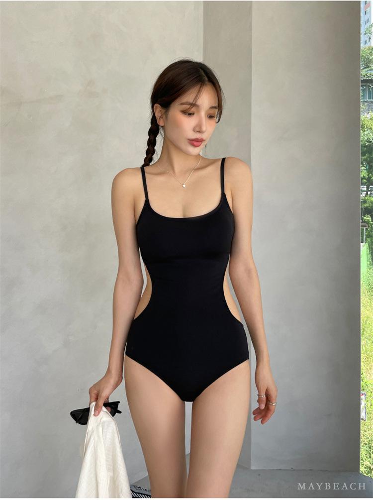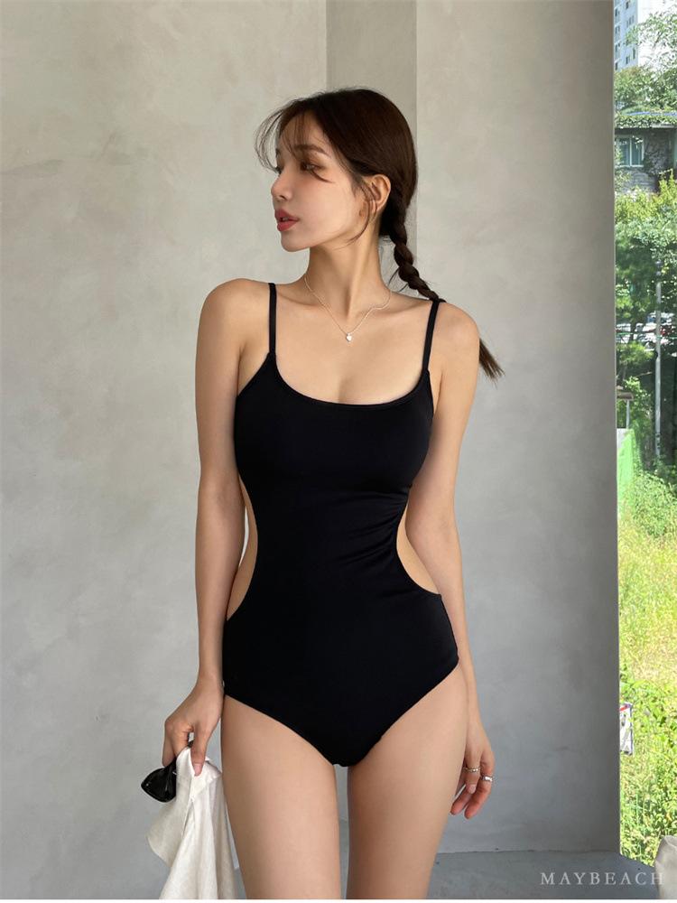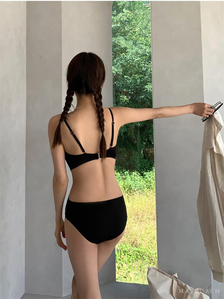 Traje de baño para mujer 2024 Nuevo Negro Triángulo Tirantes Hueco Cintura Sexy Adelgazante Cubre Vientre Pecho Pequeño Aguas Termales