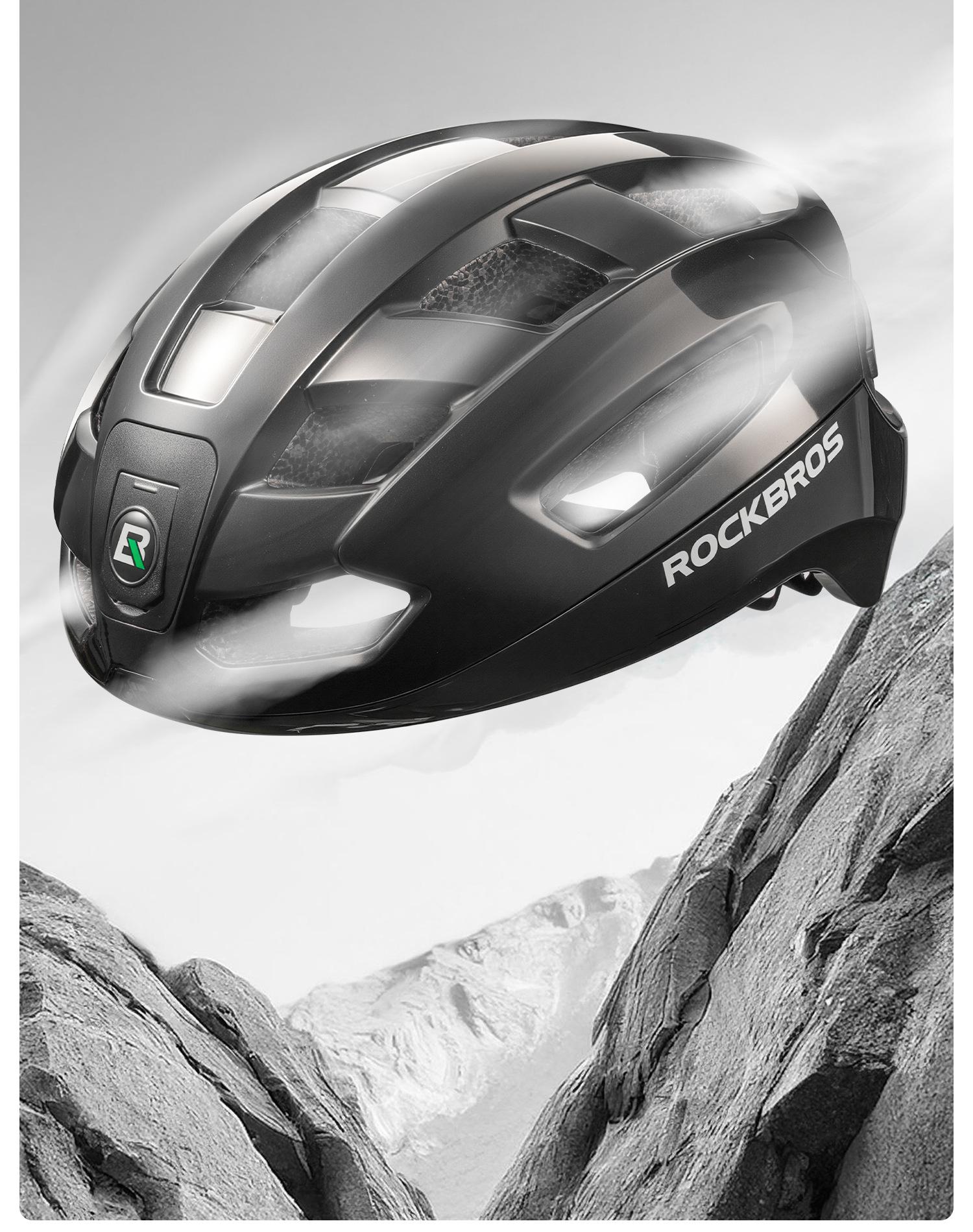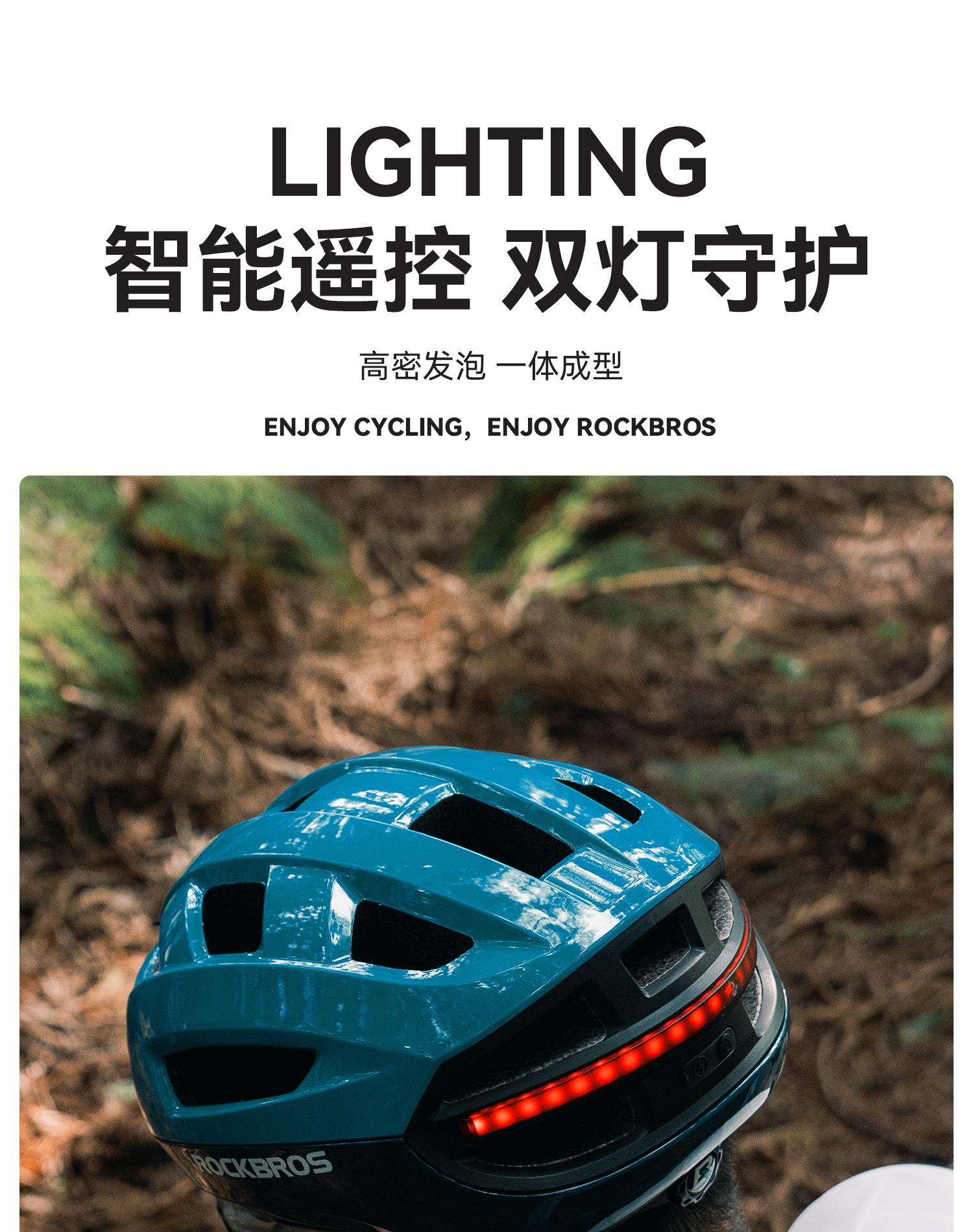 Casco de Ciclismo Rock Brothers con Luz Delantera y Trasera para Bicicleta, Control Remoto Inalámbrico, Casco de Seguridad para Bicicleta de Montaña y Carretera para Hombres y Mujeres