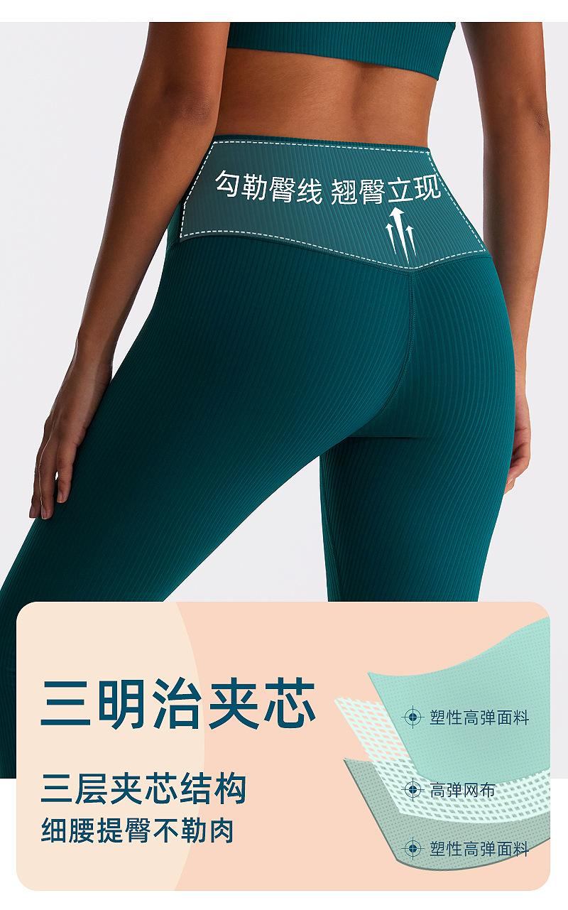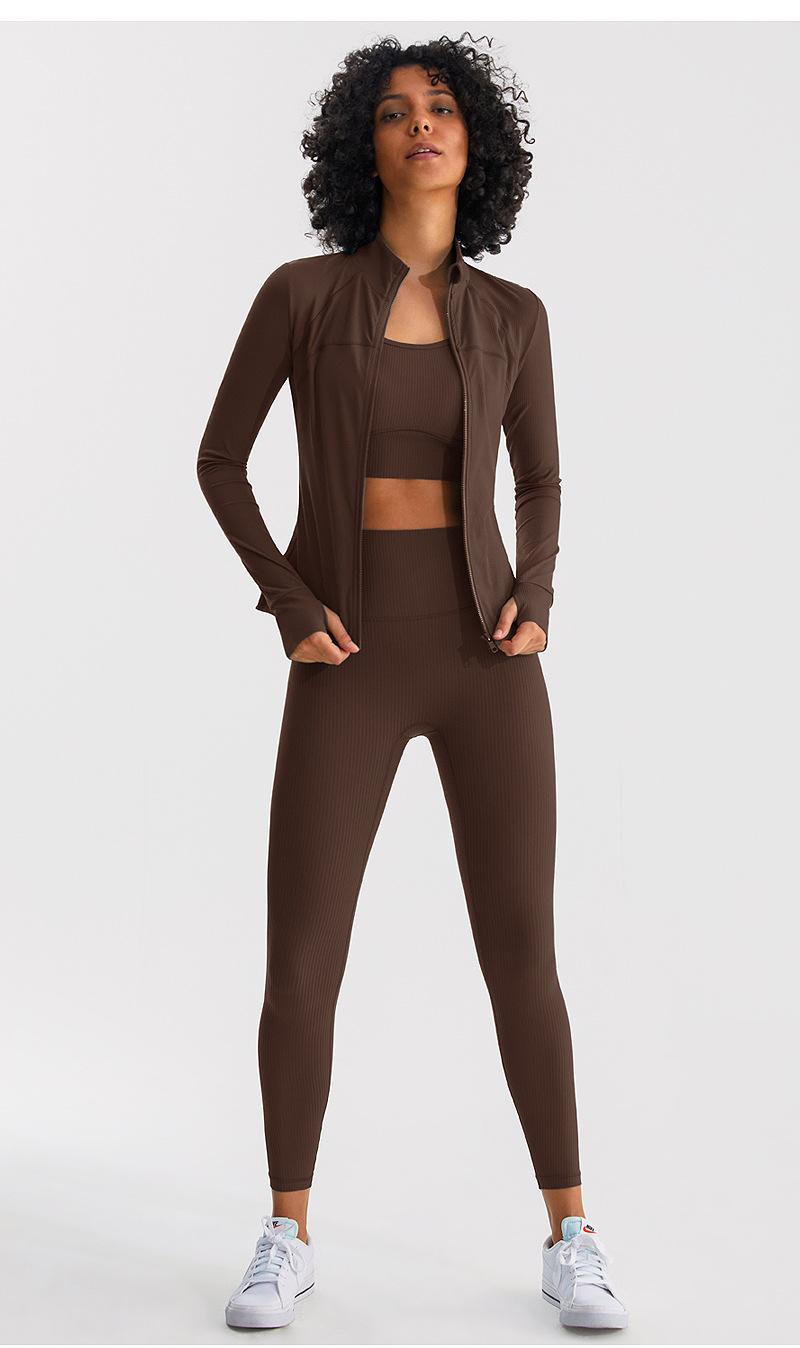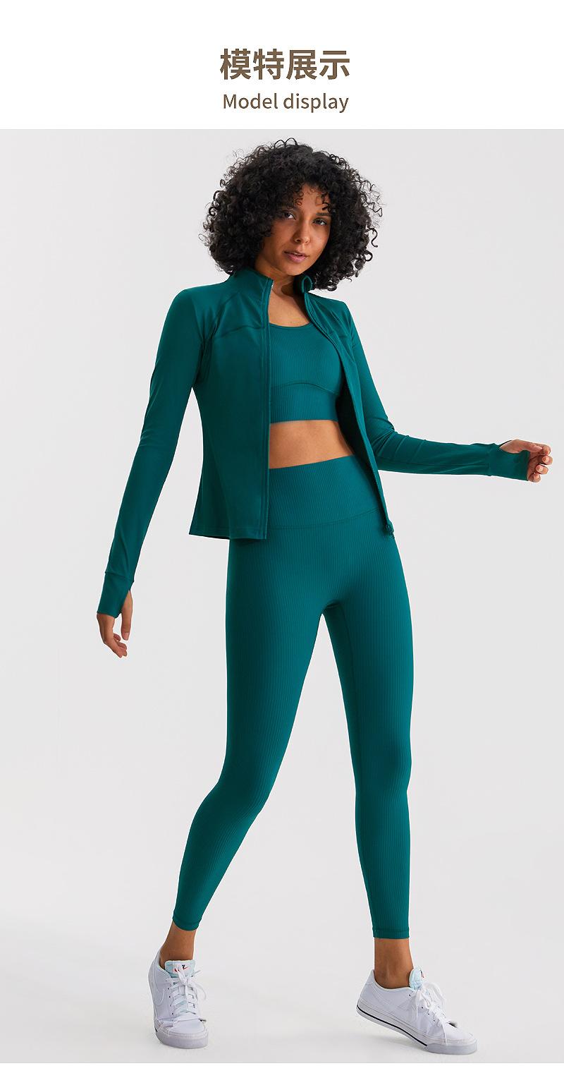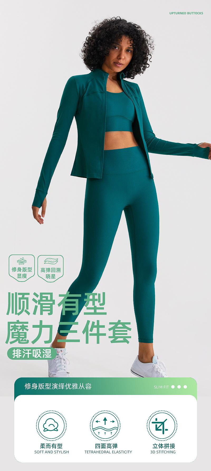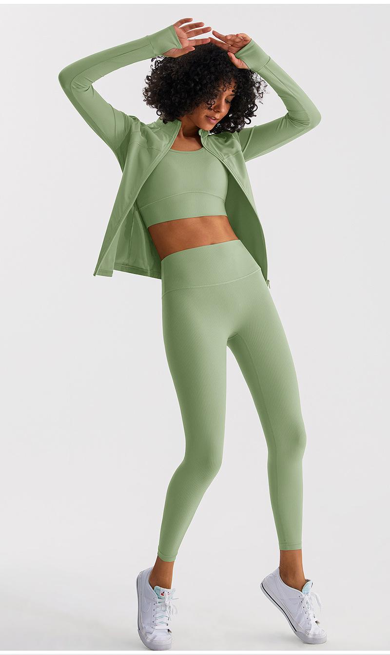 Conjunto de Ropa de Yoga Acanalado Efecto Adelgazante Moldeador de Cuerpo Pantalones de Yoga Ropa Deportiva Profesional para Correr Entrenamiento Fitness Conjunto de Tres Piezas Alta Elasticidad