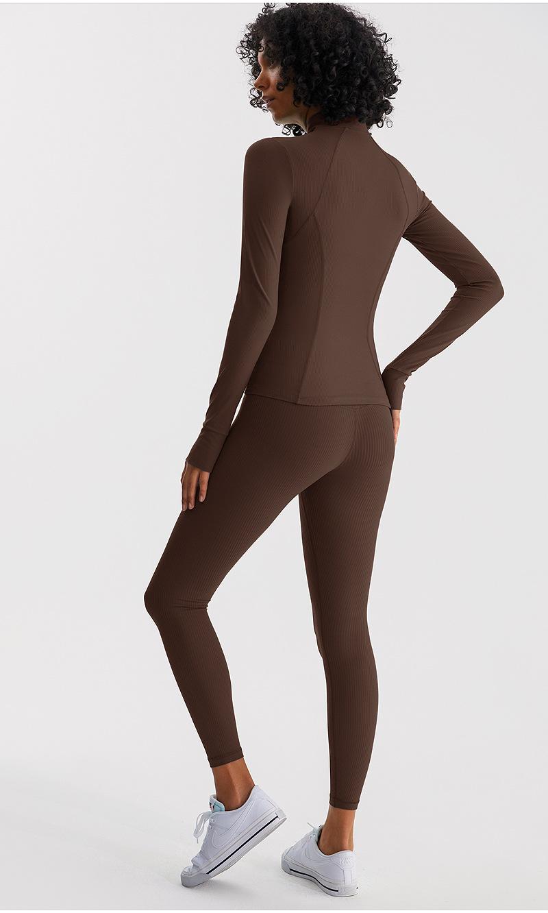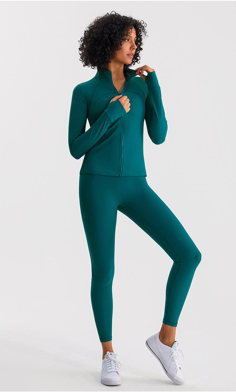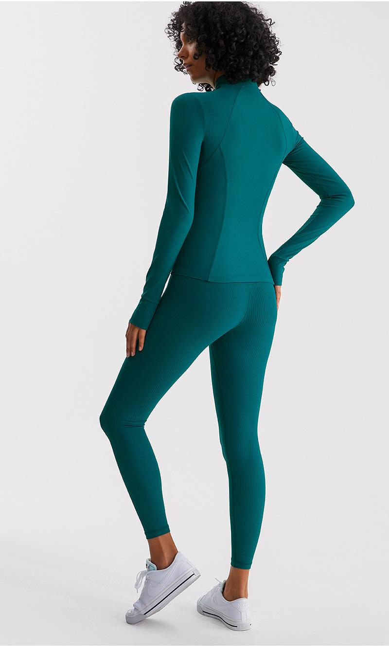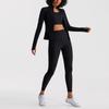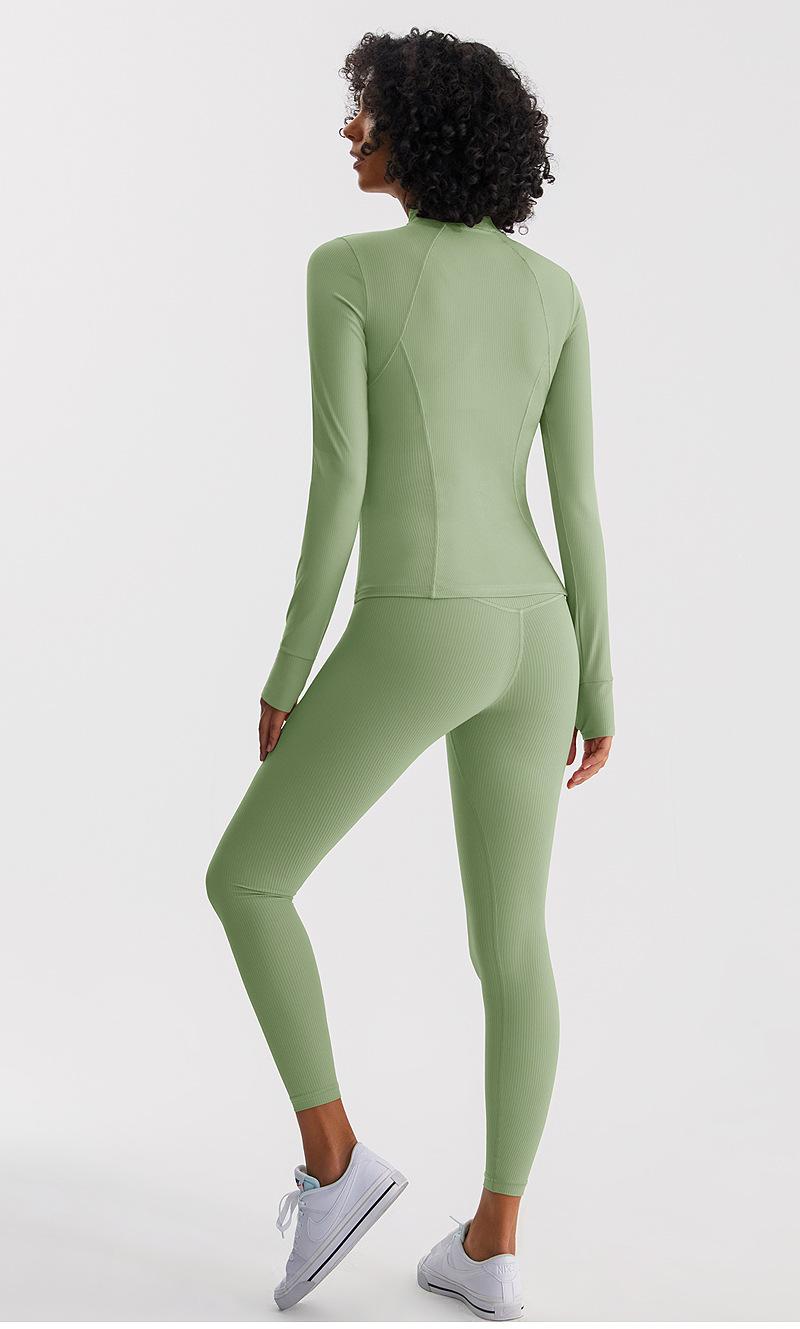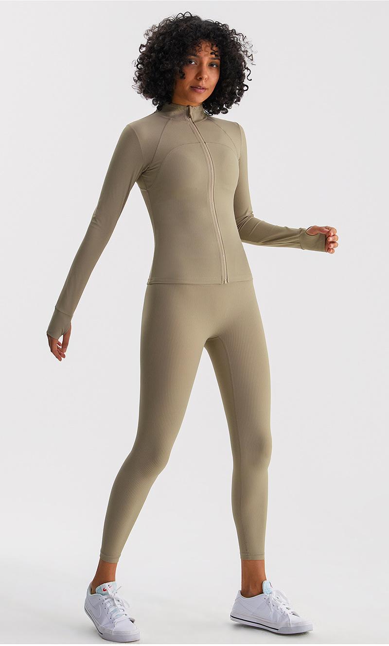 Conjunto de Ropa de Yoga Acanalado Efecto Adelgazante Moldeador de Cuerpo Pantalones de Yoga Ropa Deportiva Profesional para Correr Entrenamiento Fitness Conjunto de Tres Piezas Alta Elasticidad