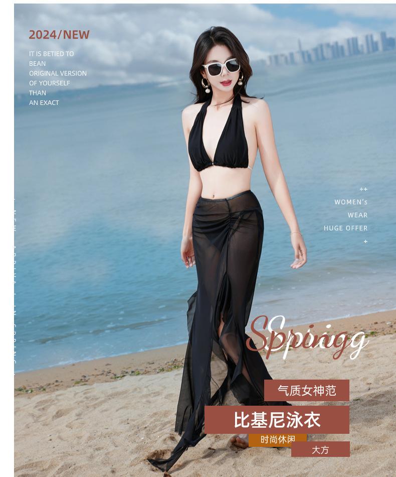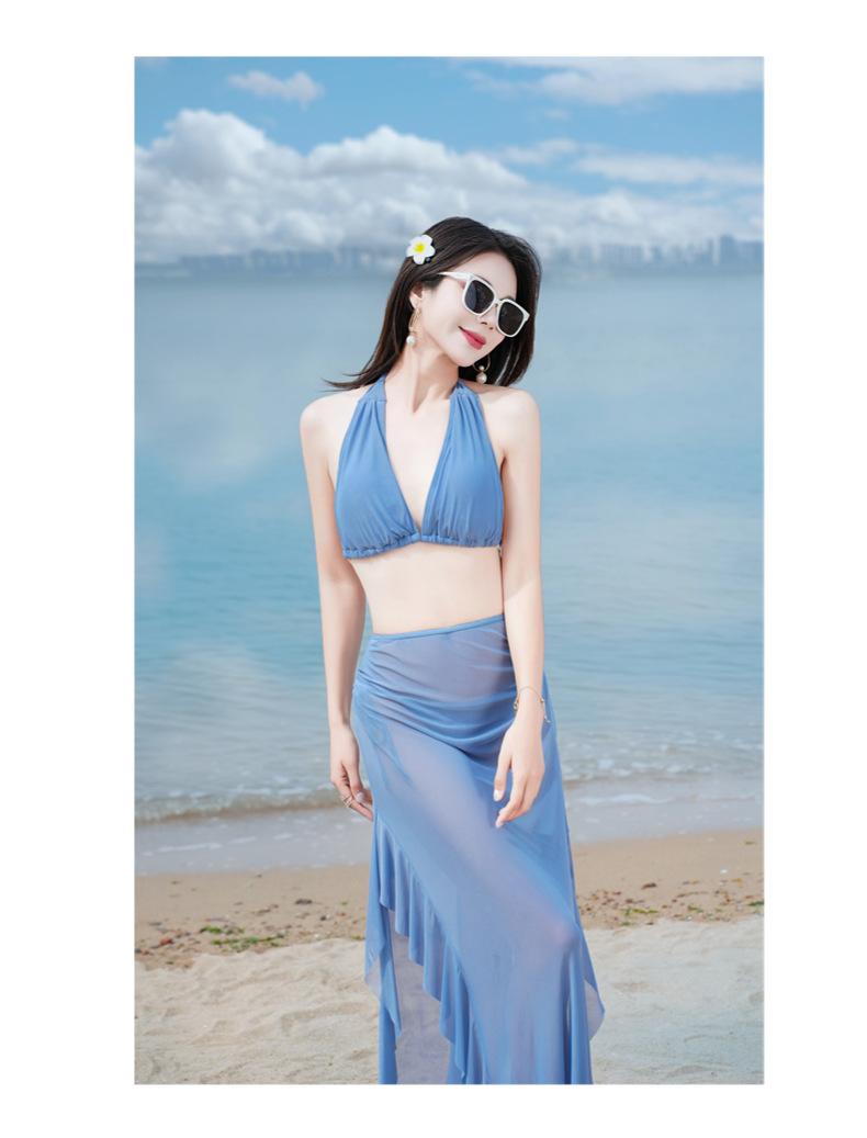 [Samuel Goddess] bikini bikini traje de baño femenino conjunto de tres piezas dividido falda cola de sirena traje de baño de vacaciones