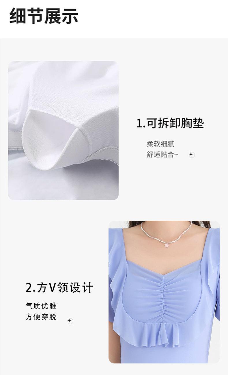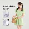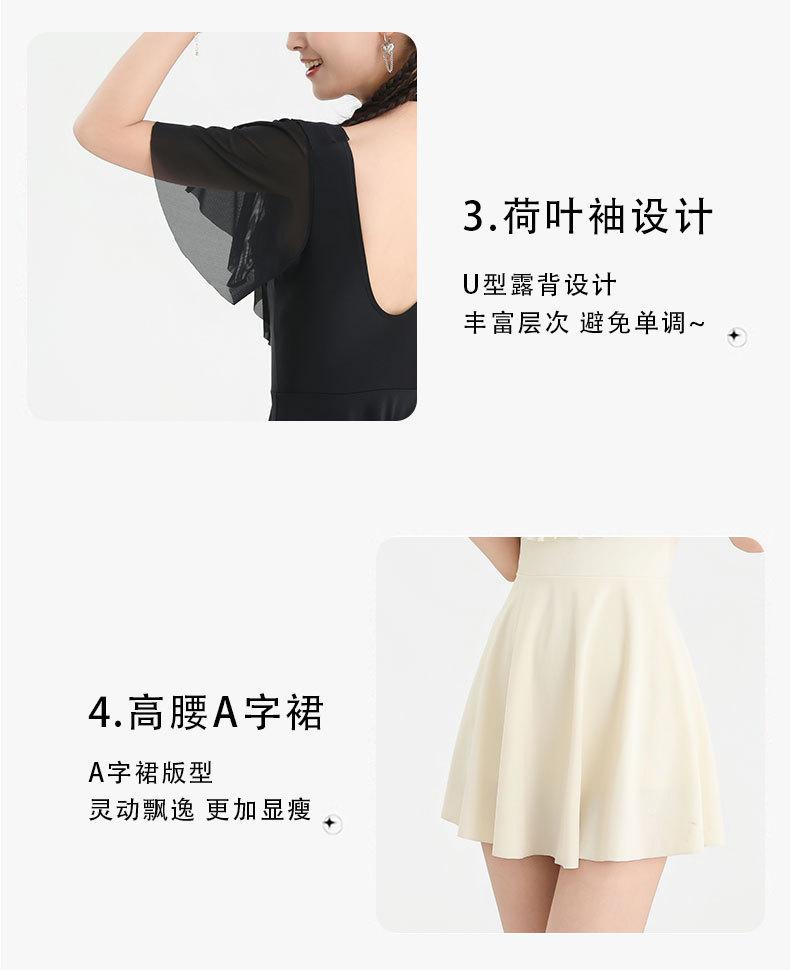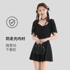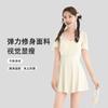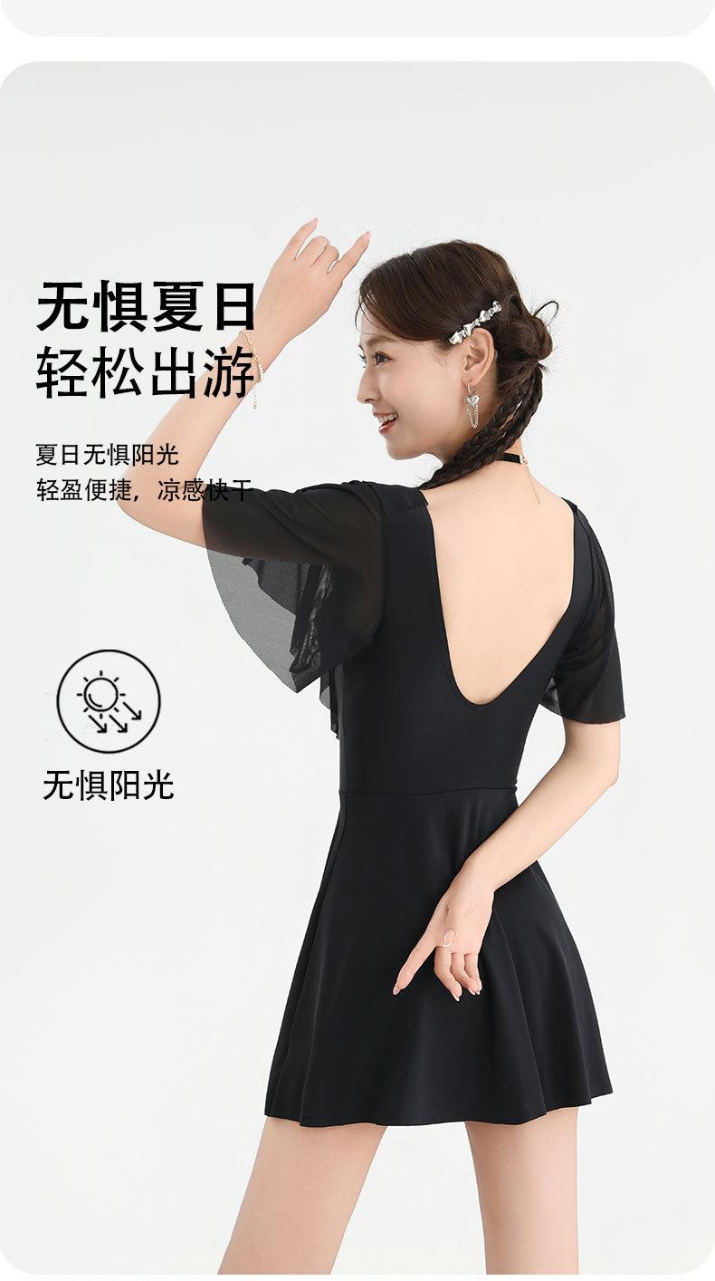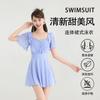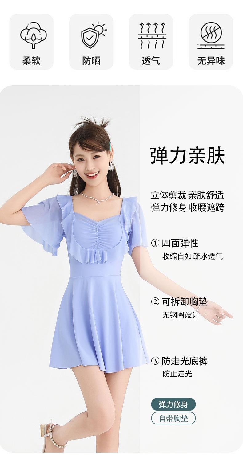 Traje de Baño de Verano Nuevo de Color Sólido Talla Grande para Mujer Una Pieza Falda Conservador Adelgazante Dulce Retro Manga Abullonada Traje de Baño Casual