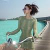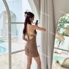 [Nuevo] Coreano ins tejido calado sexy cuello en V halter sin espalda atado deseo puro retro sin espalda vestido de playa mujer