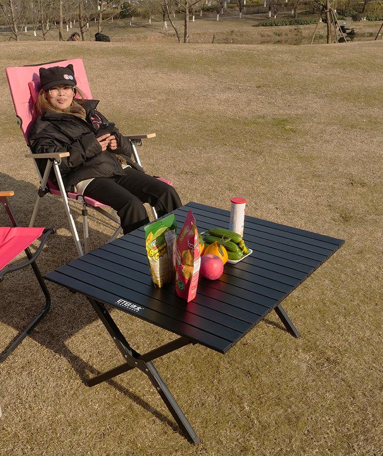 Mesa Enrollable de Aluminio para Exterior Portátil Estilo Camping Mesa de Picnic Equipo Estilo Camping Mesa y Sillas Plegable para Exterior