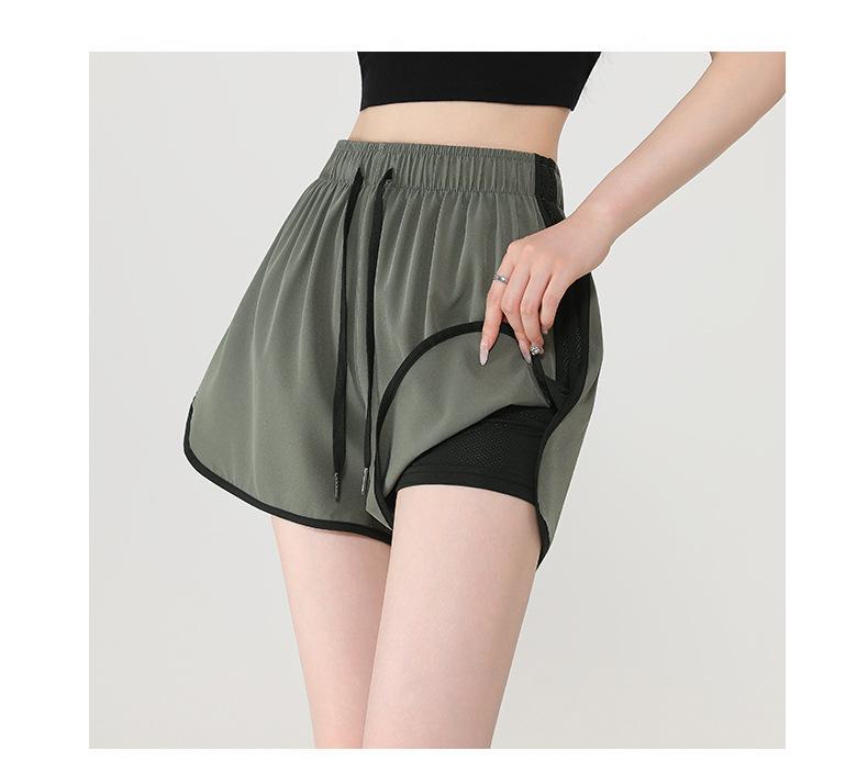 Shorts Deportivos Falsos de Dos Piezas de Tres Puntos, Anti-Exposición Verano Delgados Transpirables Casual Ropa Exterior para Correr Fitness Ropa Pantalones de Yoga