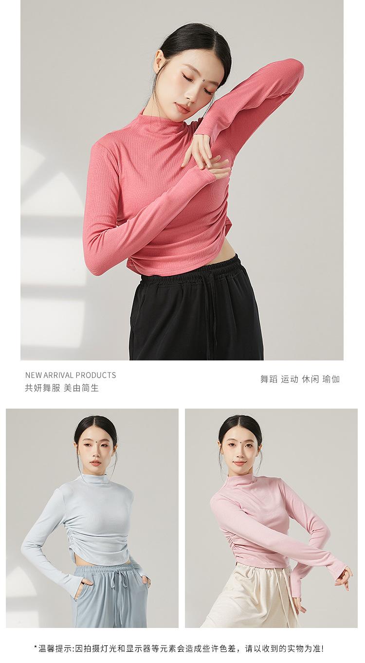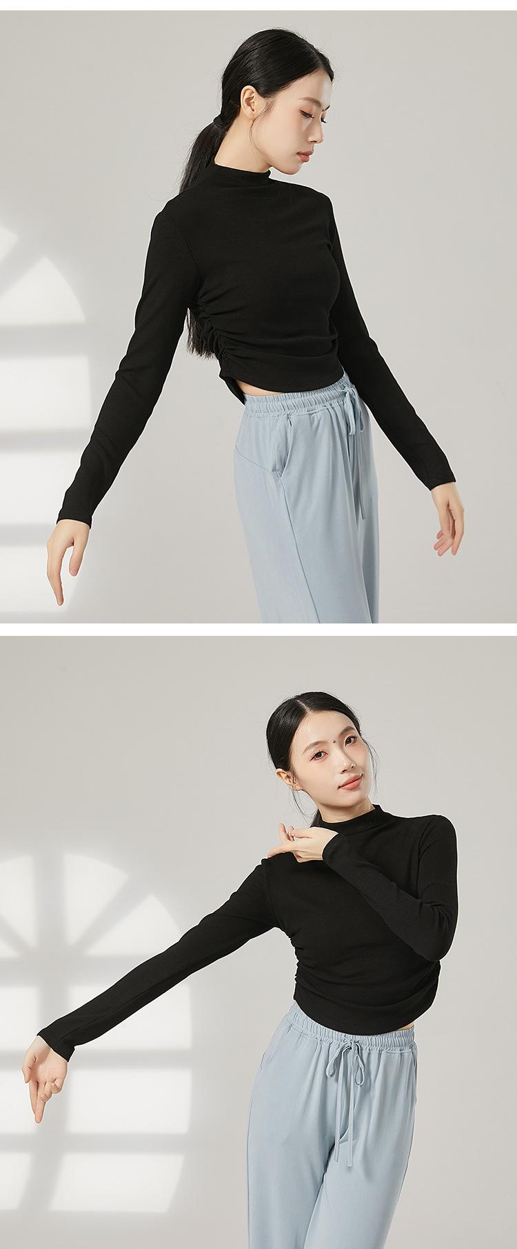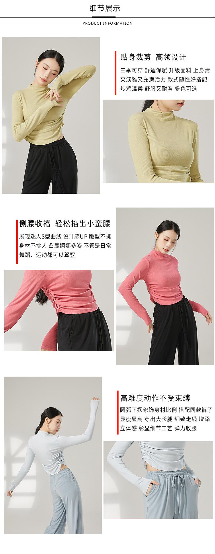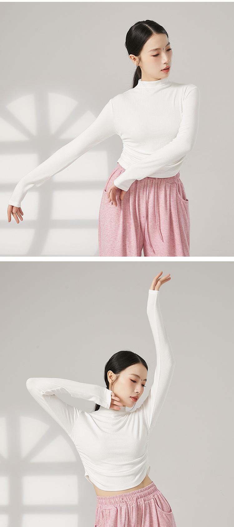 Traje de yoga adelgazante de cuello medio alto para mujer, traje de fitness elástico, top deportivo para correr, traje de danza clásica de otoño e invierno
