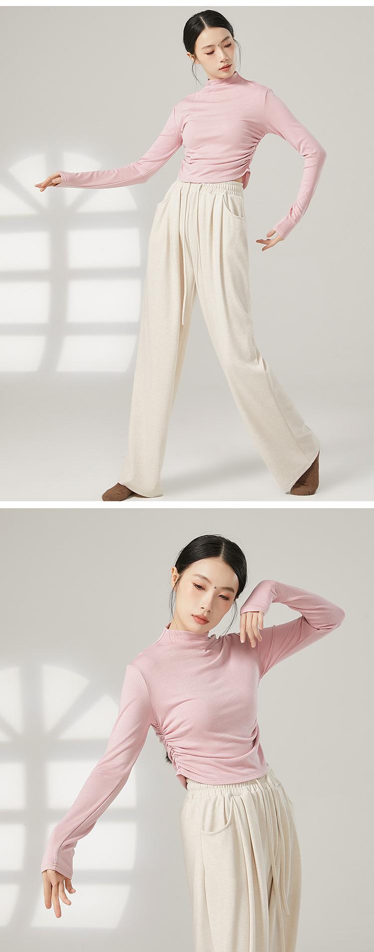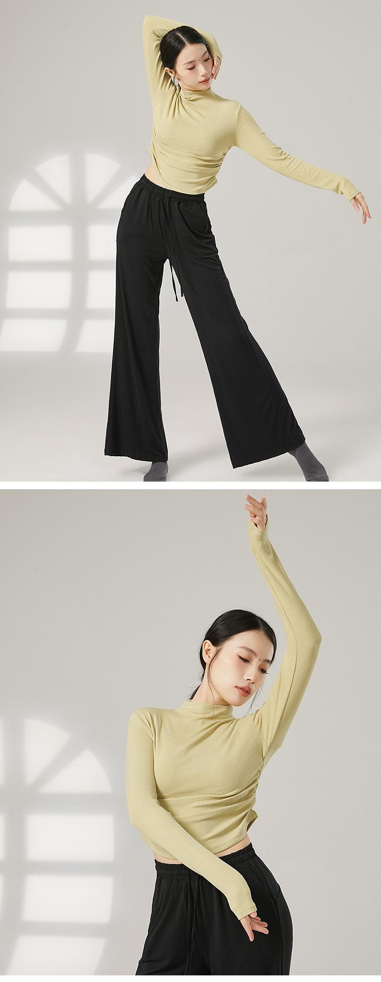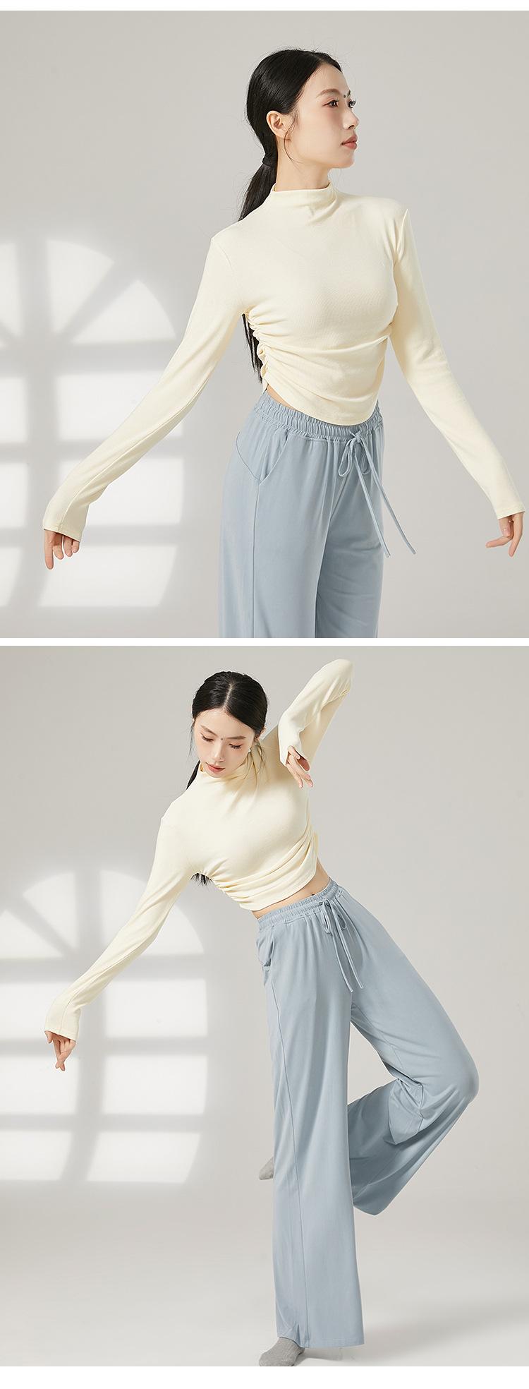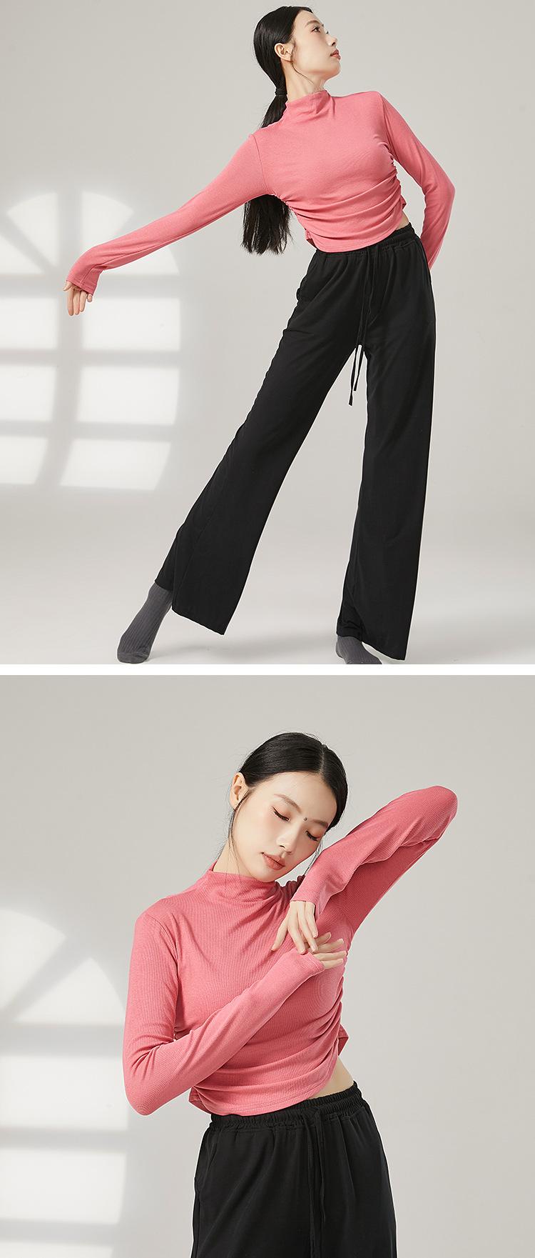 Traje de yoga adelgazante de cuello medio alto para mujer, traje de fitness elástico, top deportivo para correr, traje de danza clásica de otoño e invierno