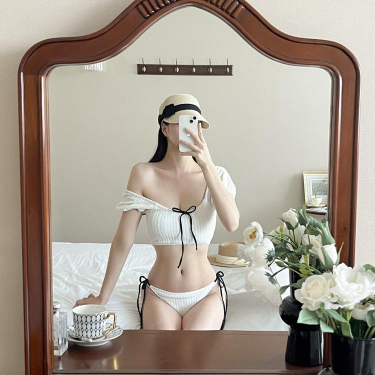 Traje de Baño de Una Pieza Dividido de Alta Gama para Mujer, Tejido de Terciopelo Pure Lust, Traje de Baño Bikini Estilo Coreano Ins
