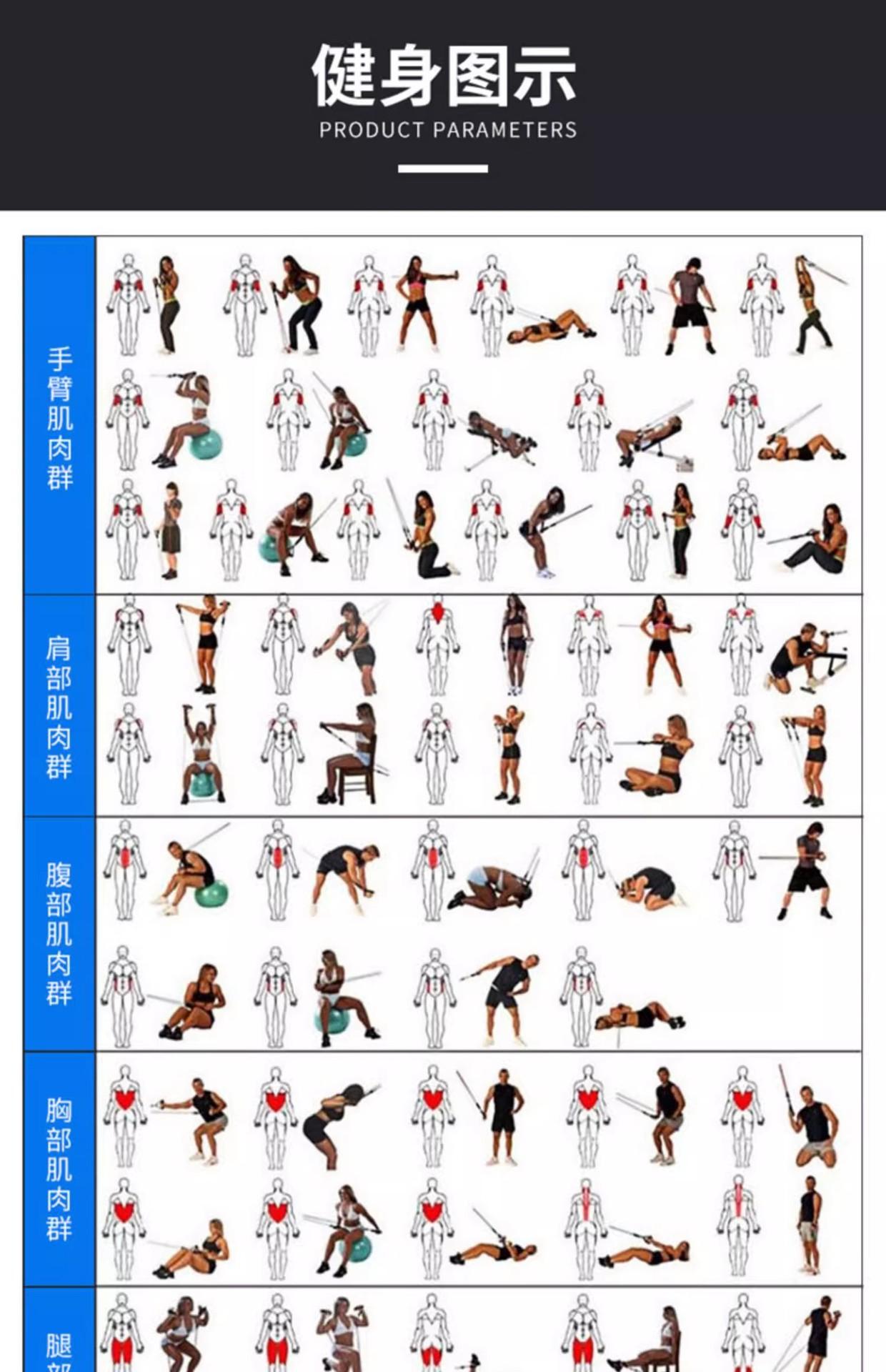 Set Multifuncional de 11 piezas Cuerda de Resistencia Banda de Resistencia Cuerda Elástica Set de Fitness Banda de Entrenamiento Banda Elástica de Resistencia