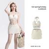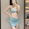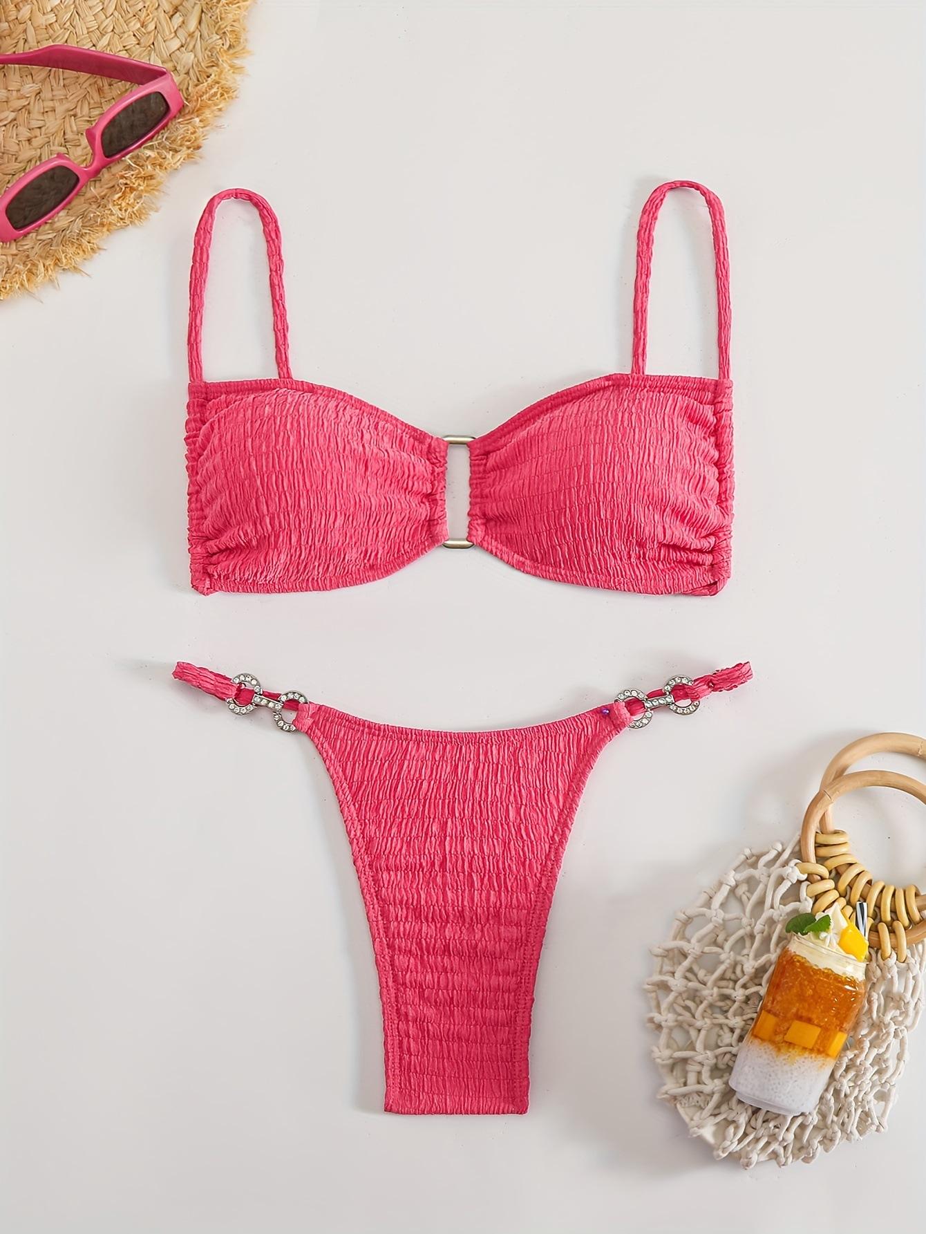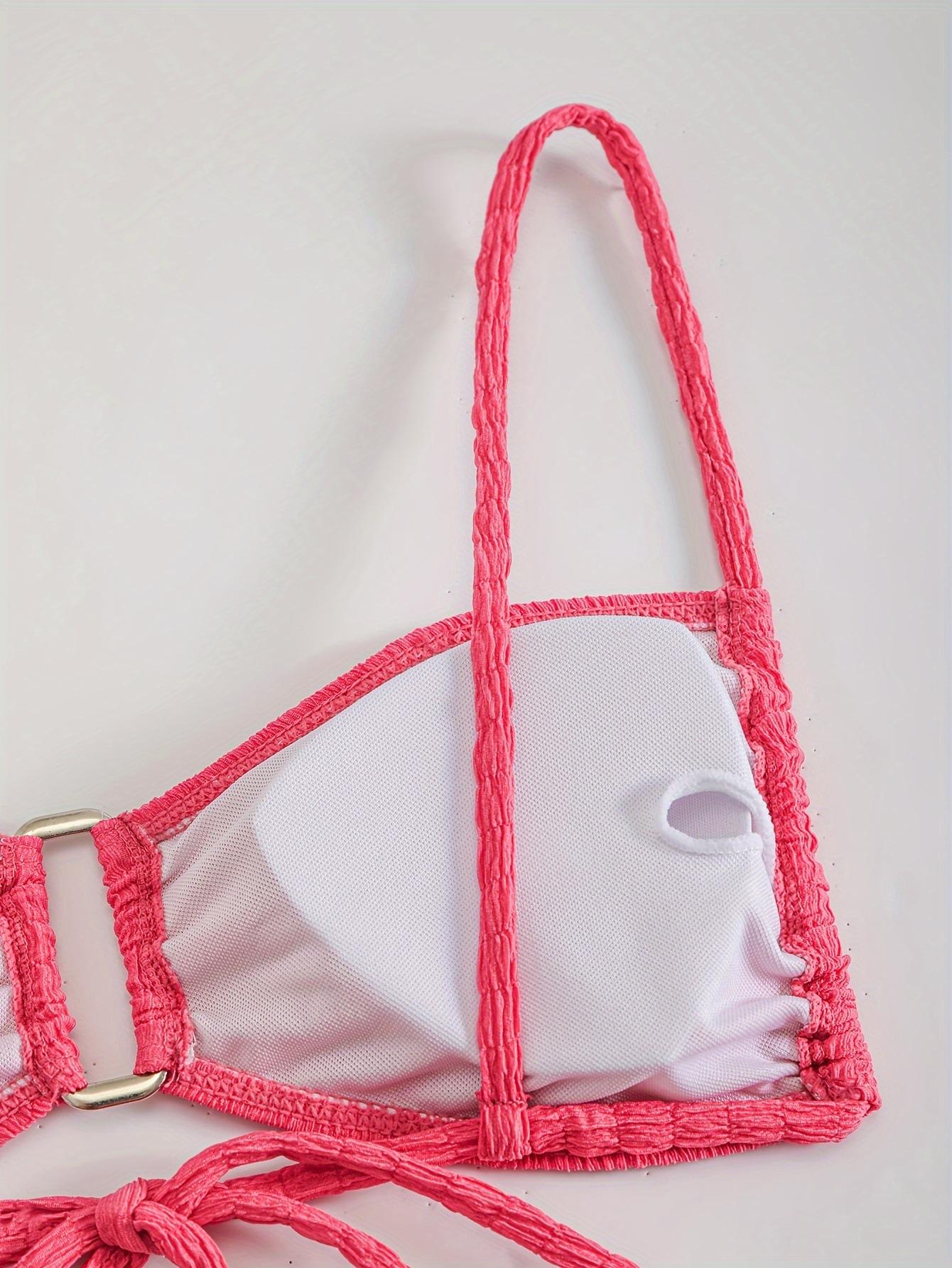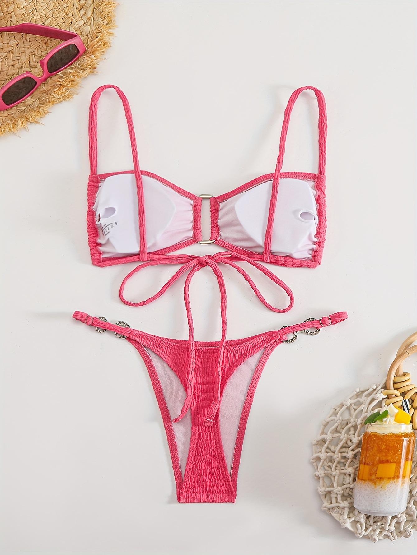 Nuevo bikini de tres puntos europeo y americano súper expuesto para mujer rosa estilo vacacional traje de baño dividido conjunto de dos piezas bikini
