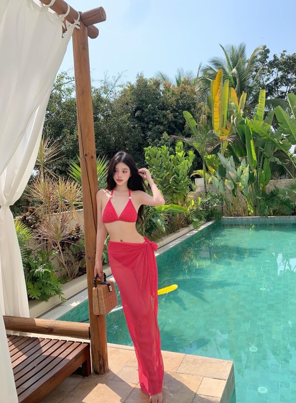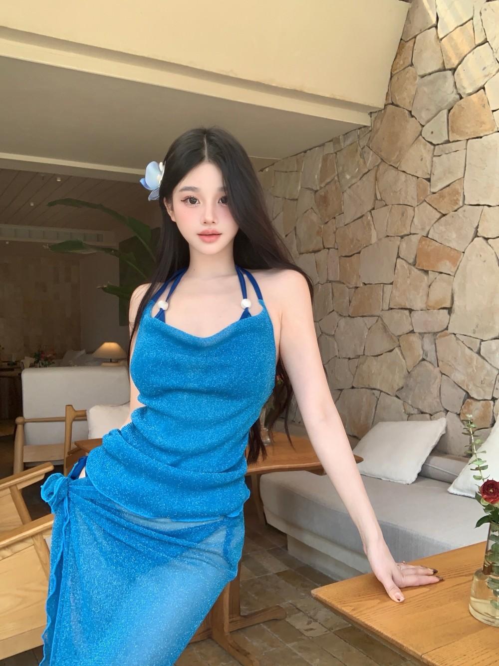 2025 Nuevo Bikini Sexy de Diosa de Alta Gama de Tres Piezas con Falda Larga para Mujer