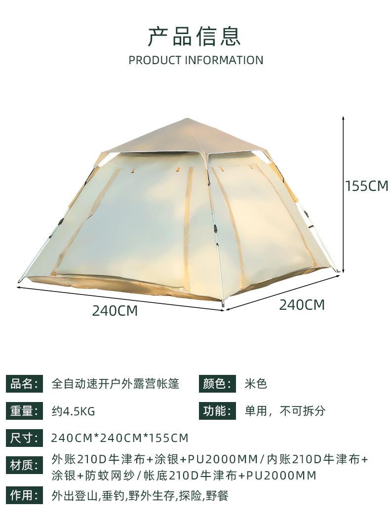 Tienda de Campaña para Exteriores Plegable Conveniente Camping Impermeable Engrosada Tienda de Campaña para Camping al Aire Libre Totalmente Automática de Apertura Rápida Tienda con Protección Solar