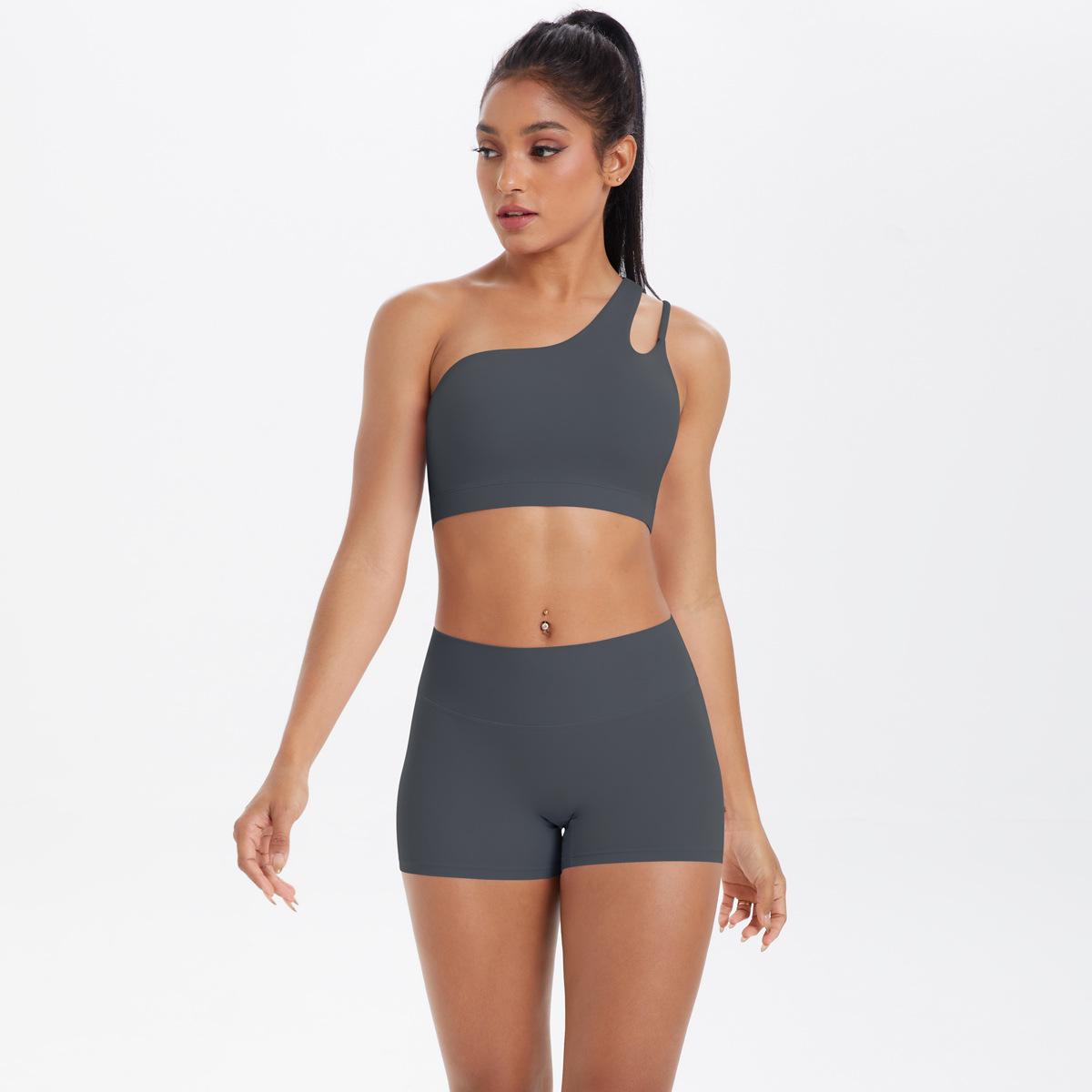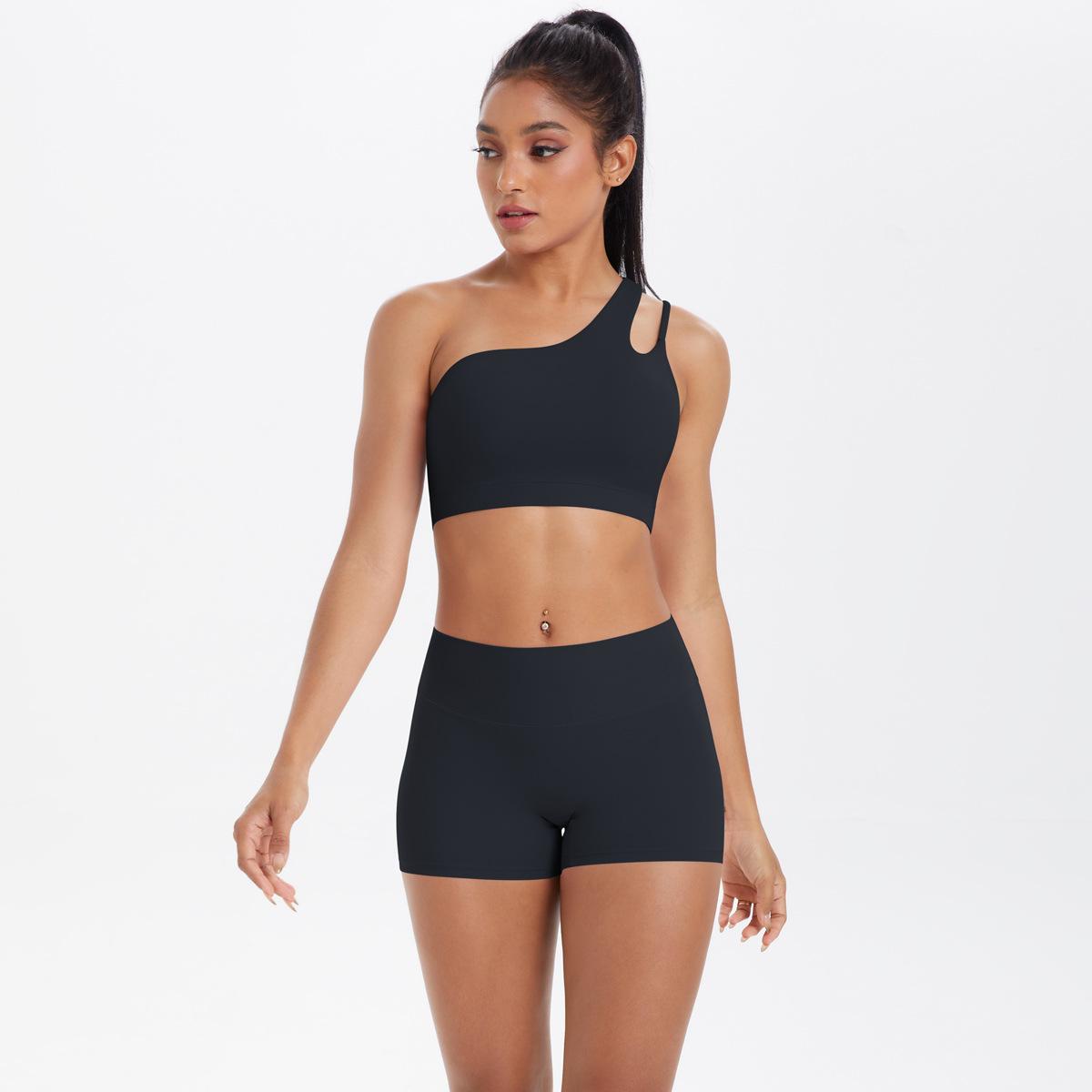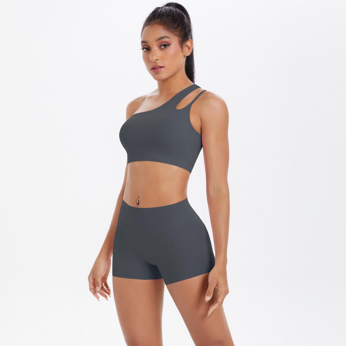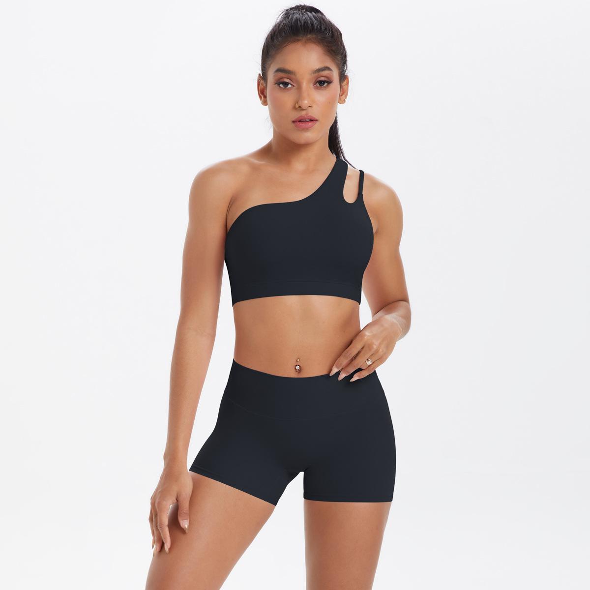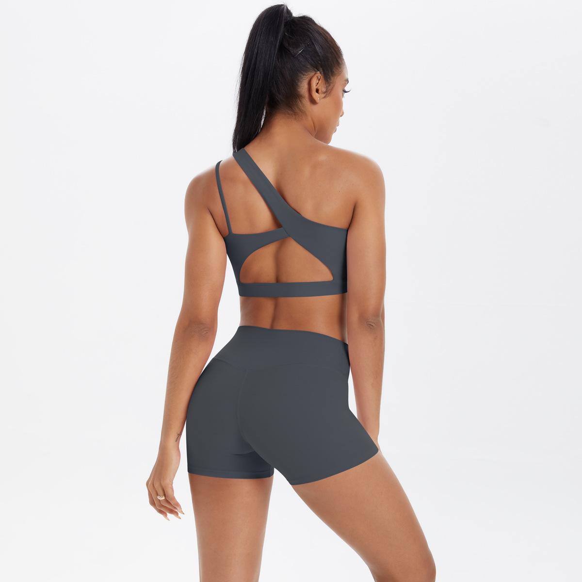 Transfronterizo Nuevo Conjunto Deportivo de Yoga de un Hombro con Sensación de Nube Ajustado Cadera Secado Rápido para Correr Fitness Dos Piezas