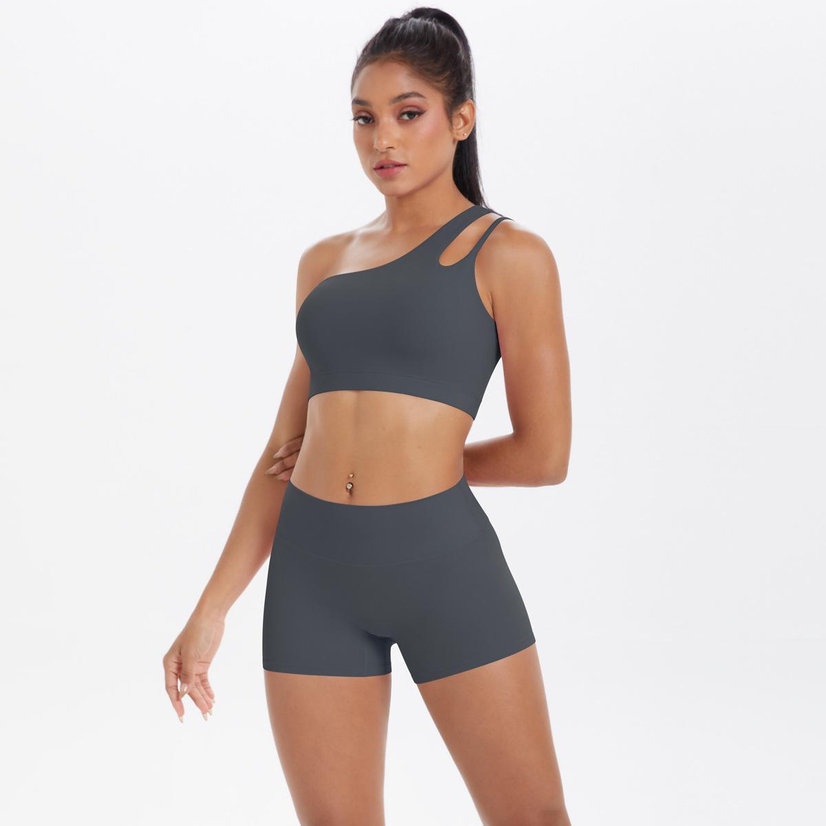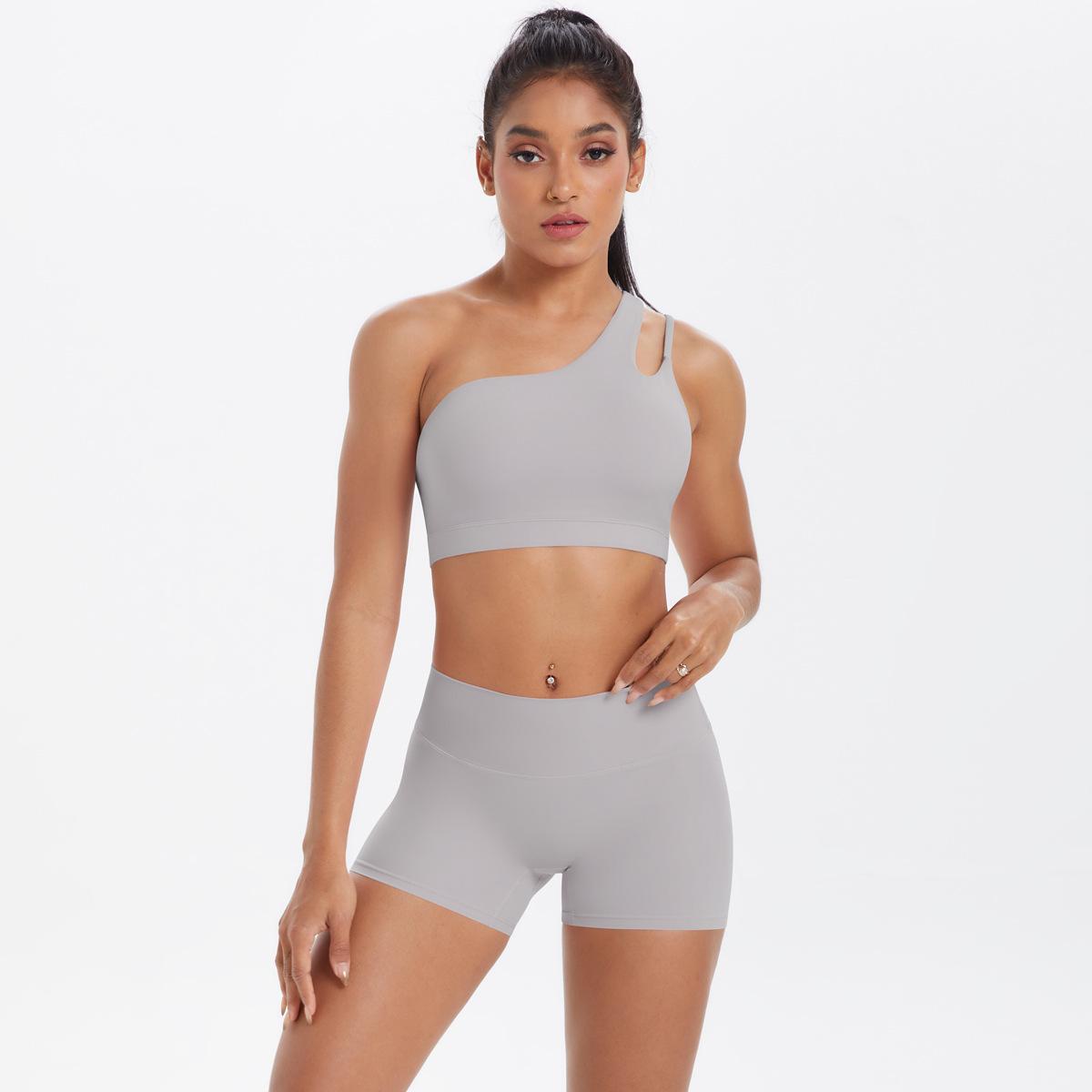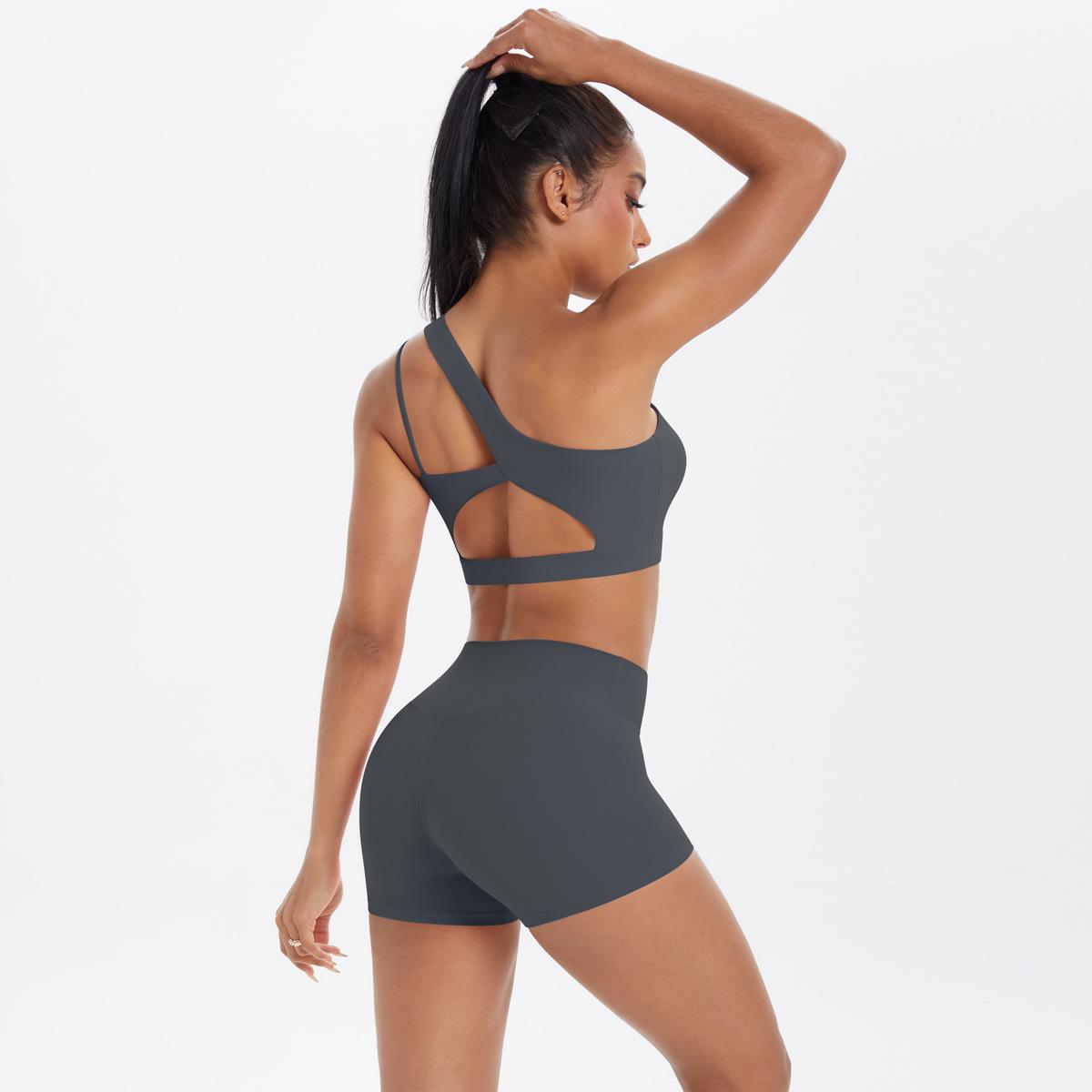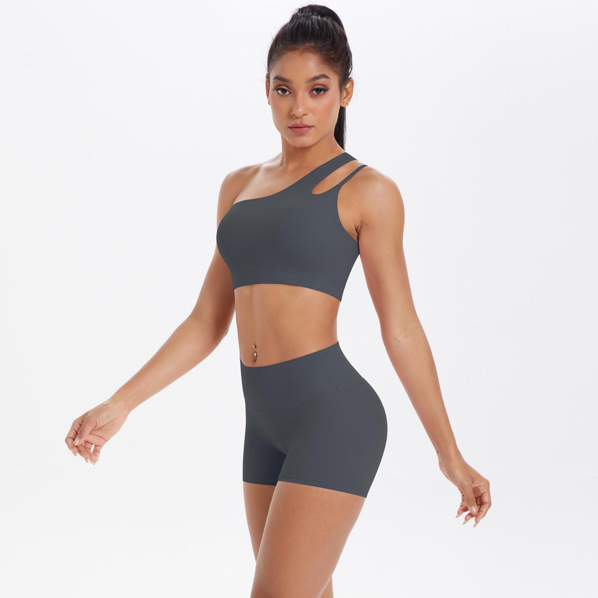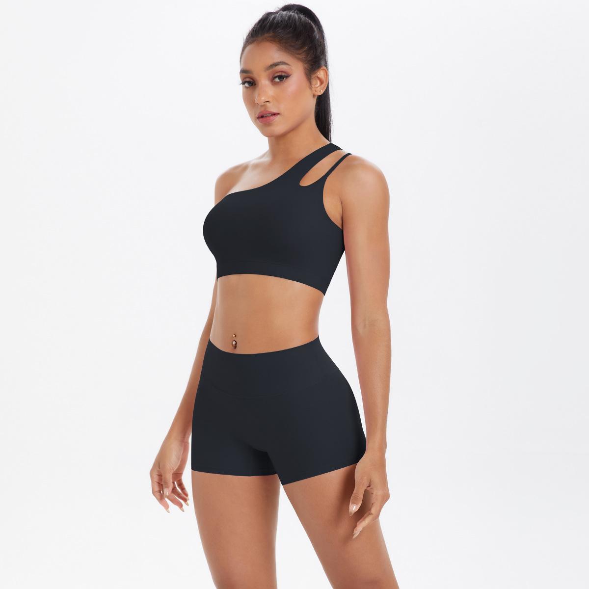 Transfronterizo Nuevo Conjunto Deportivo de Yoga de un Hombro con Sensación de Nube Ajustado Cadera Secado Rápido para Correr Fitness Dos Piezas