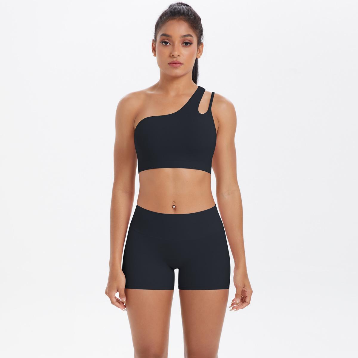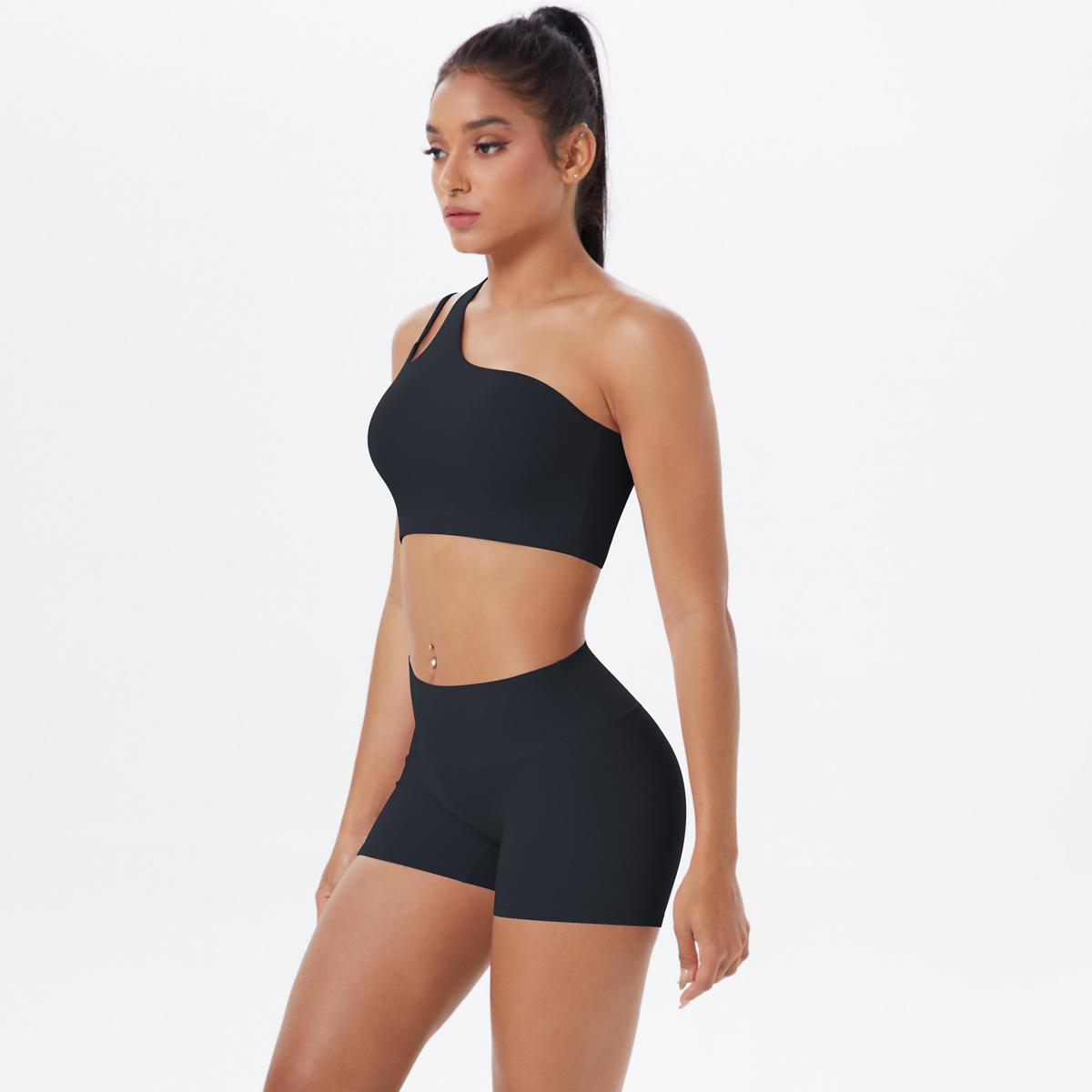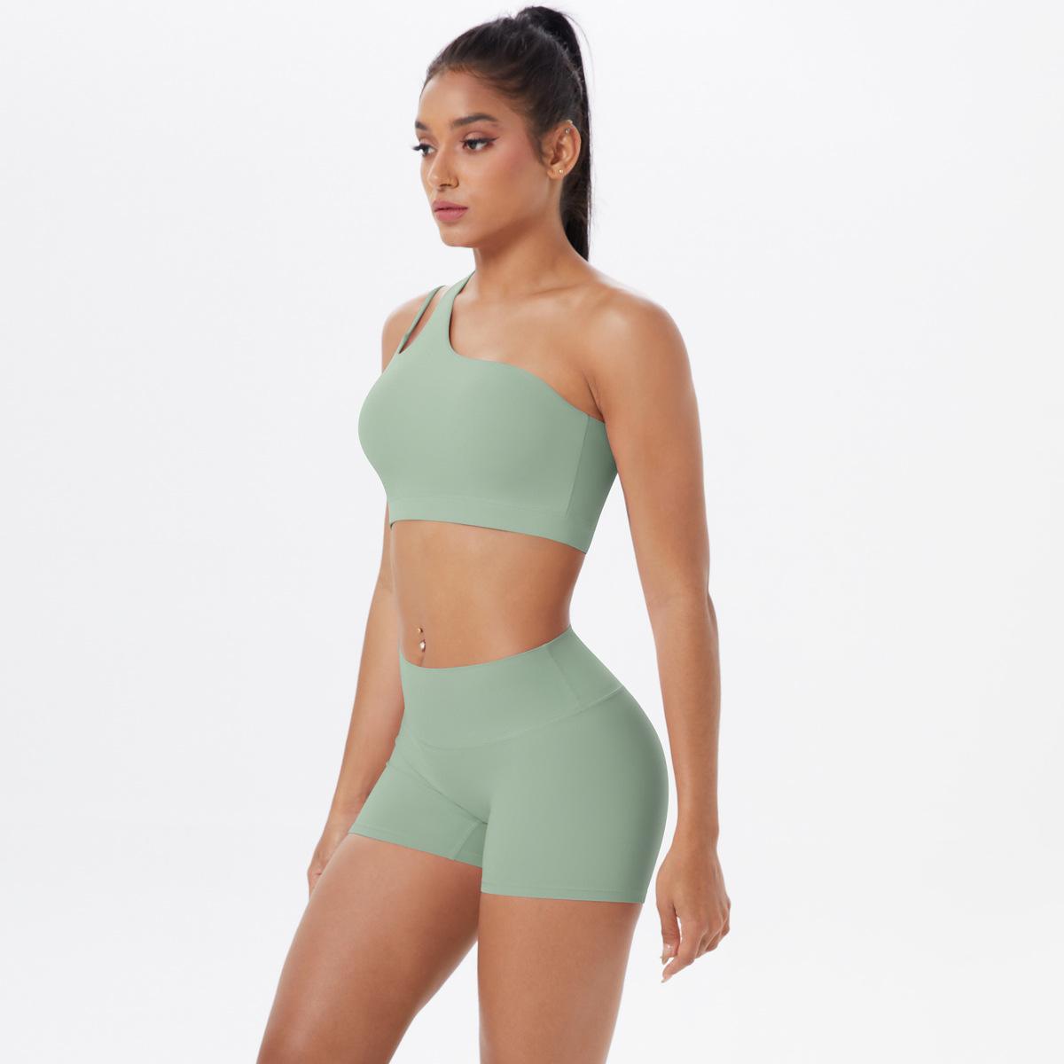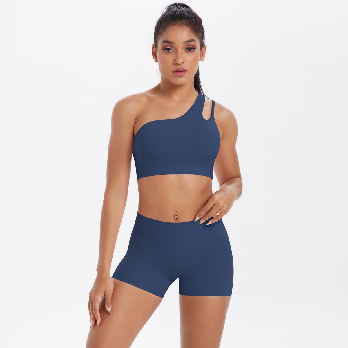 Transfronterizo Nuevo Conjunto Deportivo de Yoga de un Hombro con Sensación de Nube Ajustado Cadera Secado Rápido para Correr Fitness Dos Piezas
