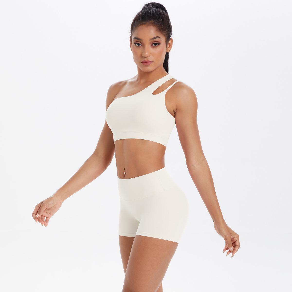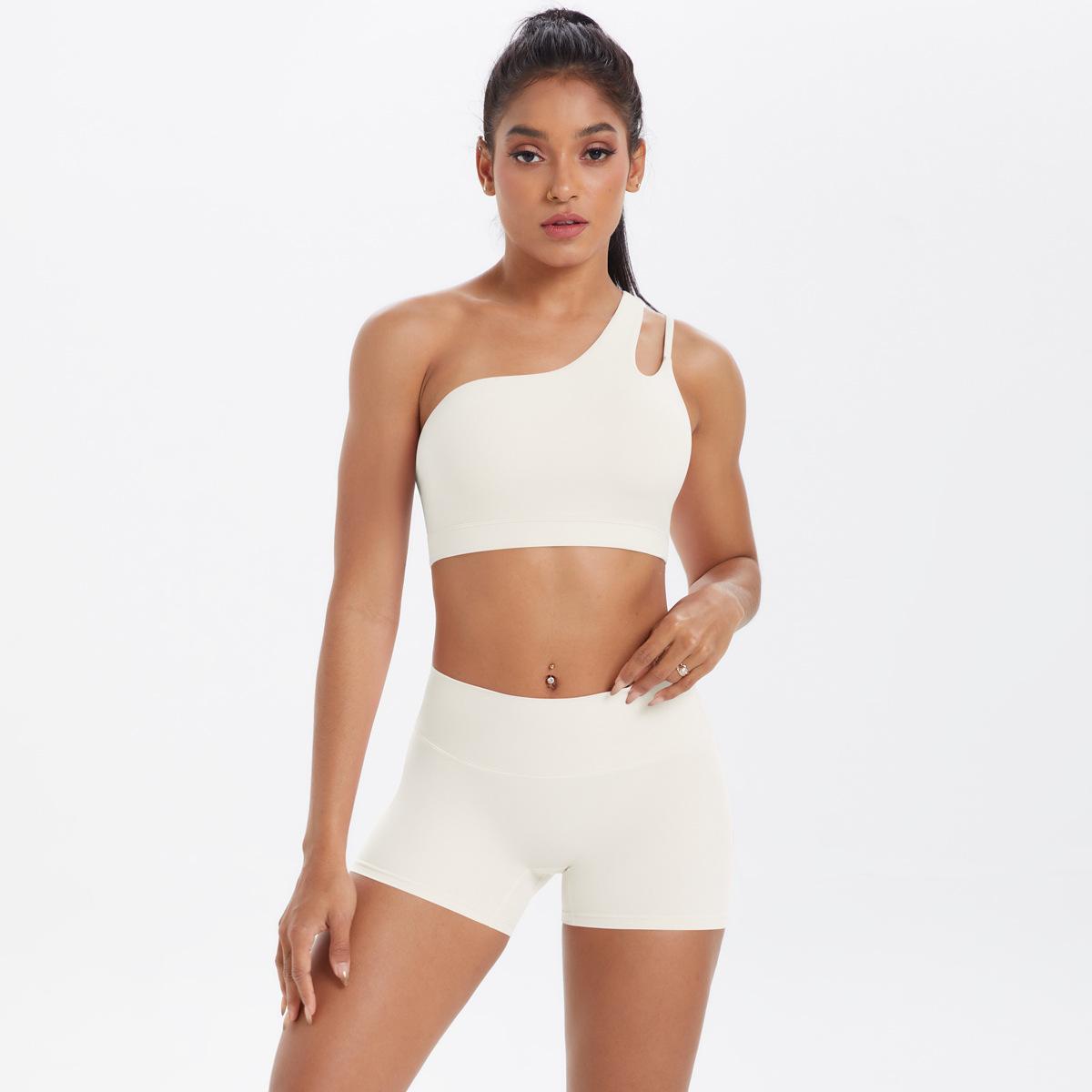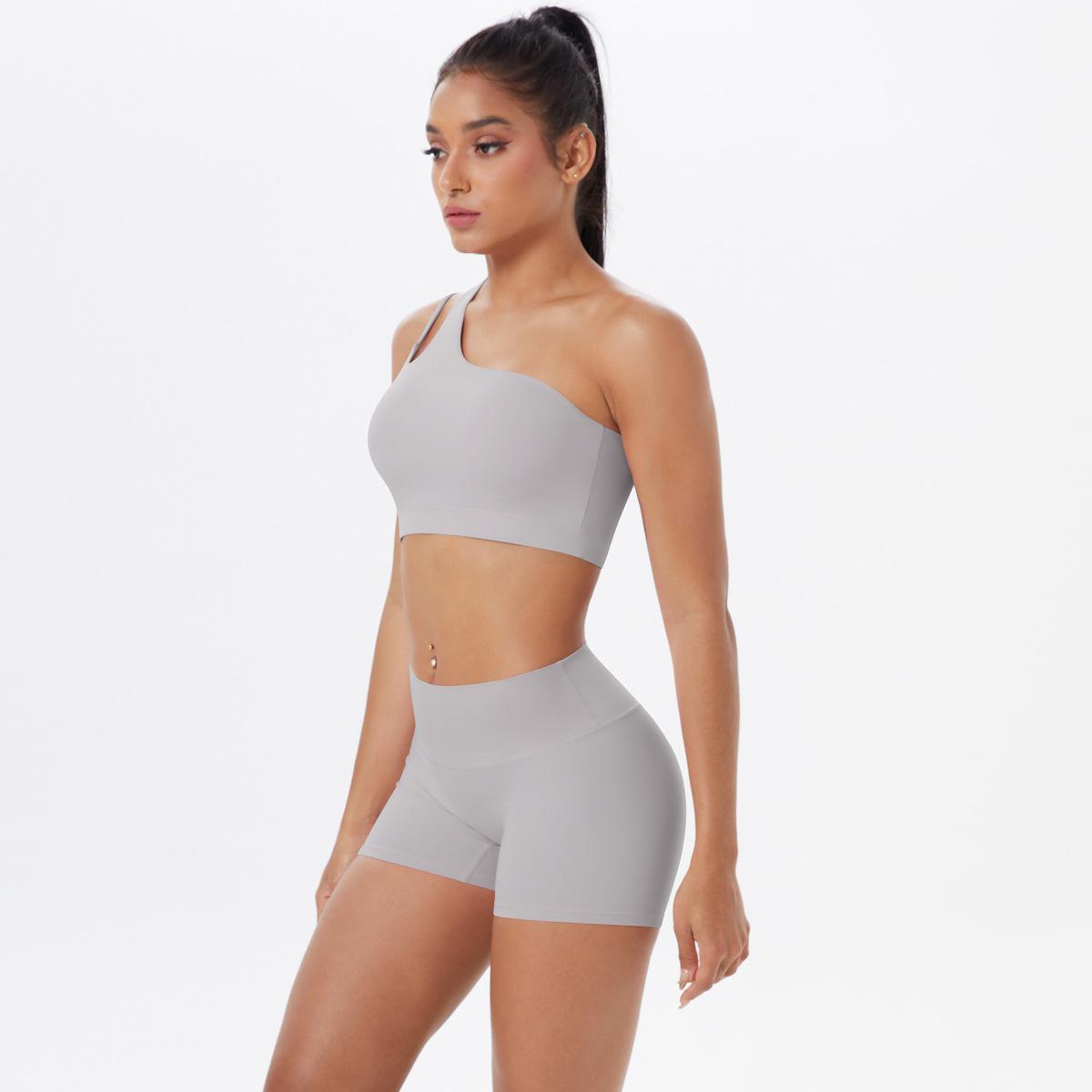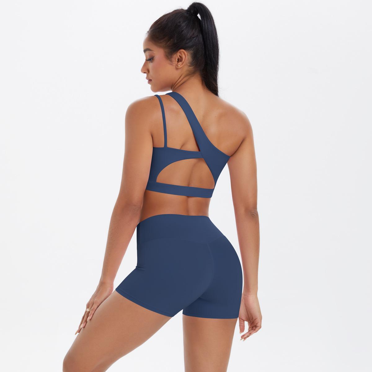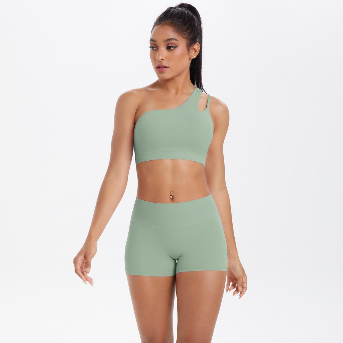Transfronterizo Nuevo Conjunto Deportivo de Yoga de un Hombro con Sensación de Nube Ajustado Cadera Secado Rápido para Correr Fitness Dos Piezas