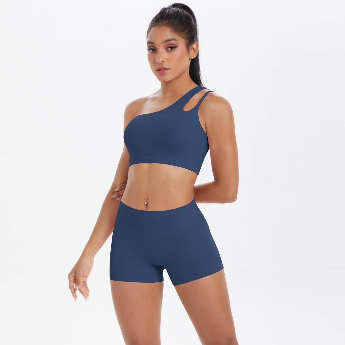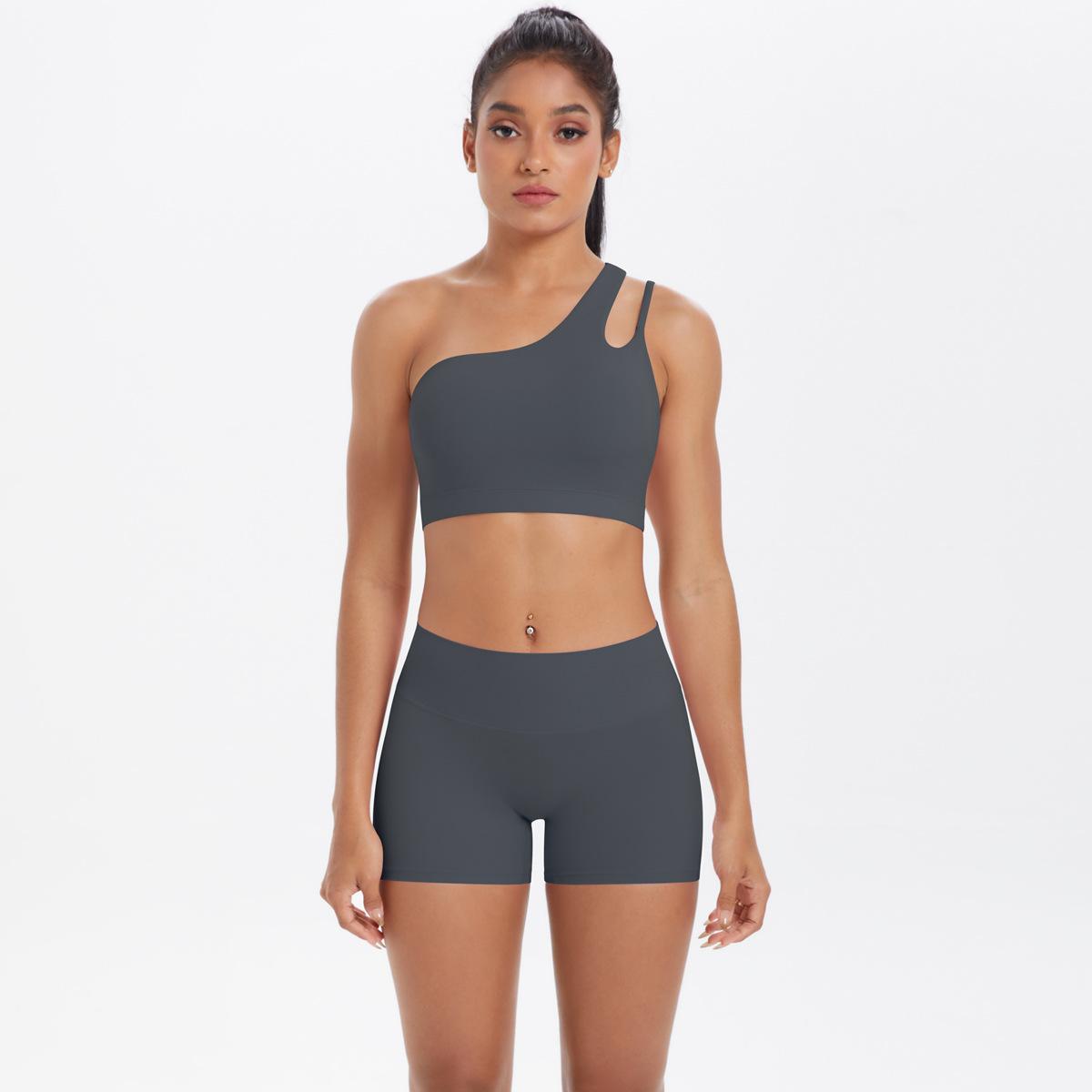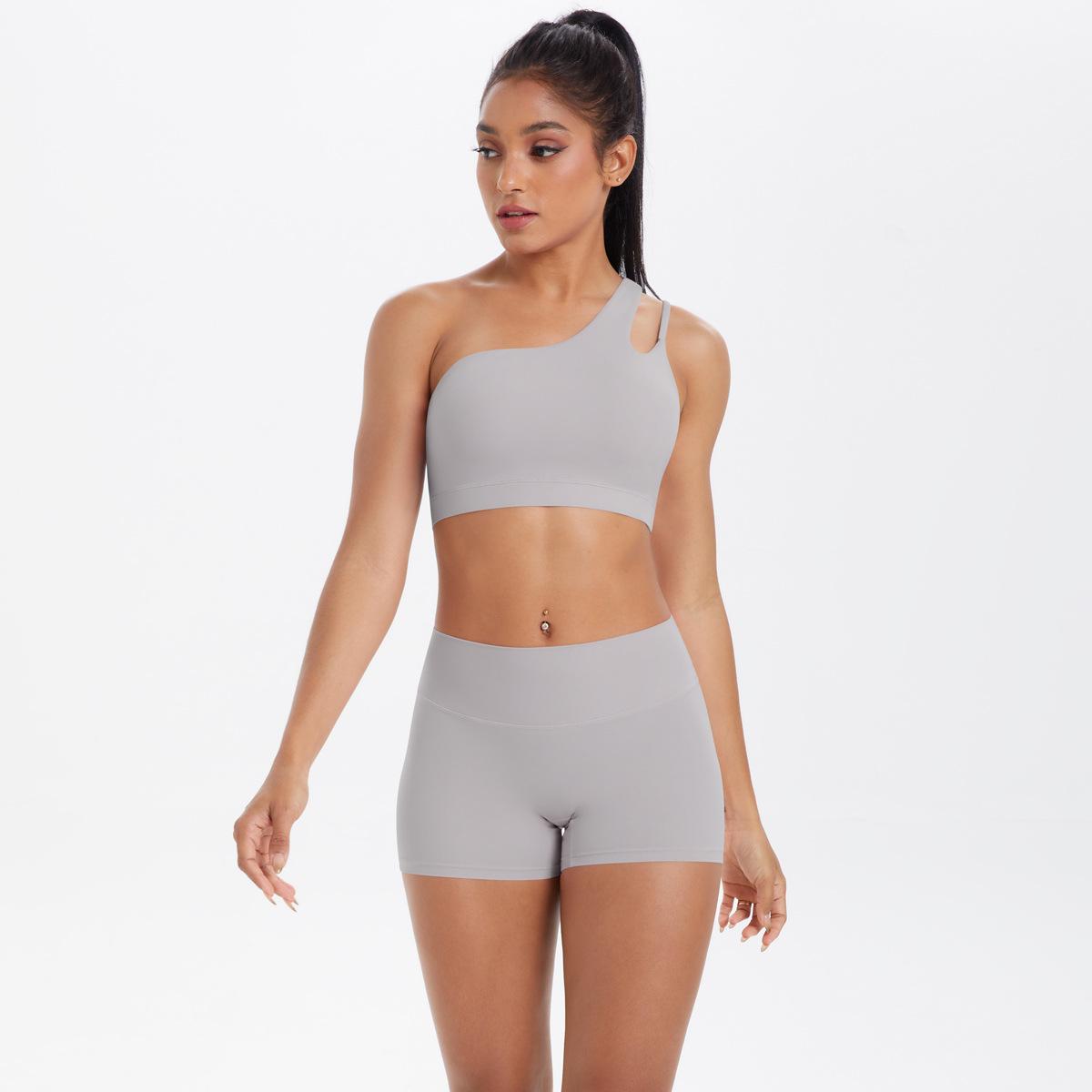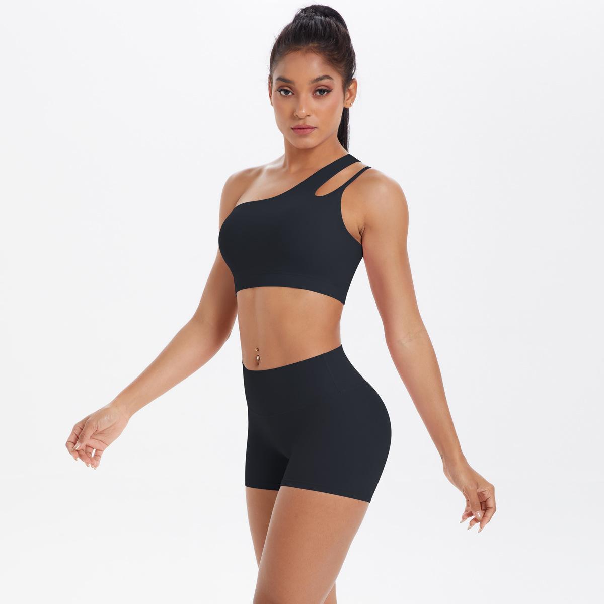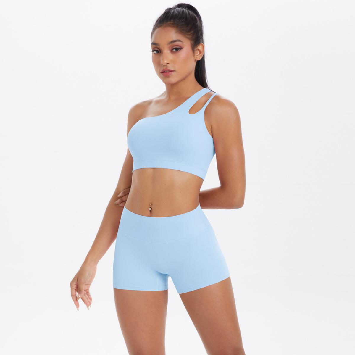 Transfronterizo Nuevo Conjunto Deportivo de Yoga de un Hombro con Sensación de Nube Ajustado Cadera Secado Rápido para Correr Fitness Dos Piezas