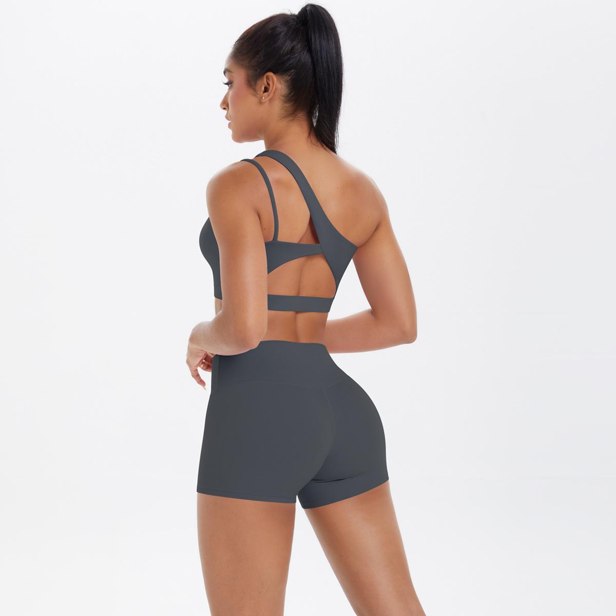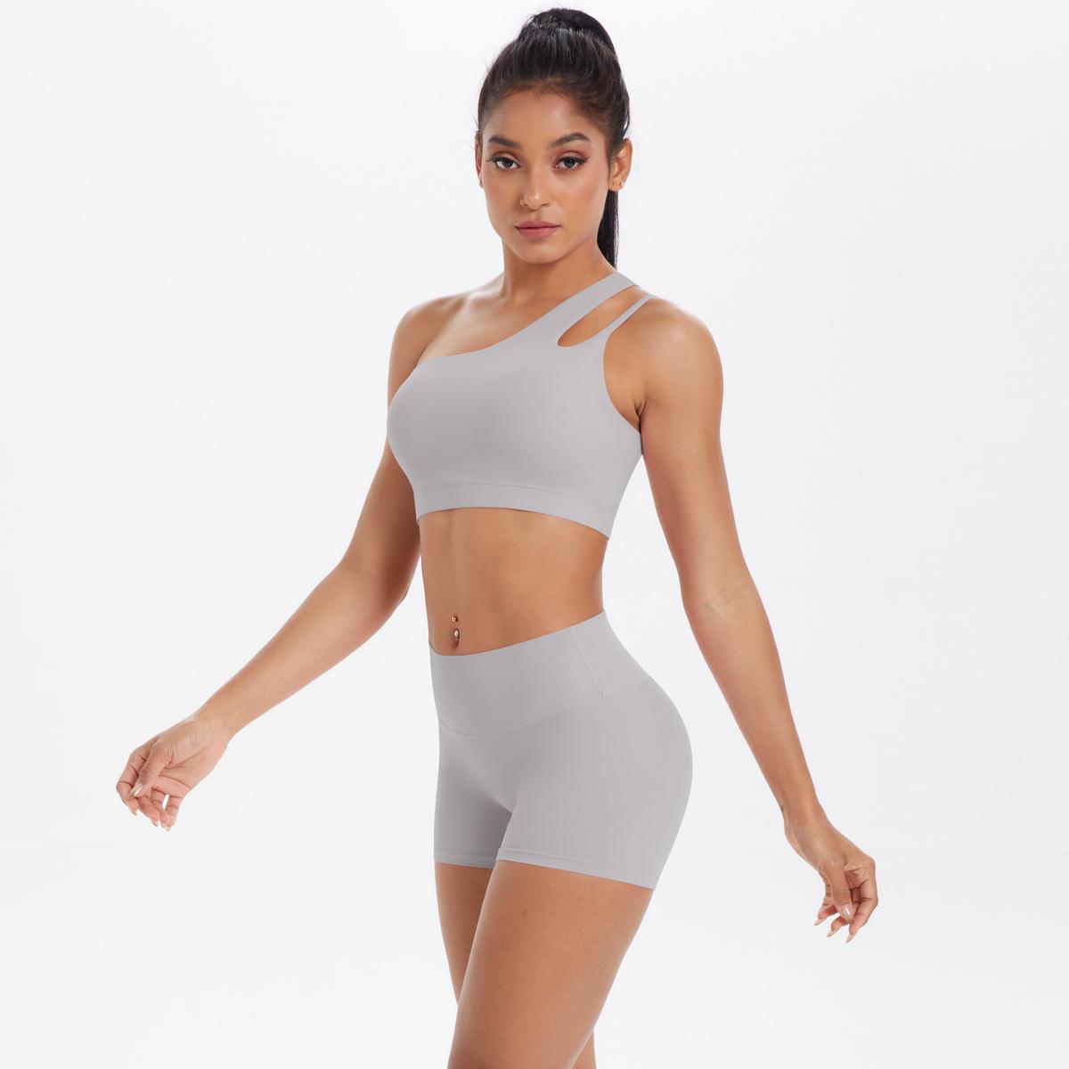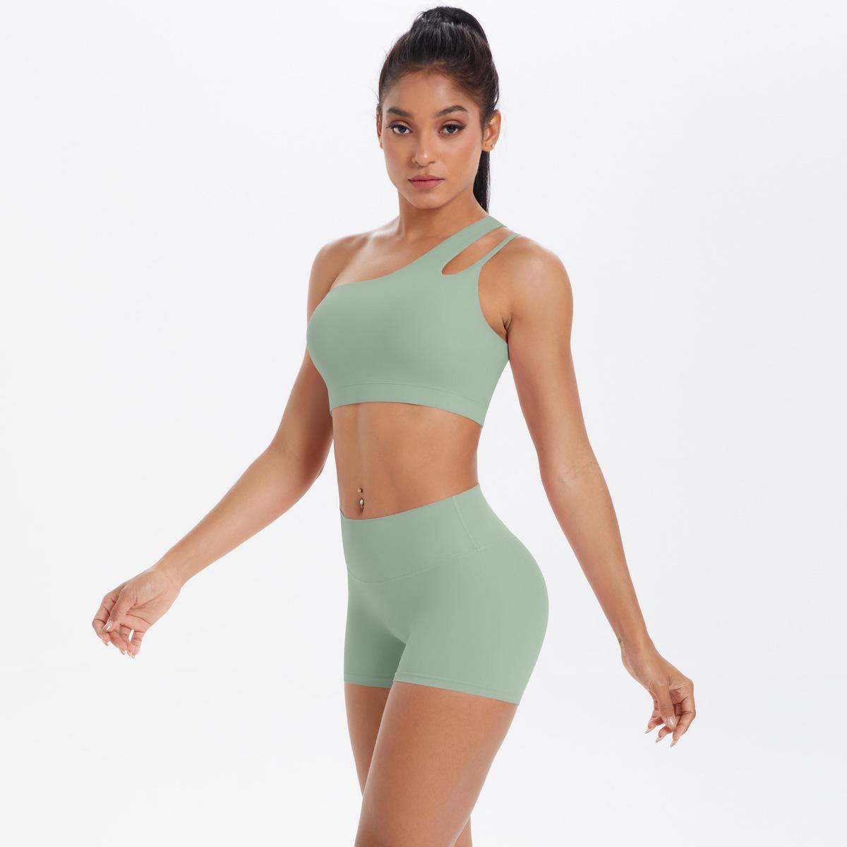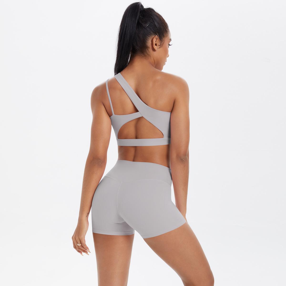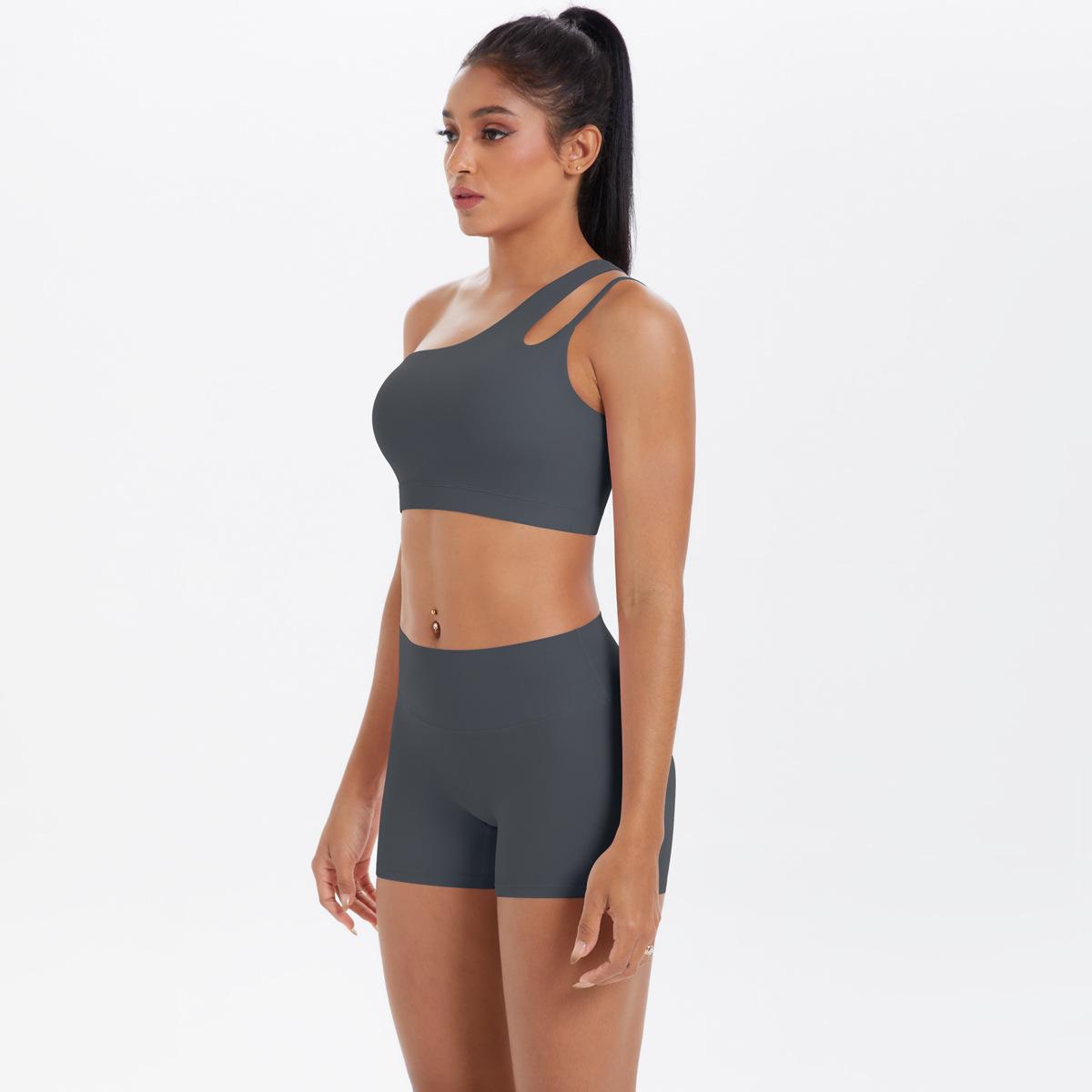 Transfronterizo Nuevo Conjunto Deportivo de Yoga de un Hombro con Sensación de Nube Ajustado Cadera Secado Rápido para Correr Fitness Dos Piezas