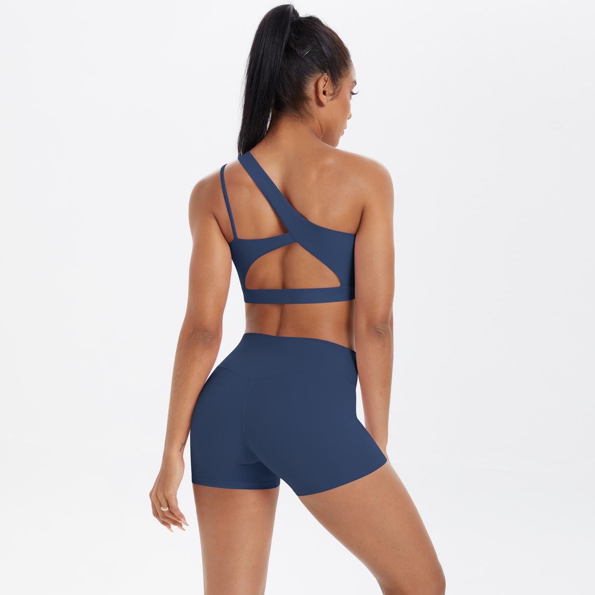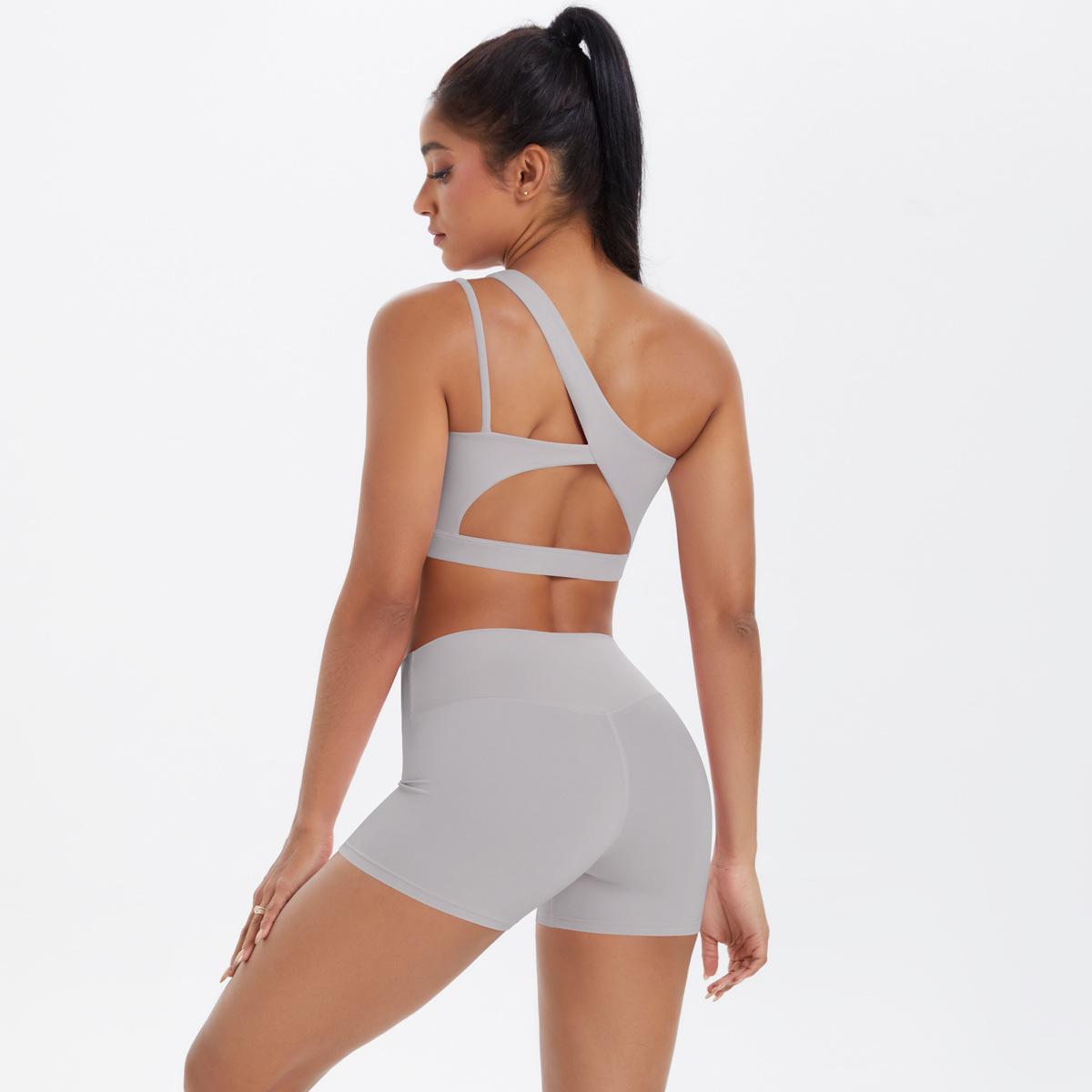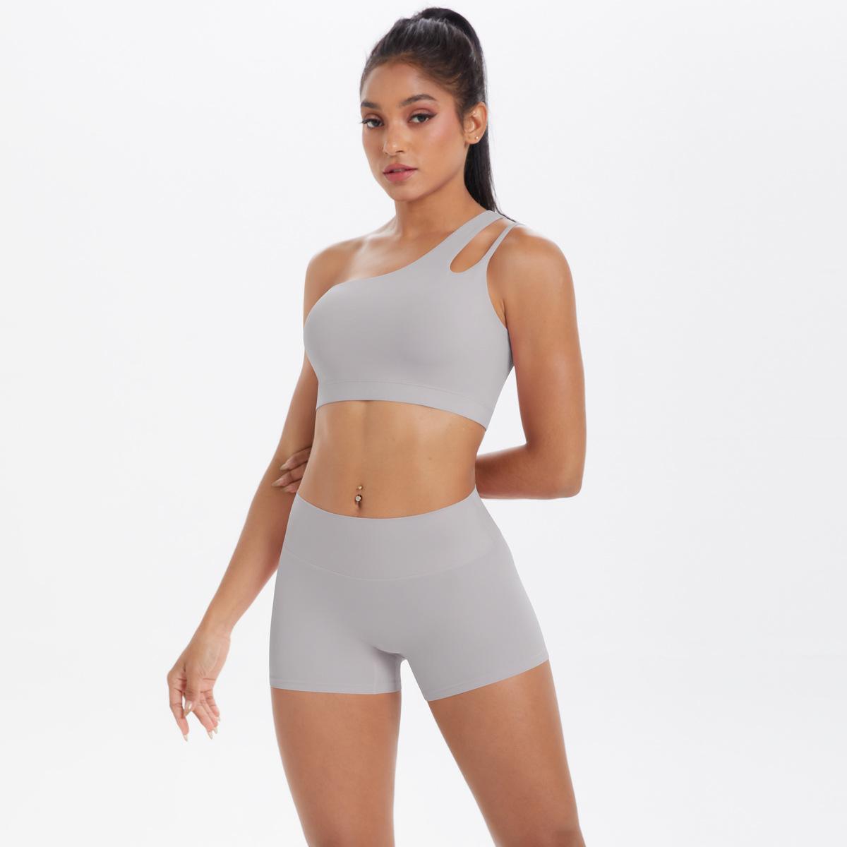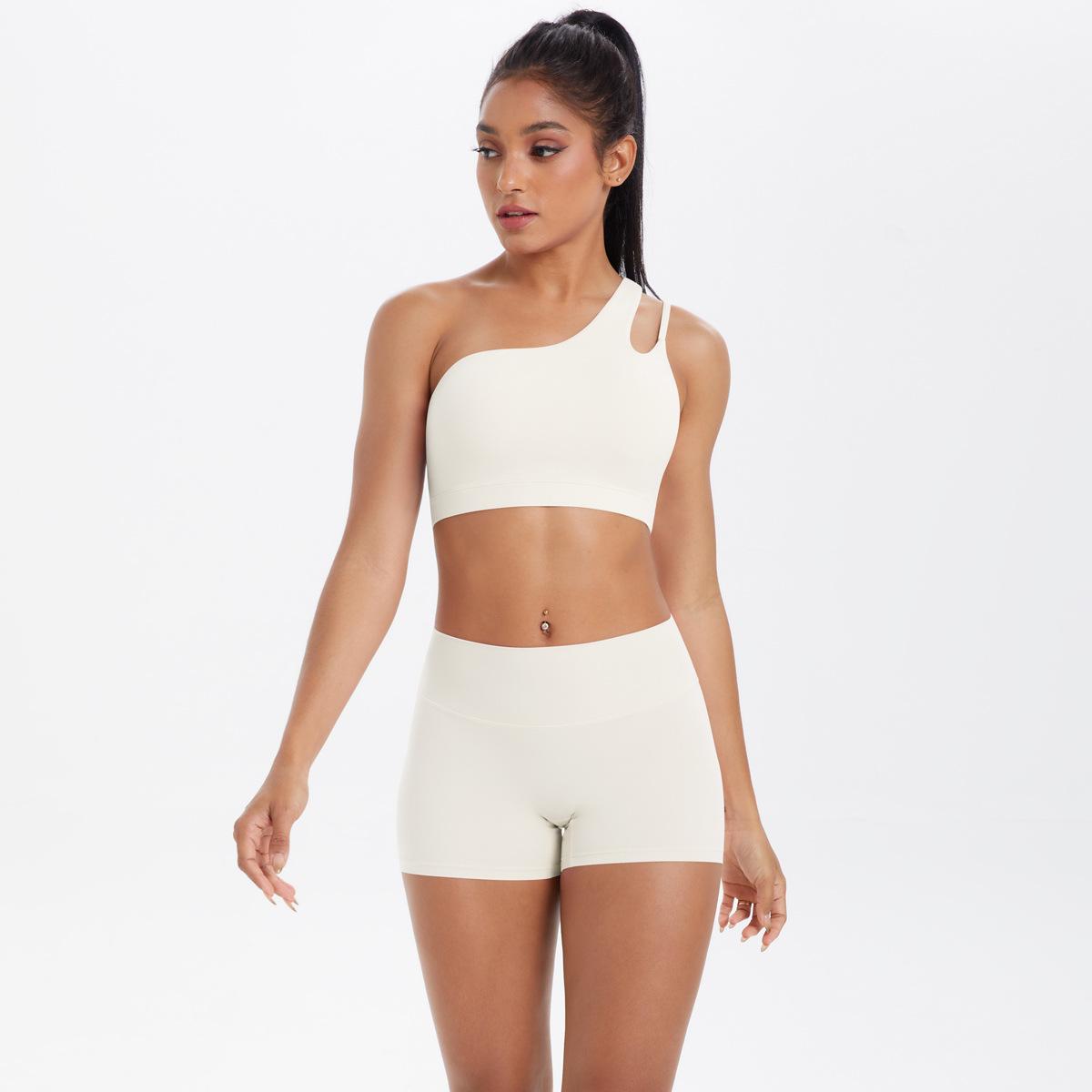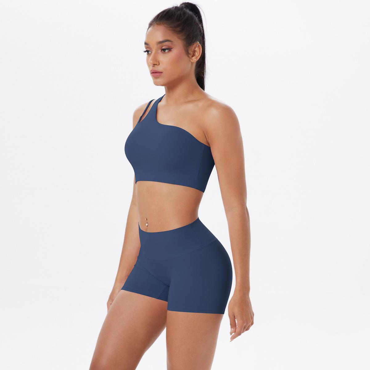 Transfronterizo Nuevo Conjunto Deportivo de Yoga de un Hombro con Sensación de Nube Ajustado Cadera Secado Rápido para Correr Fitness Dos Piezas