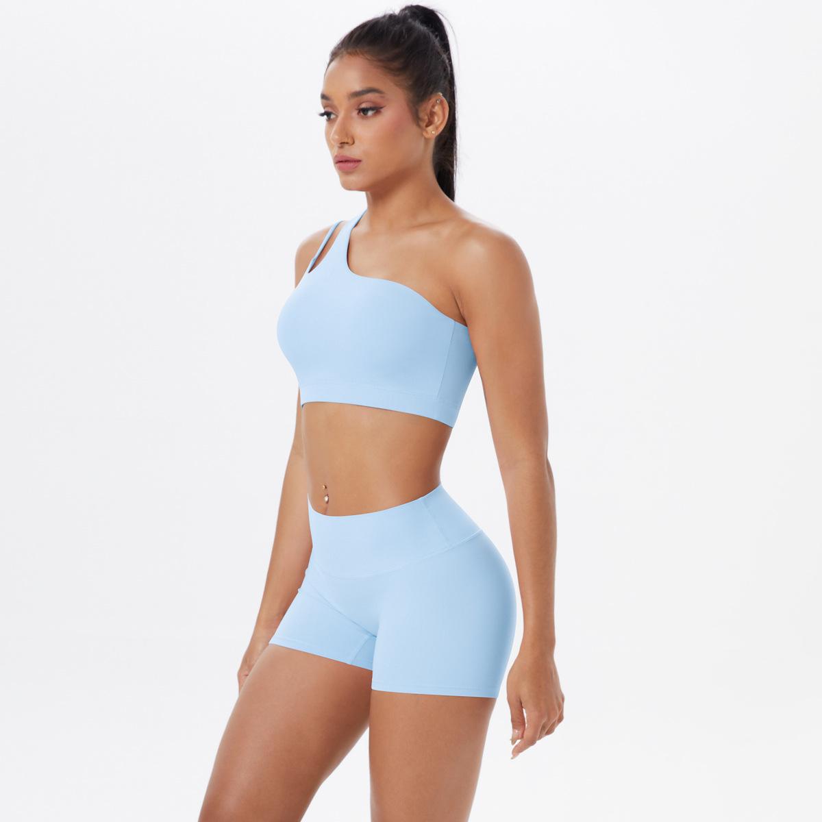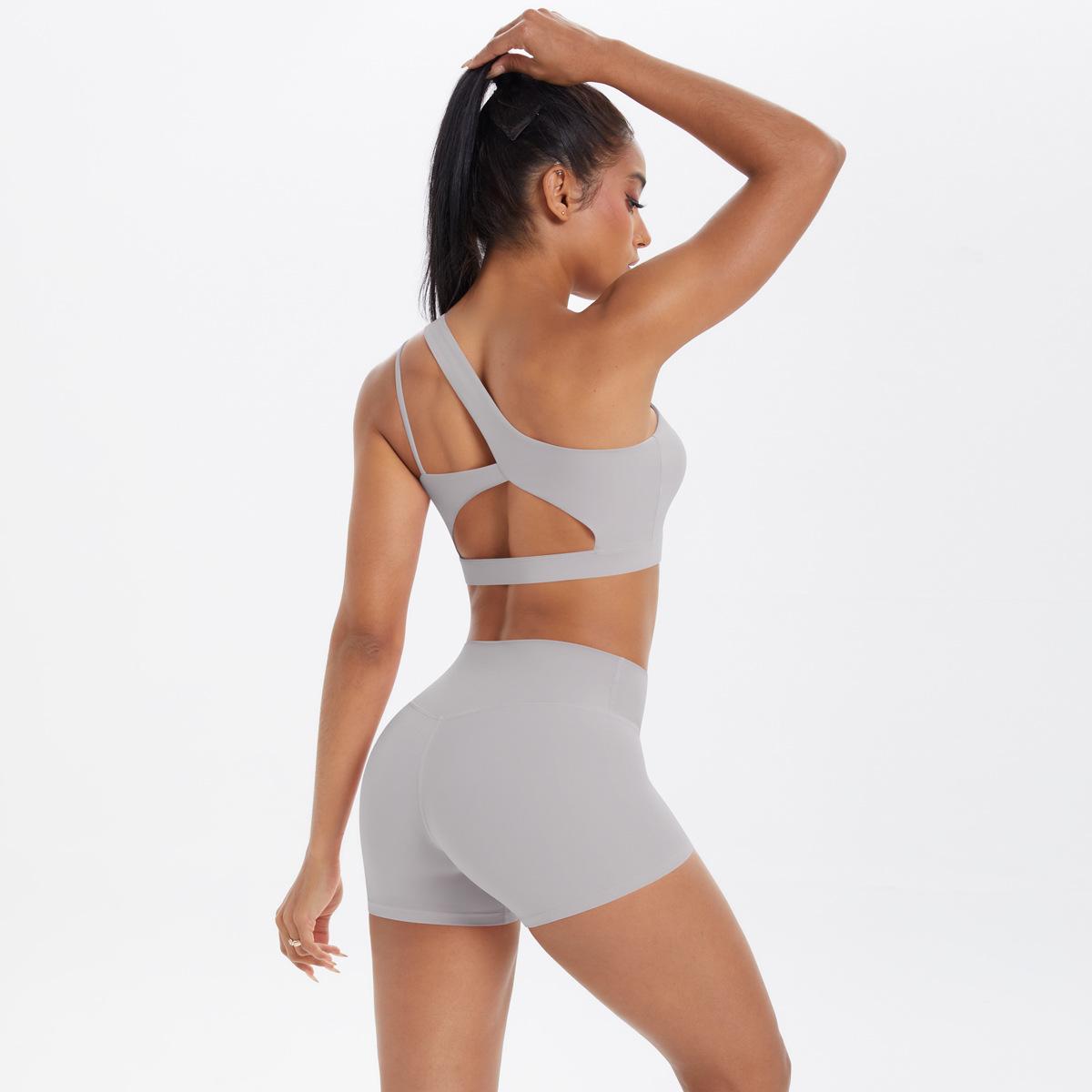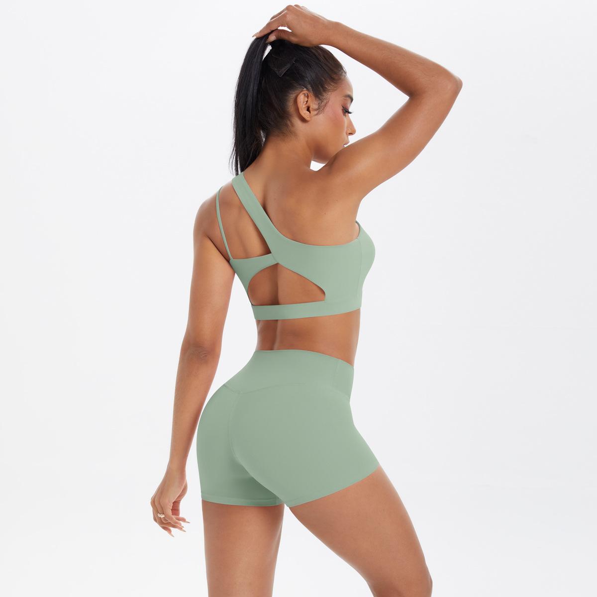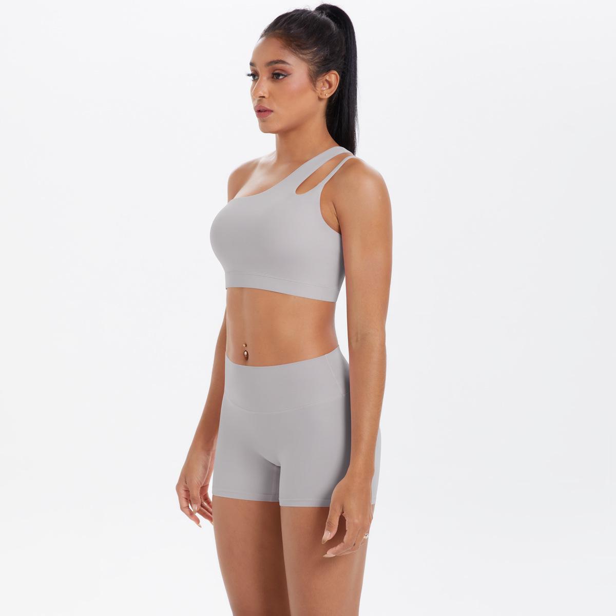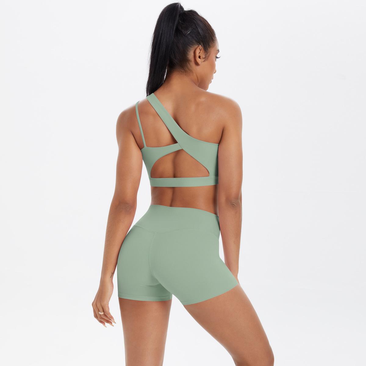 Transfronterizo Nuevo Conjunto Deportivo de Yoga de un Hombro con Sensación de Nube Ajustado Cadera Secado Rápido para Correr Fitness Dos Piezas