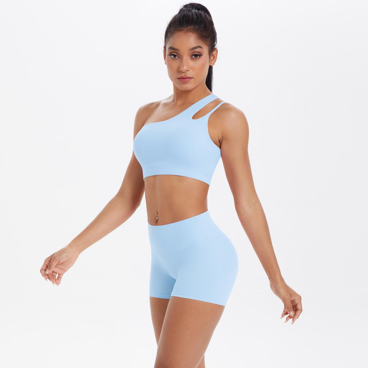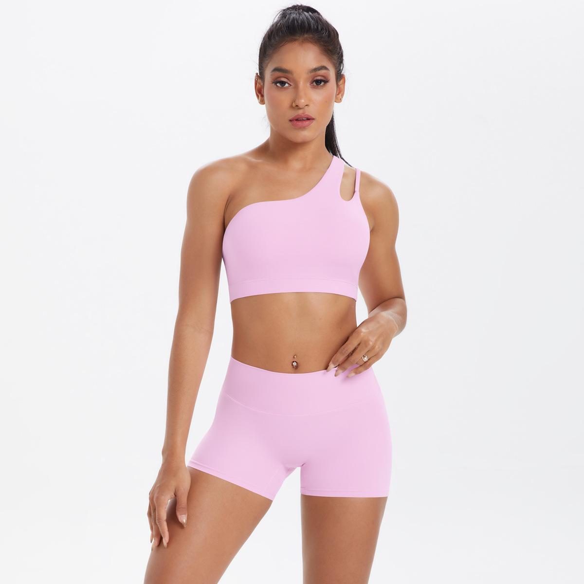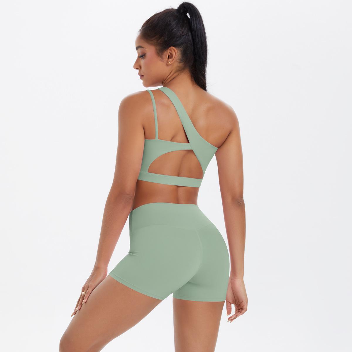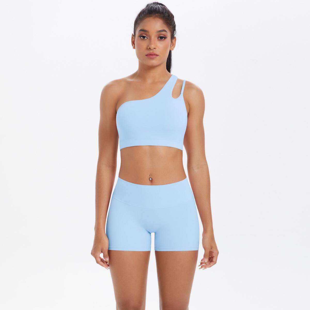Transfronterizo Nuevo Conjunto Deportivo de Yoga de un Hombro con Sensación de Nube Ajustado Cadera Secado Rápido para Correr Fitness Dos Piezas