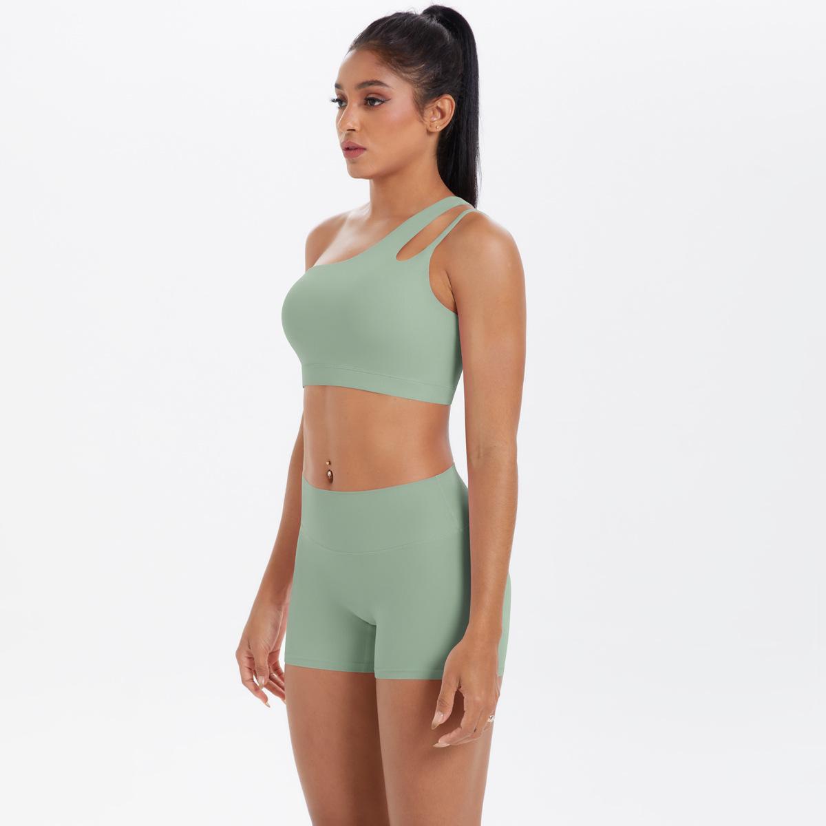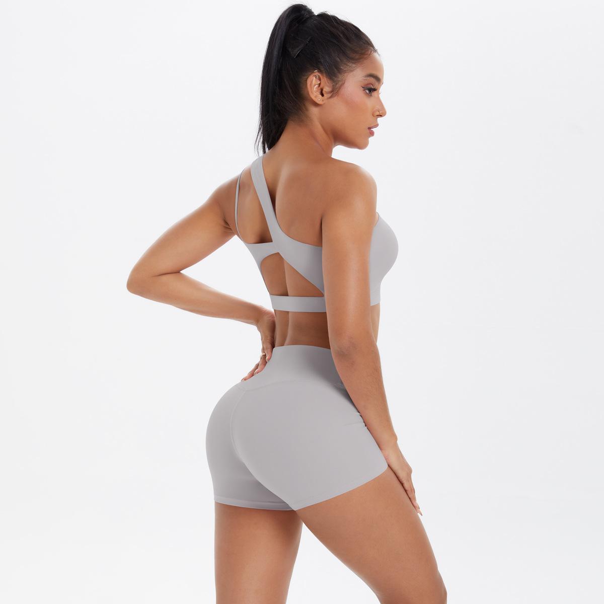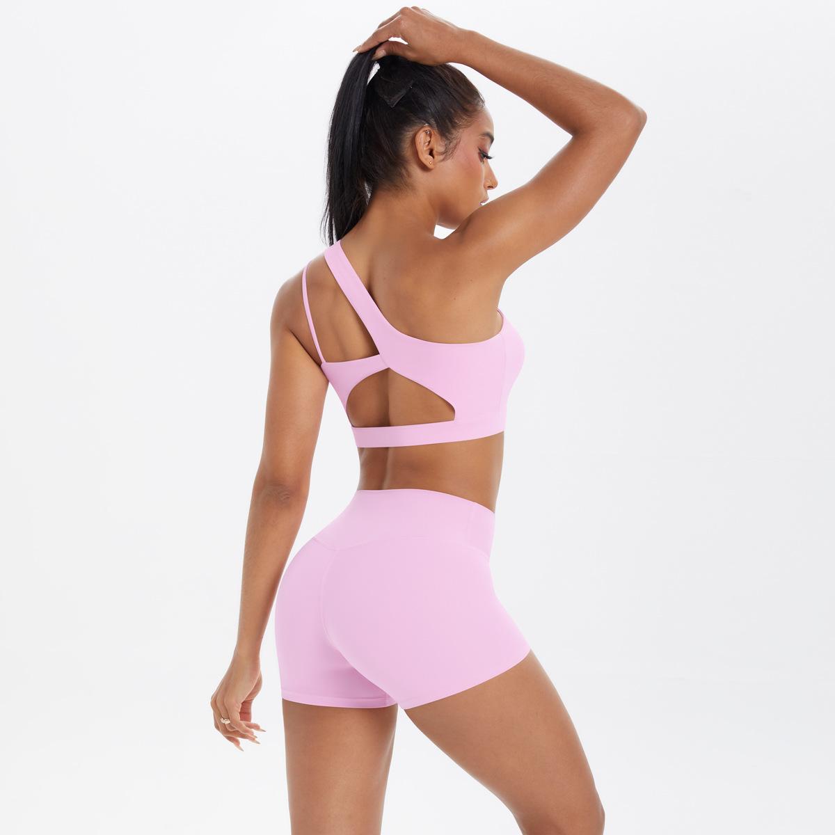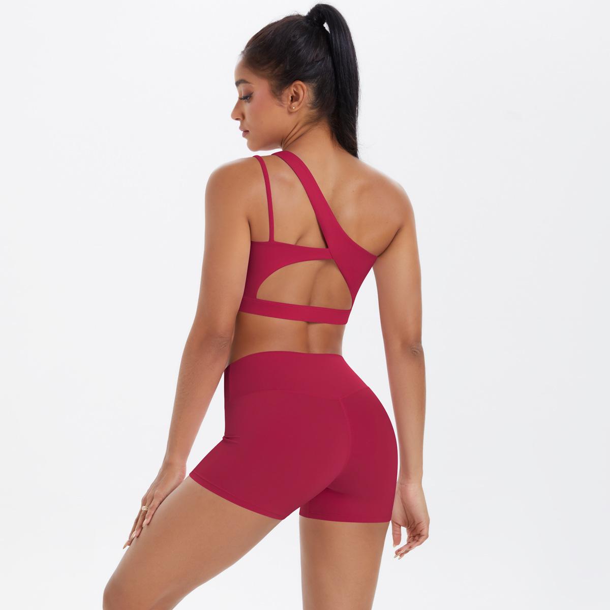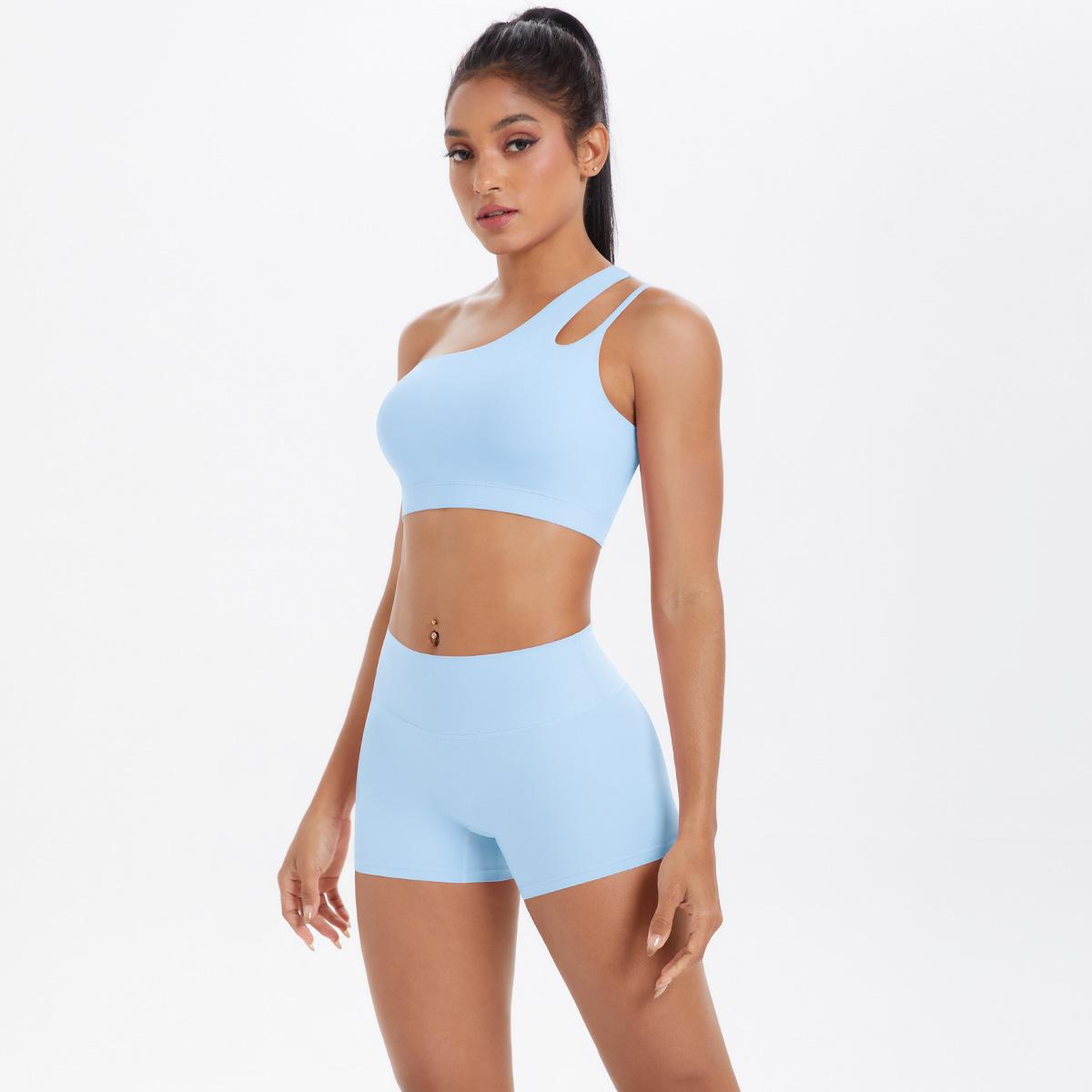 Transfronterizo Nuevo Conjunto Deportivo de Yoga de un Hombro con Sensación de Nube Ajustado Cadera Secado Rápido para Correr Fitness Dos Piezas