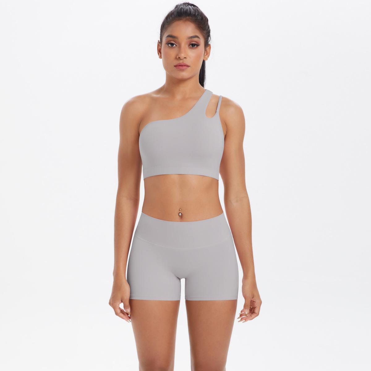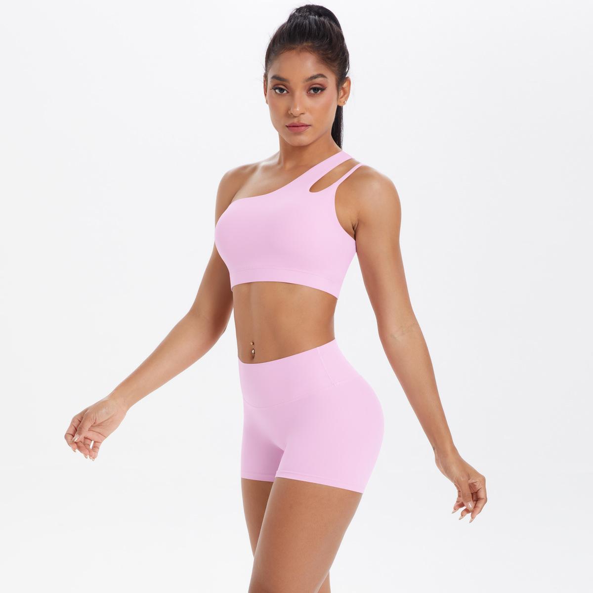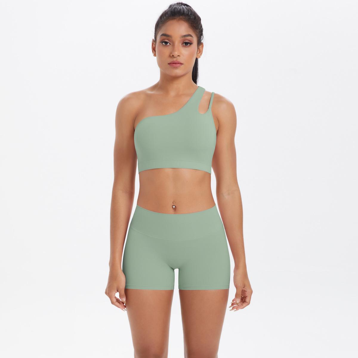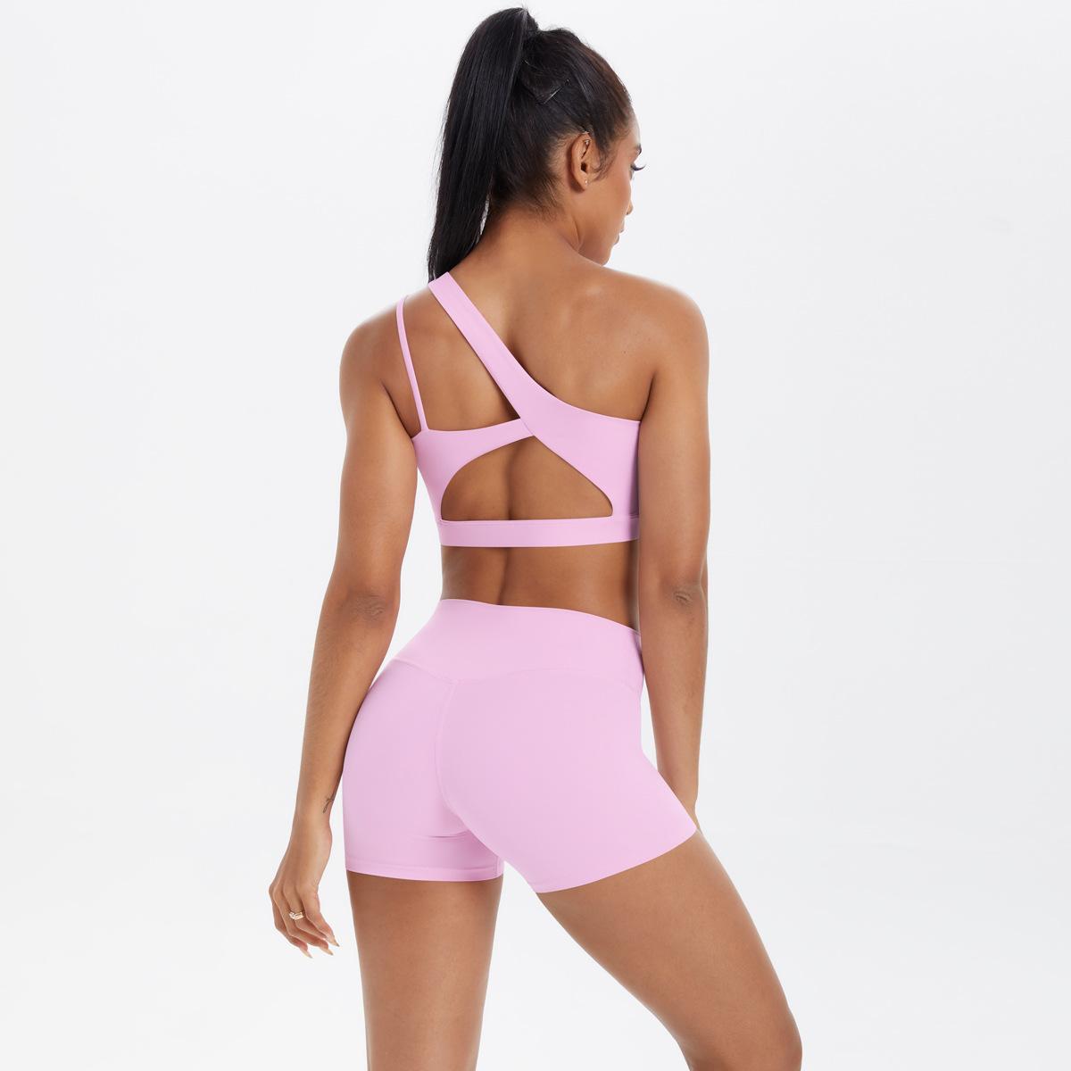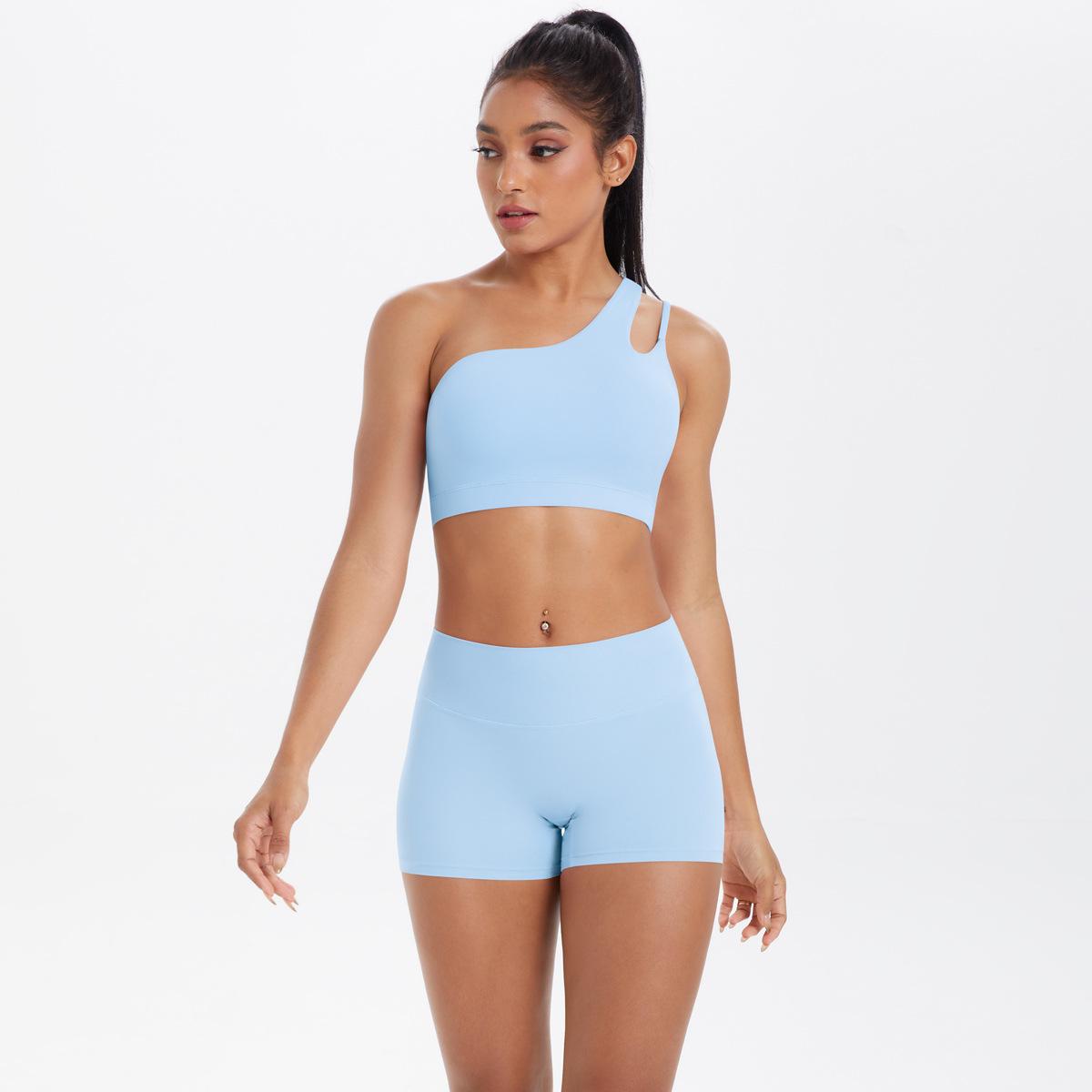 Transfronterizo Nuevo Conjunto Deportivo de Yoga de un Hombro con Sensación de Nube Ajustado Cadera Secado Rápido para Correr Fitness Dos Piezas